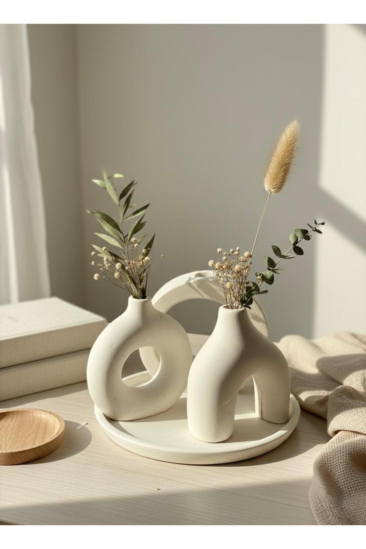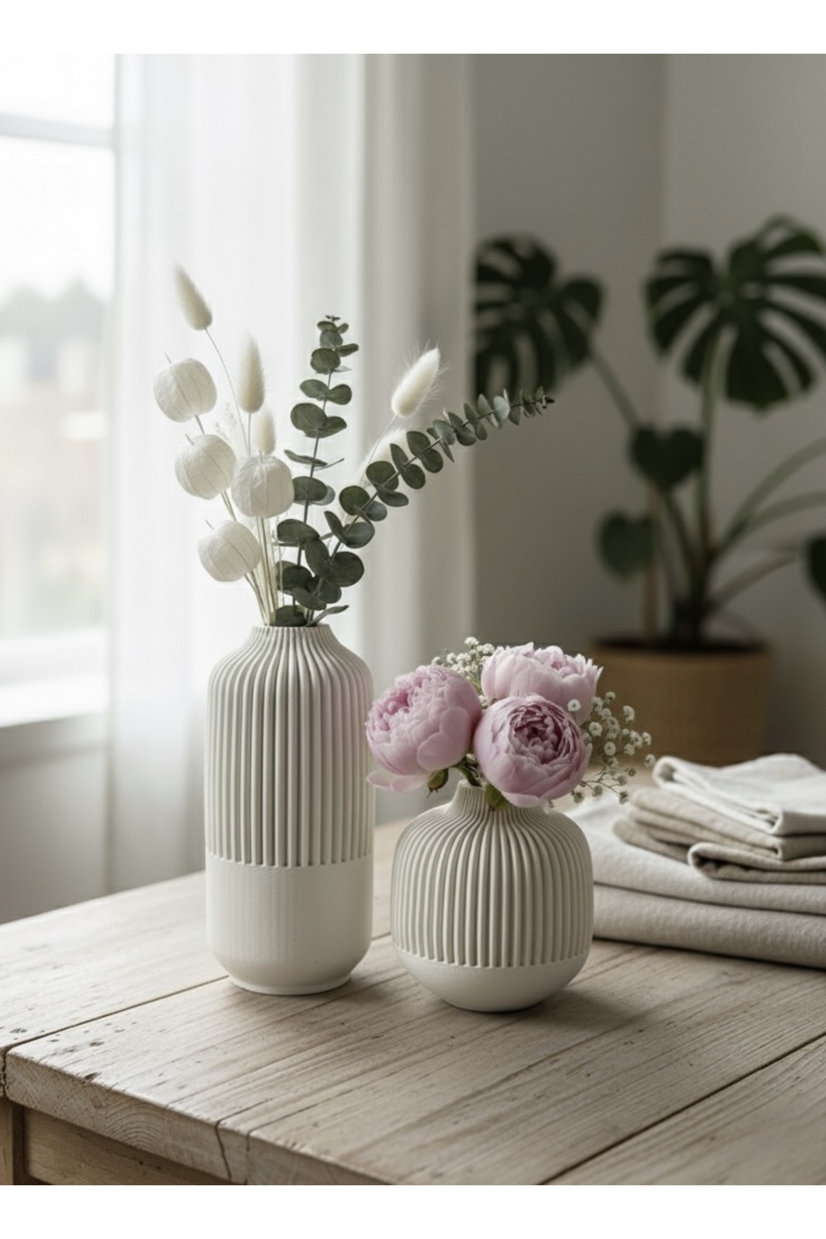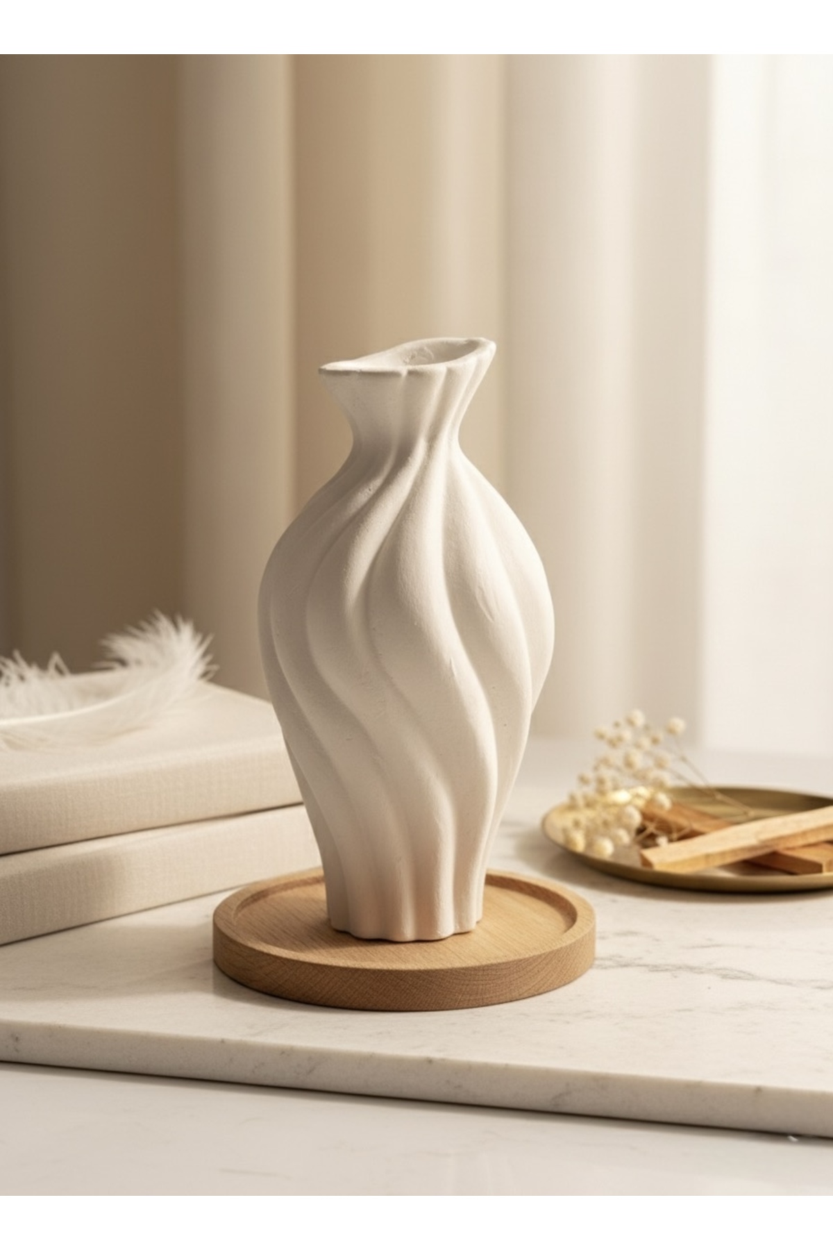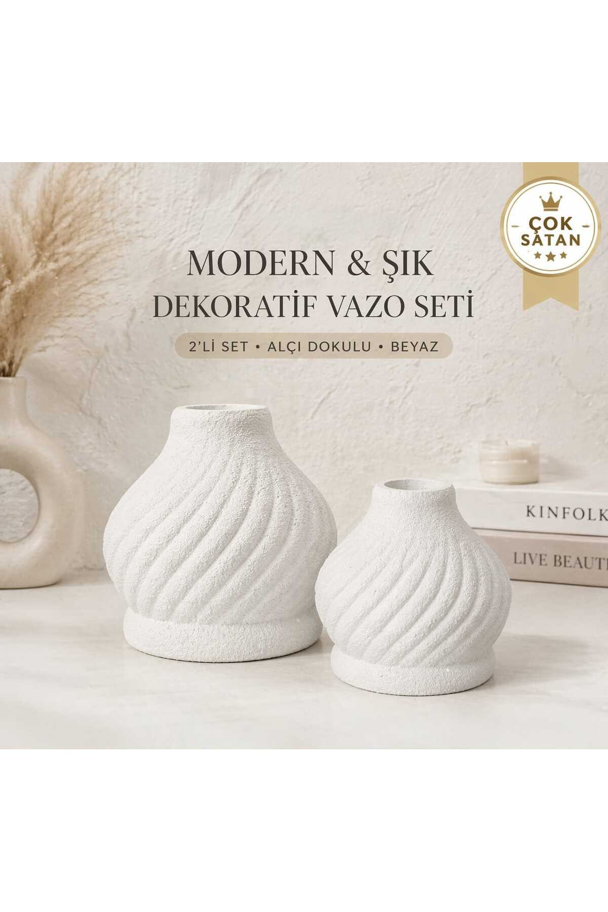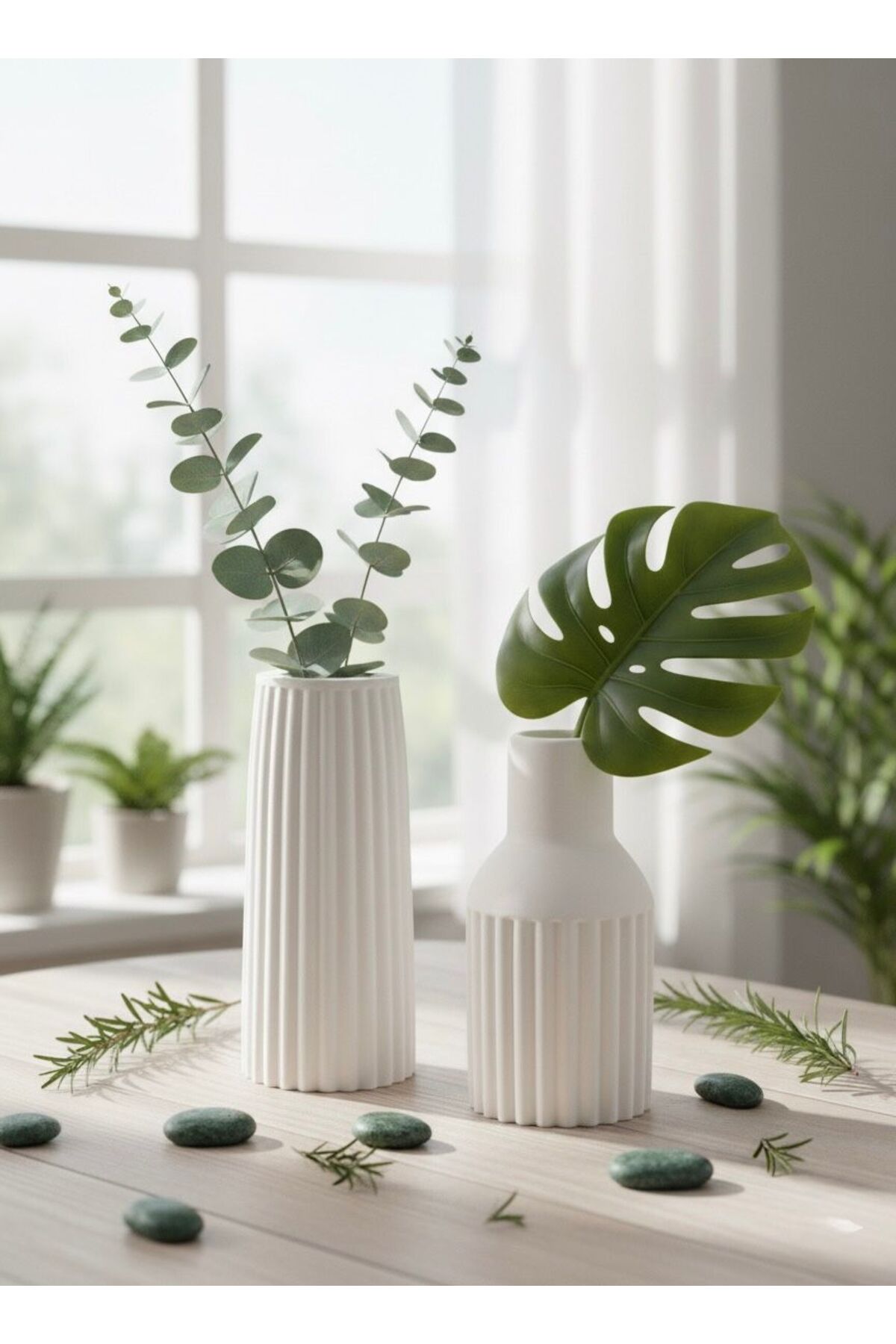 Modern Kıvrımlı 2'li Dekoratif Vazo Seti – Seramik Görünümlü Mat Doku, Ev Dekorasyon