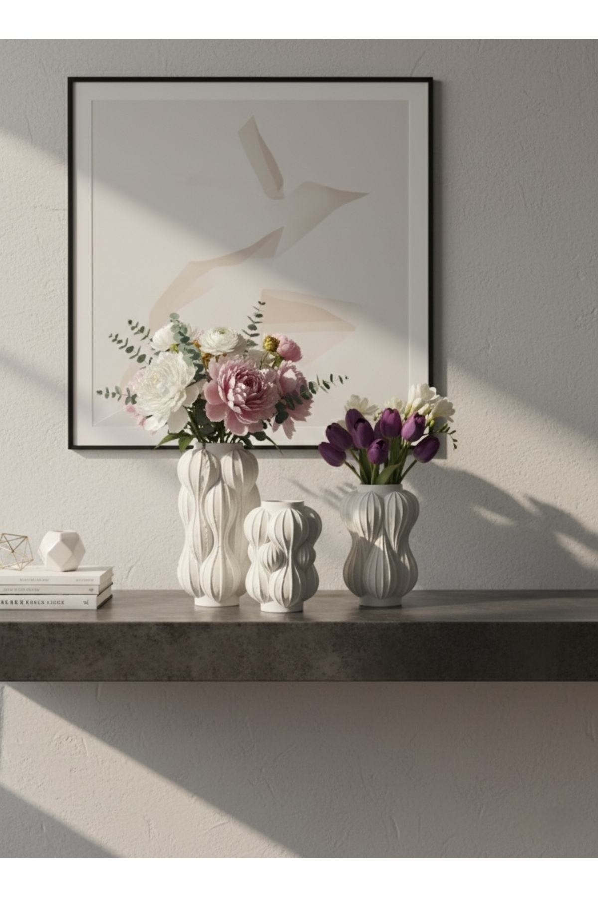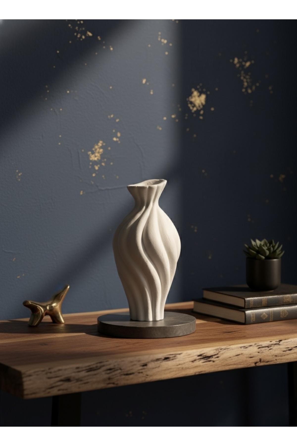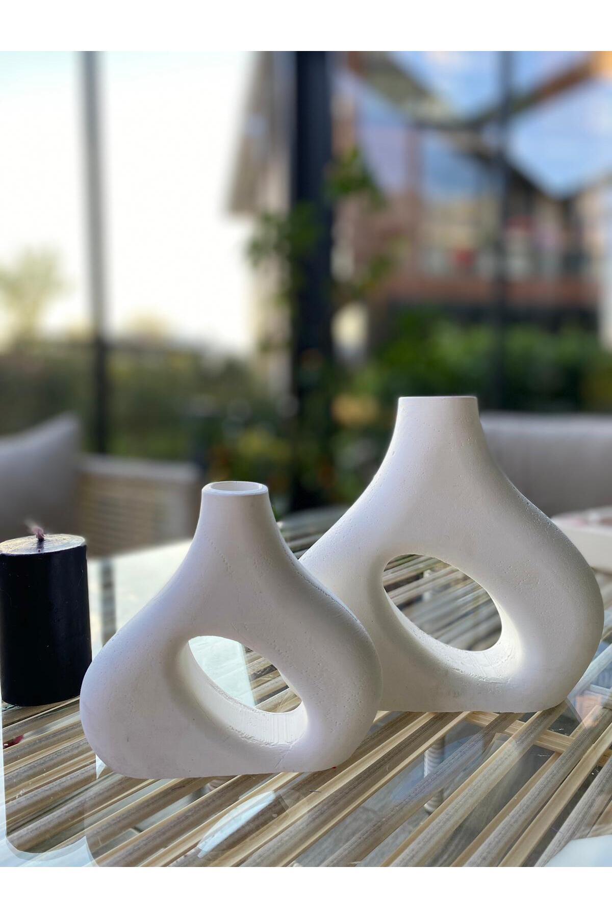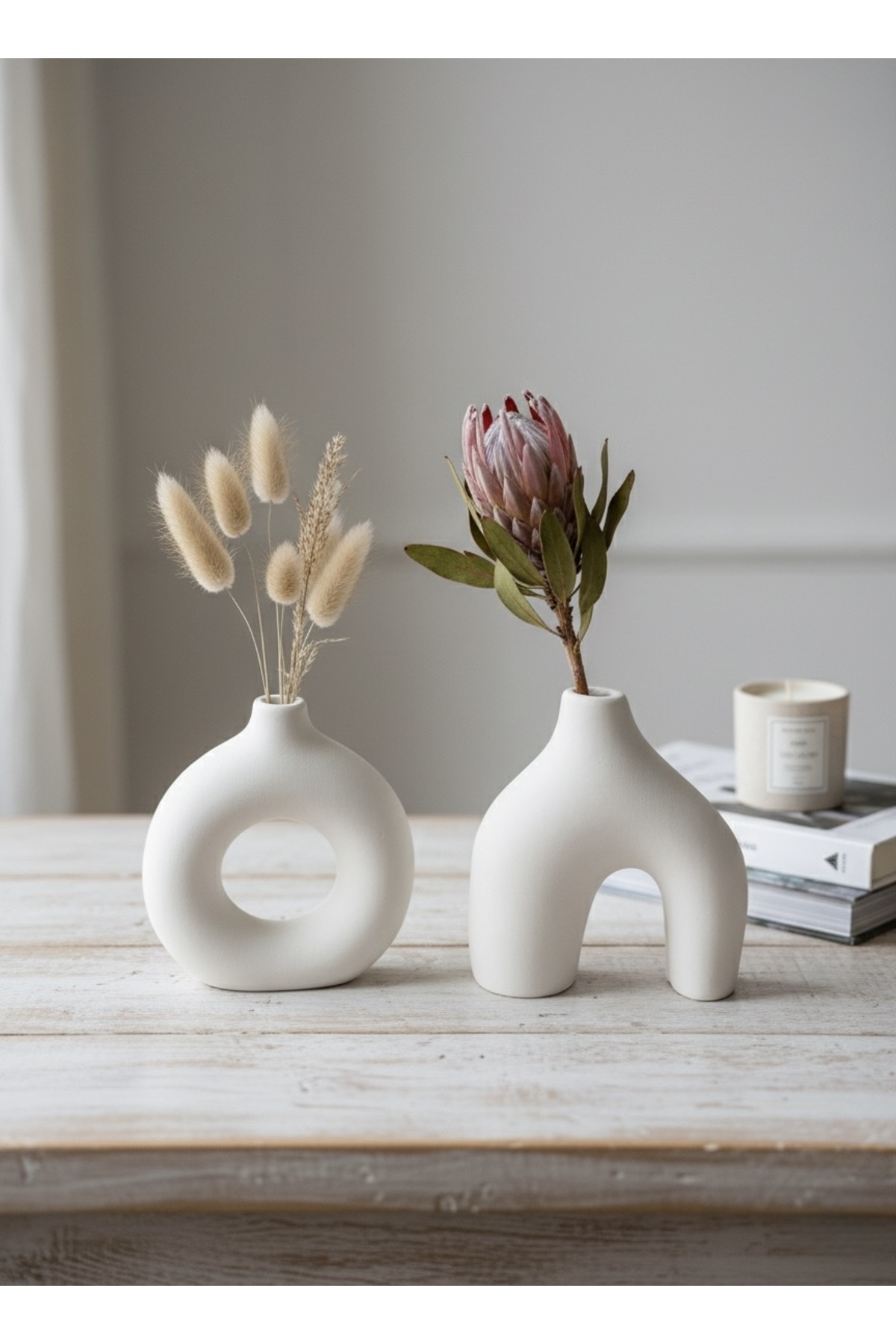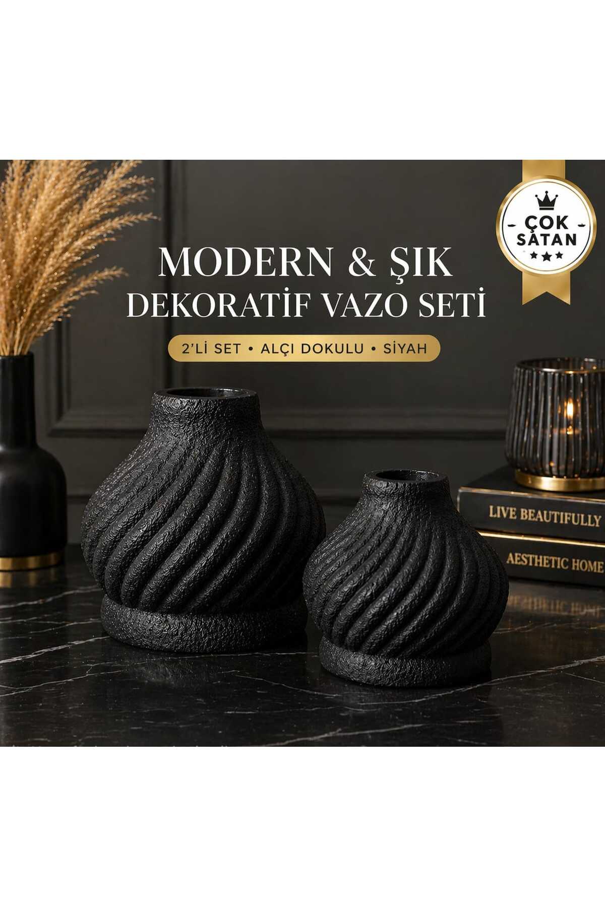 Modern Kıvrımlı 2'li Dekoratif Vazo Seti – Seramik Görünümlü Mat Doku, Ev Dekorasyon