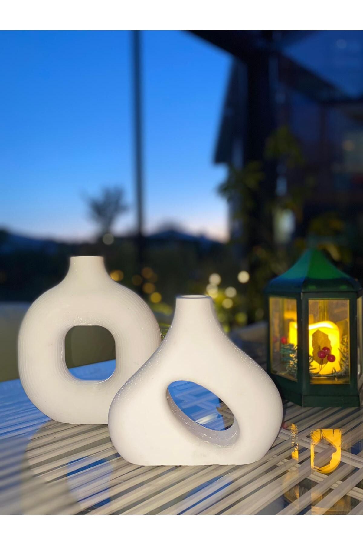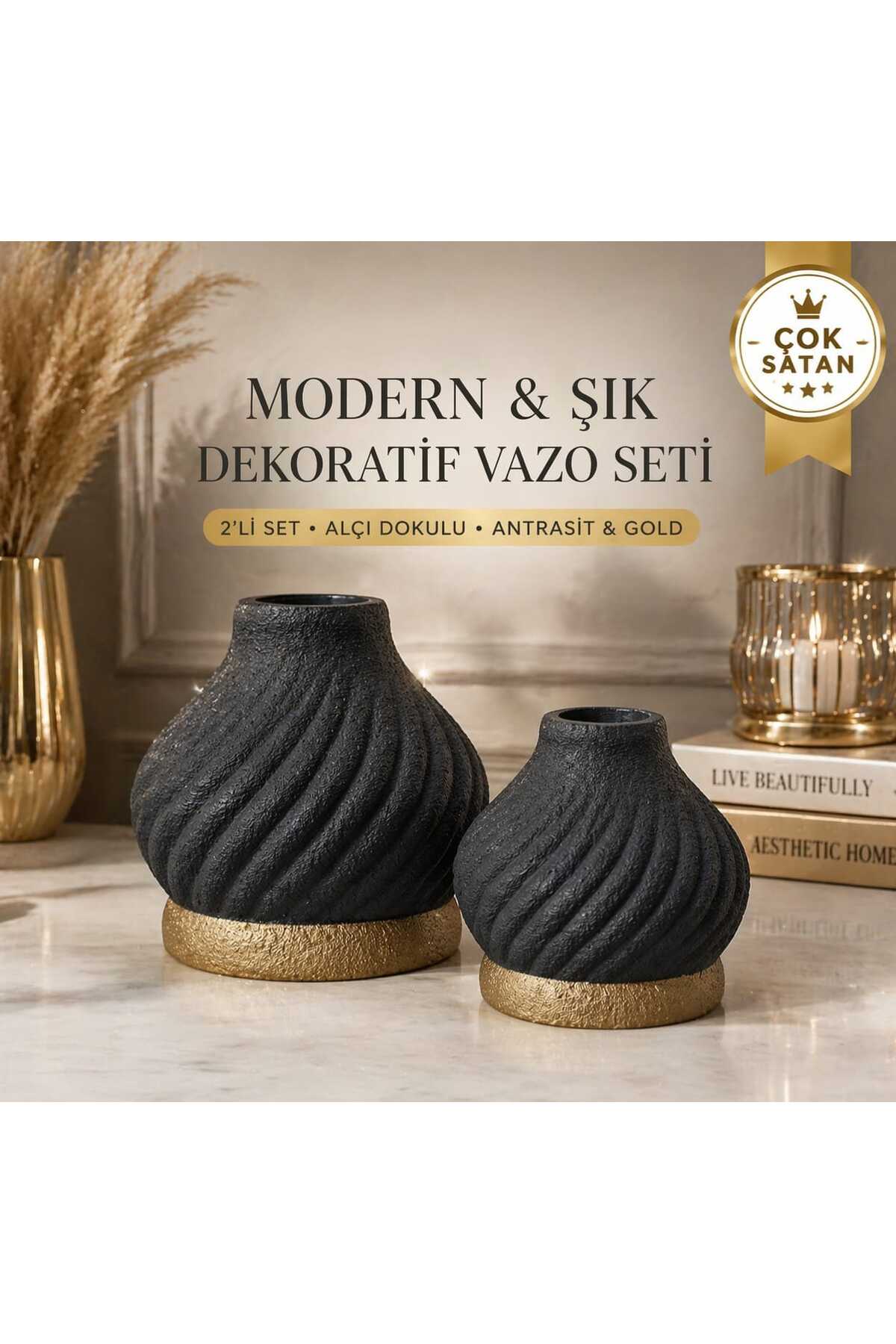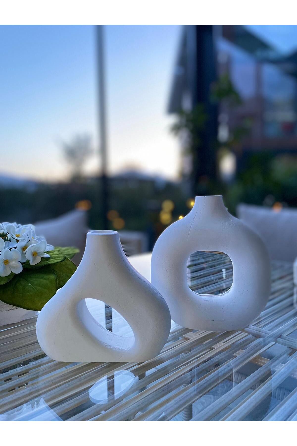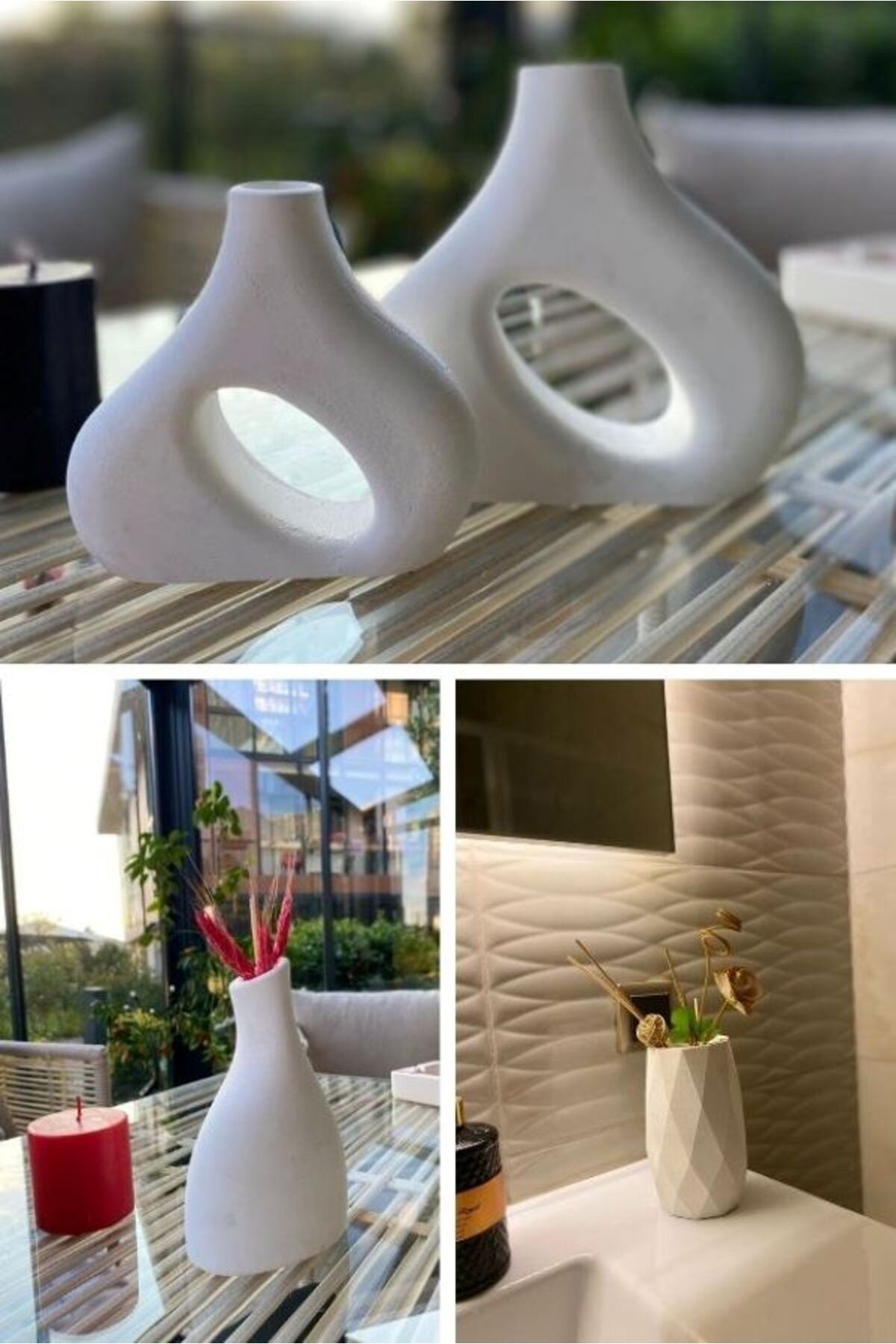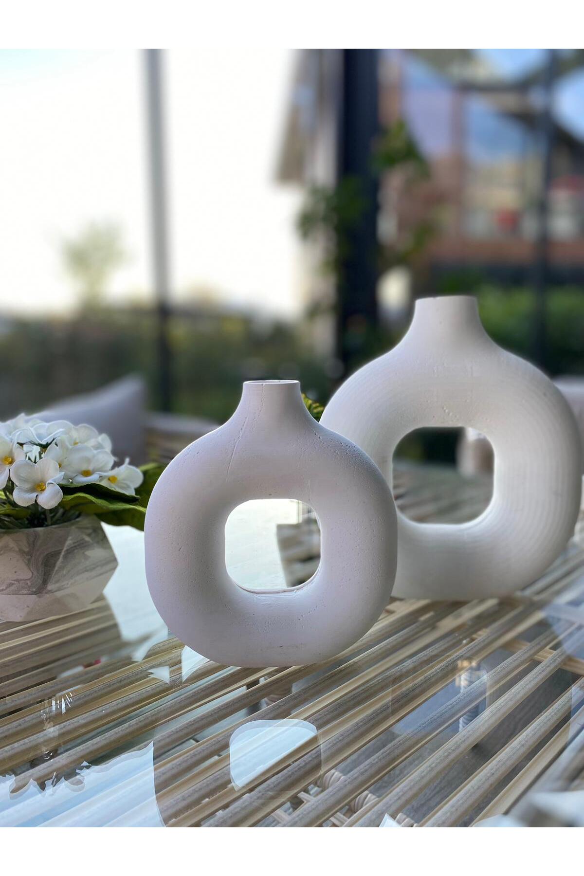 Modern Kıvrımlı 2'li Dekoratif Vazo Seti – Seramik Görünümlü Mat Doku, Ev Dekorasyon