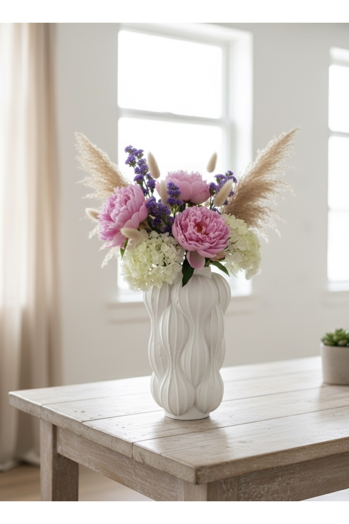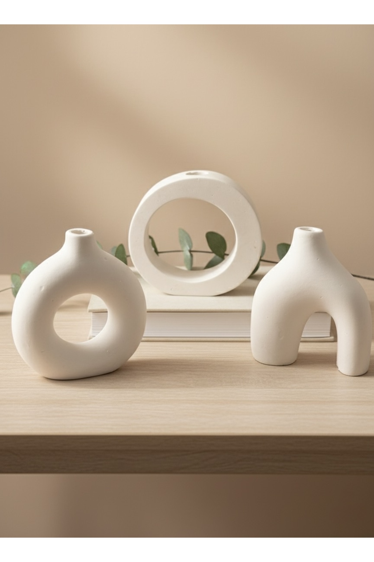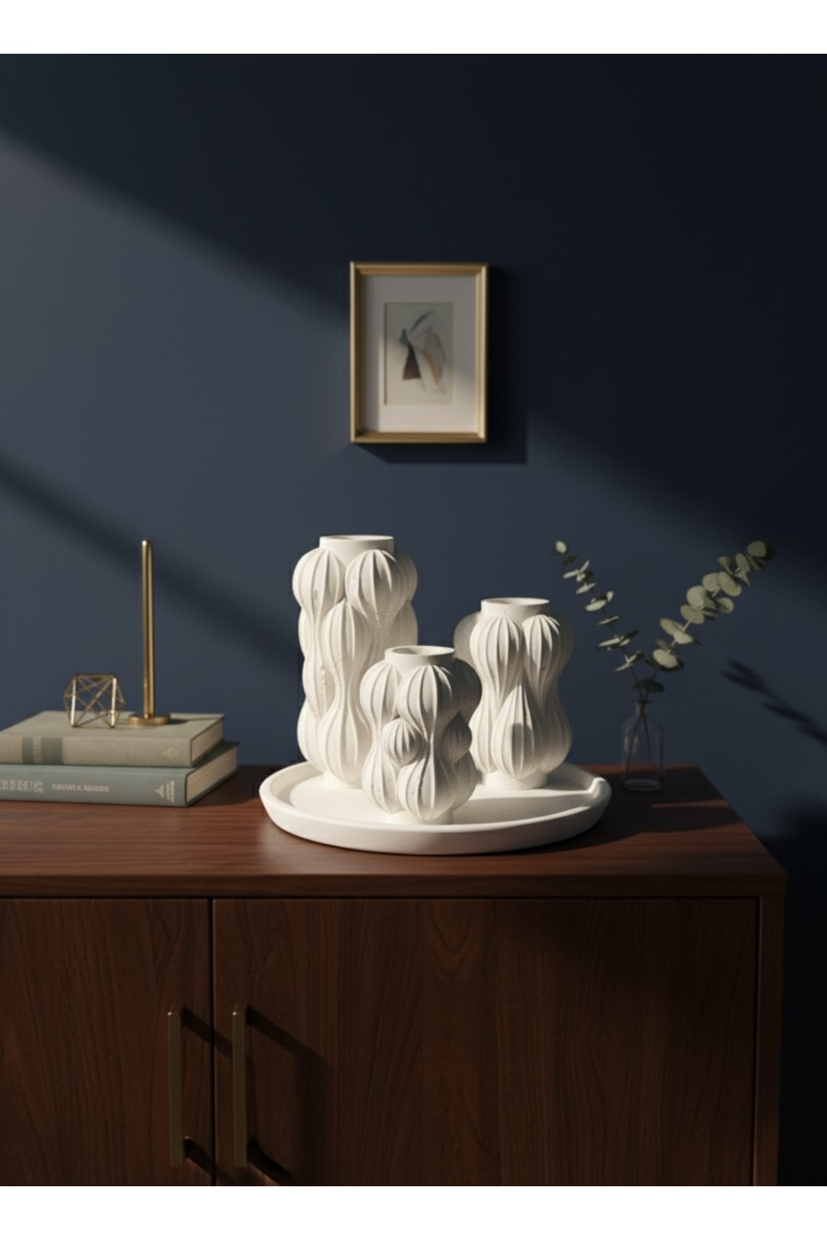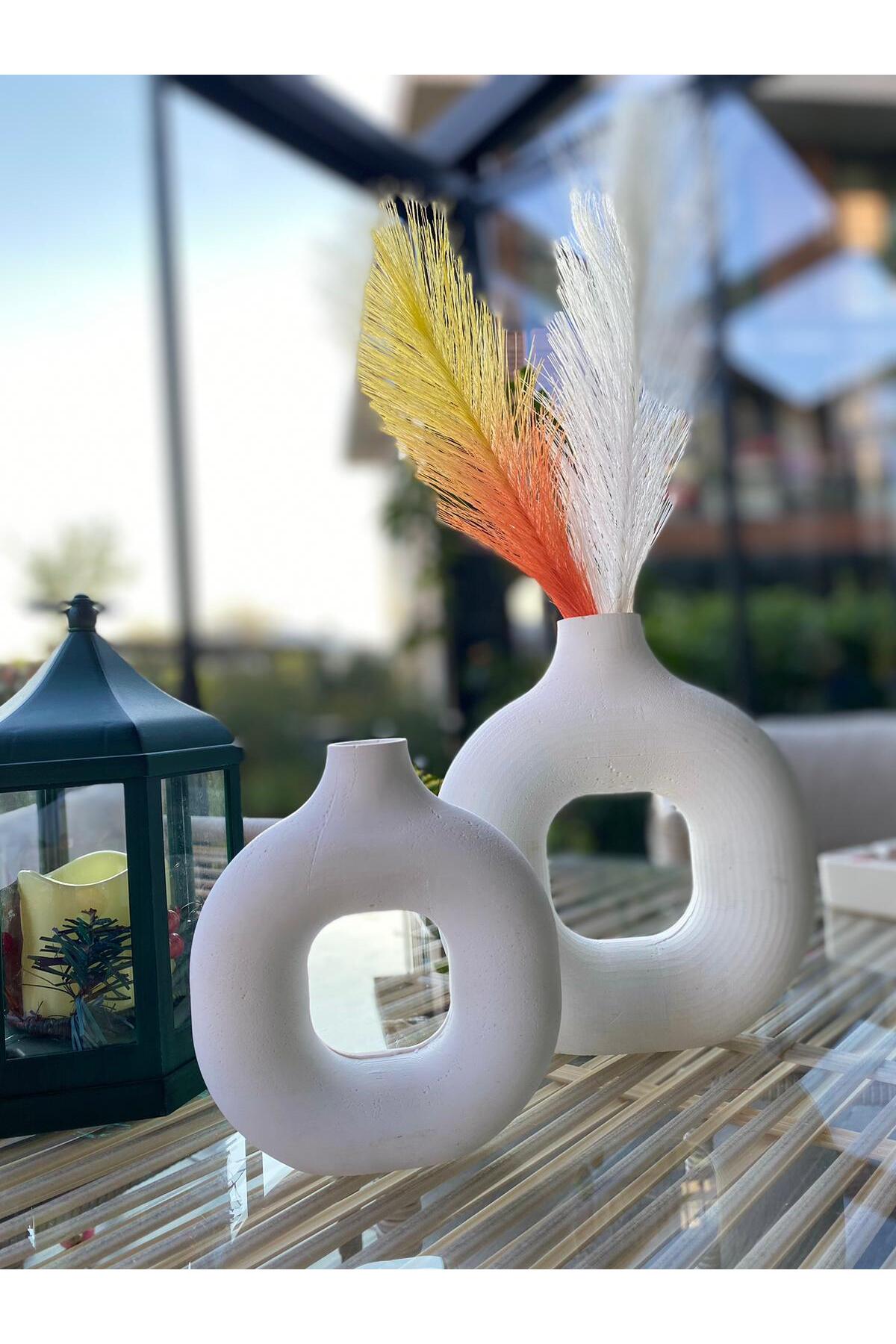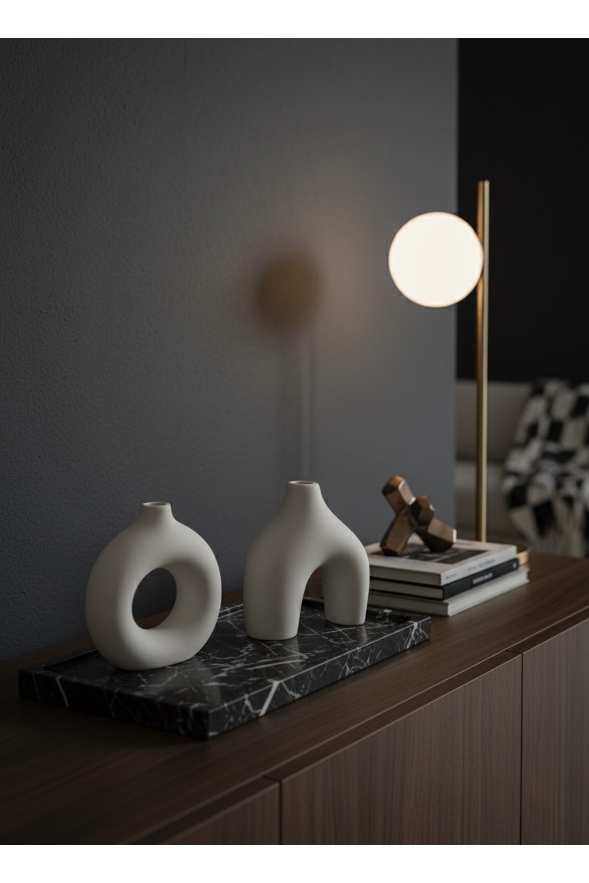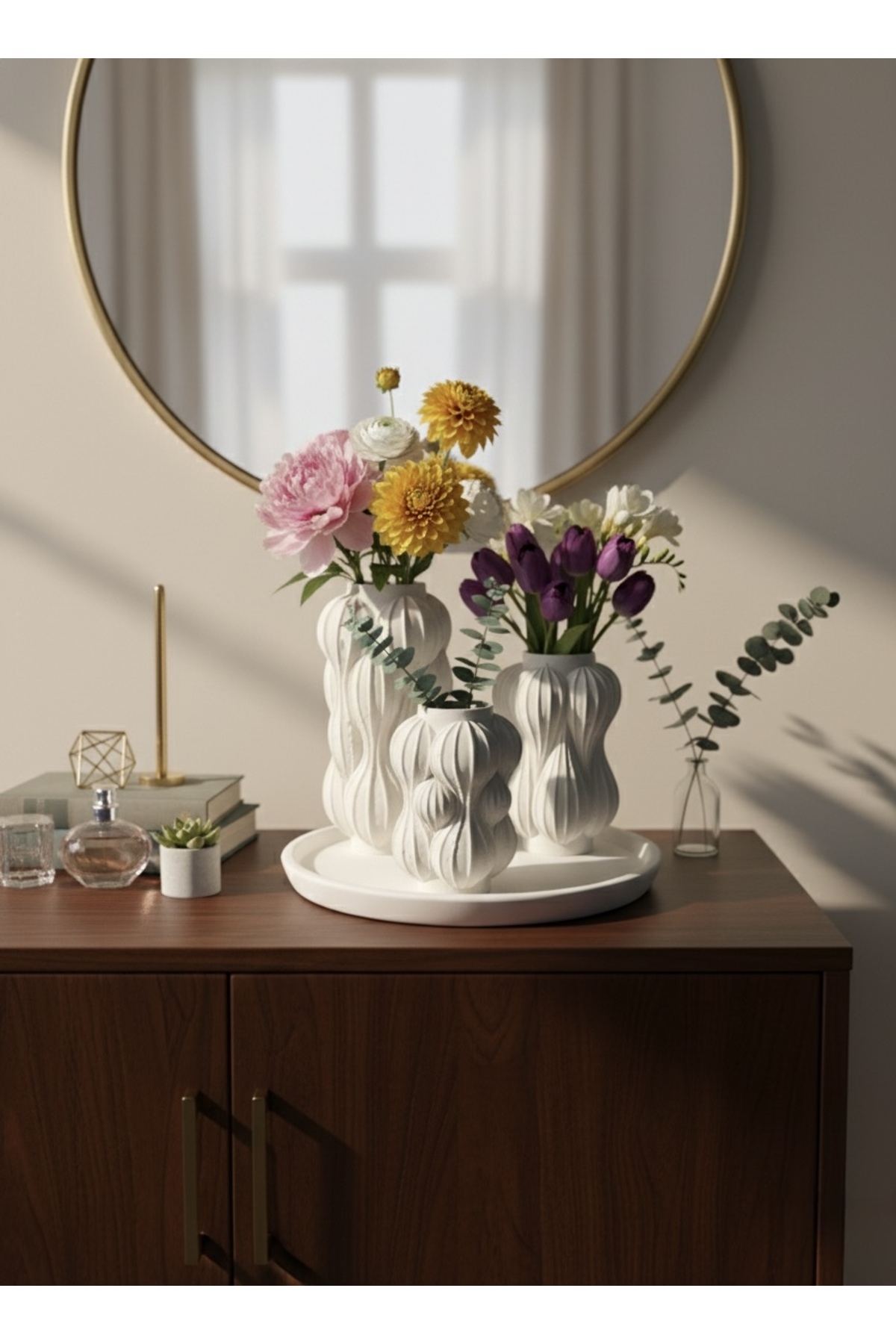 Modern Kıvrımlı 2'li Dekoratif Vazo Seti – Seramik Görünümlü Mat Doku, Ev Dekorasyon