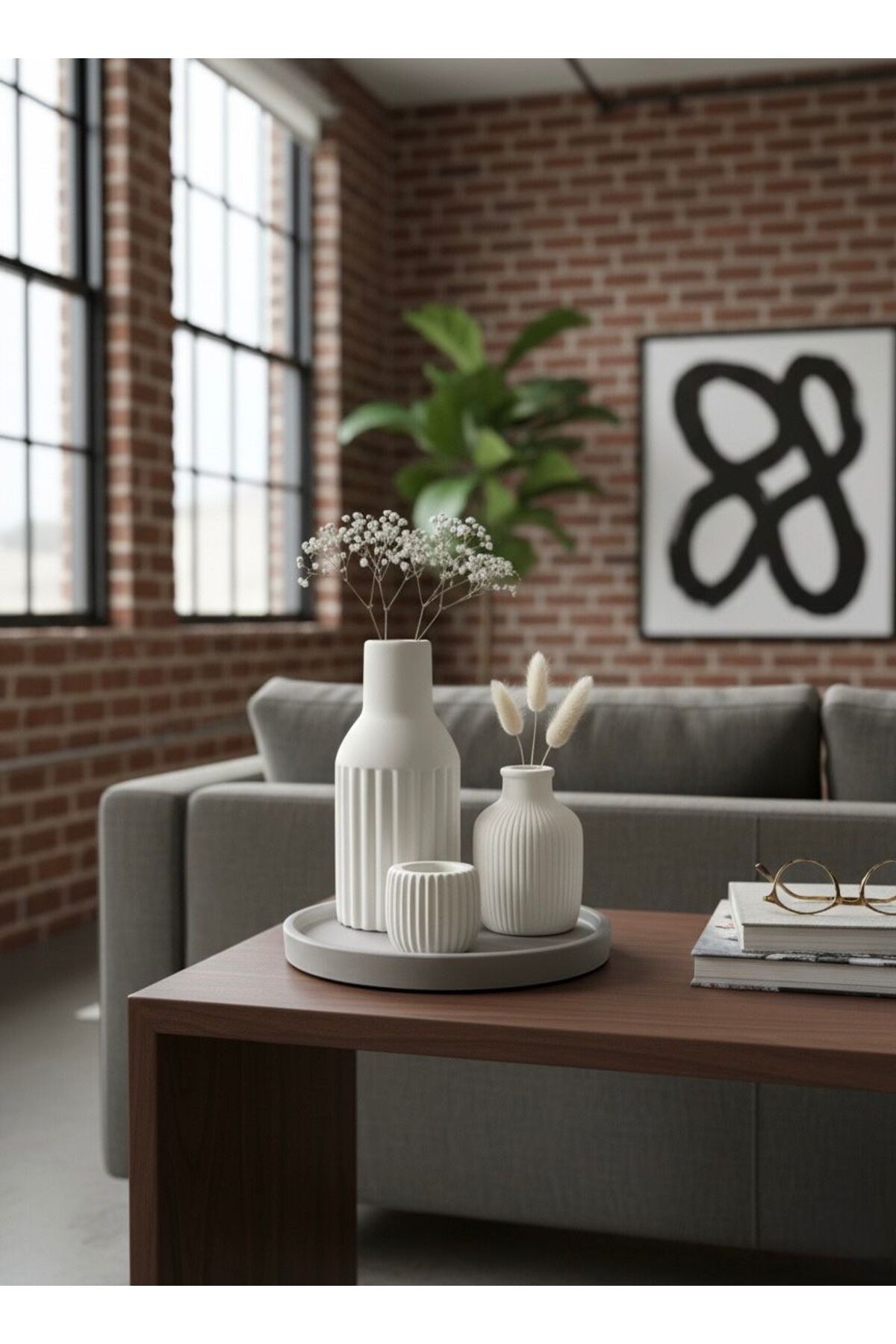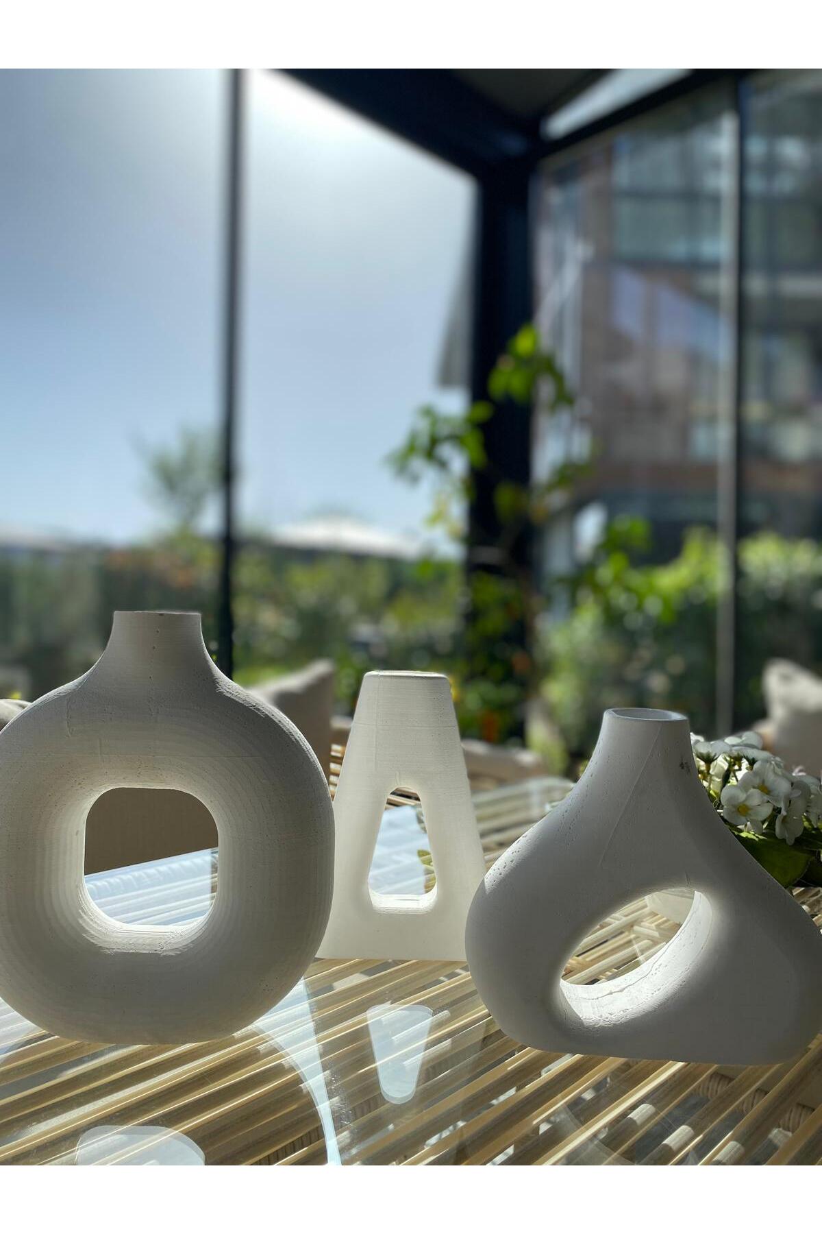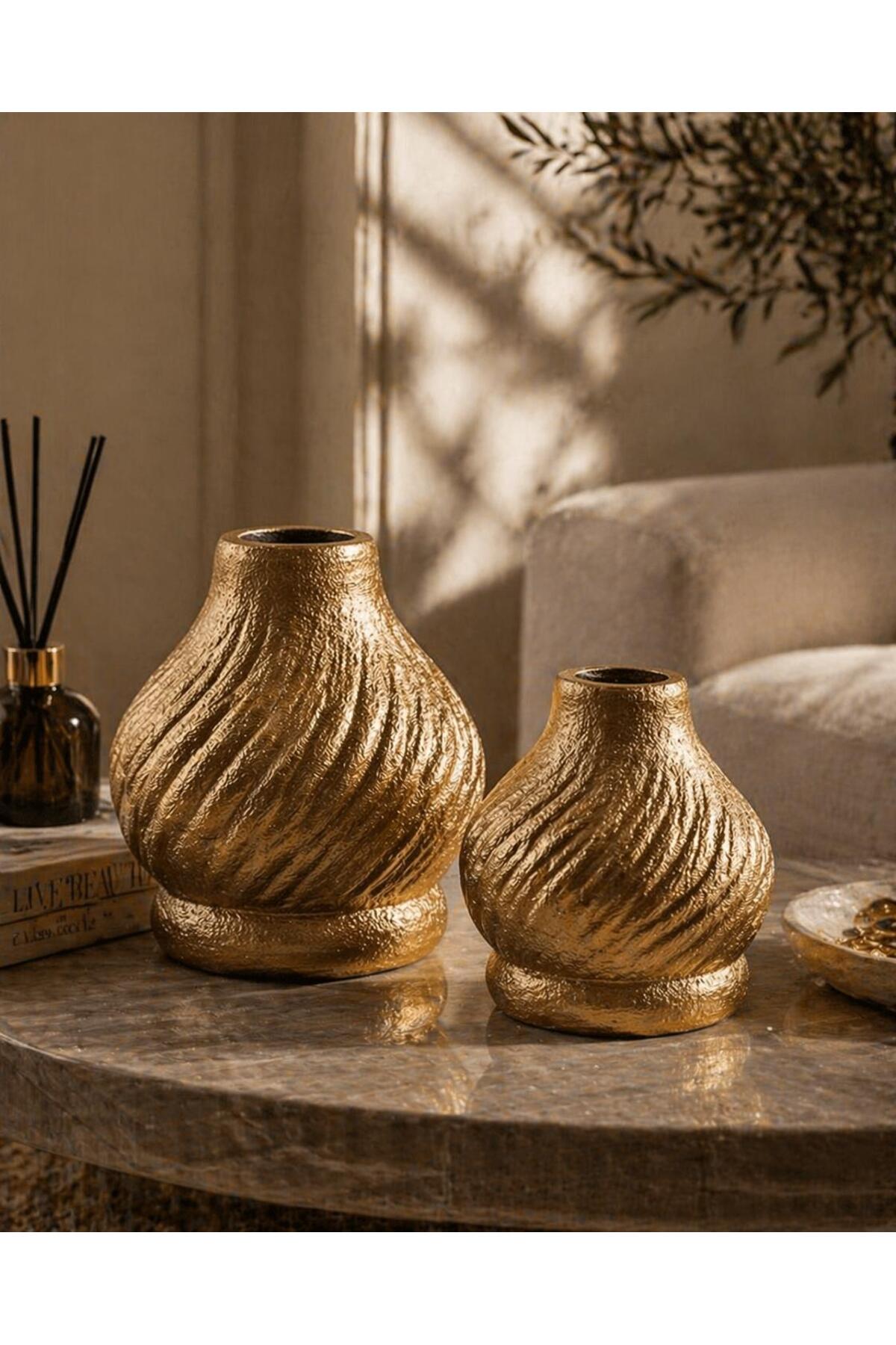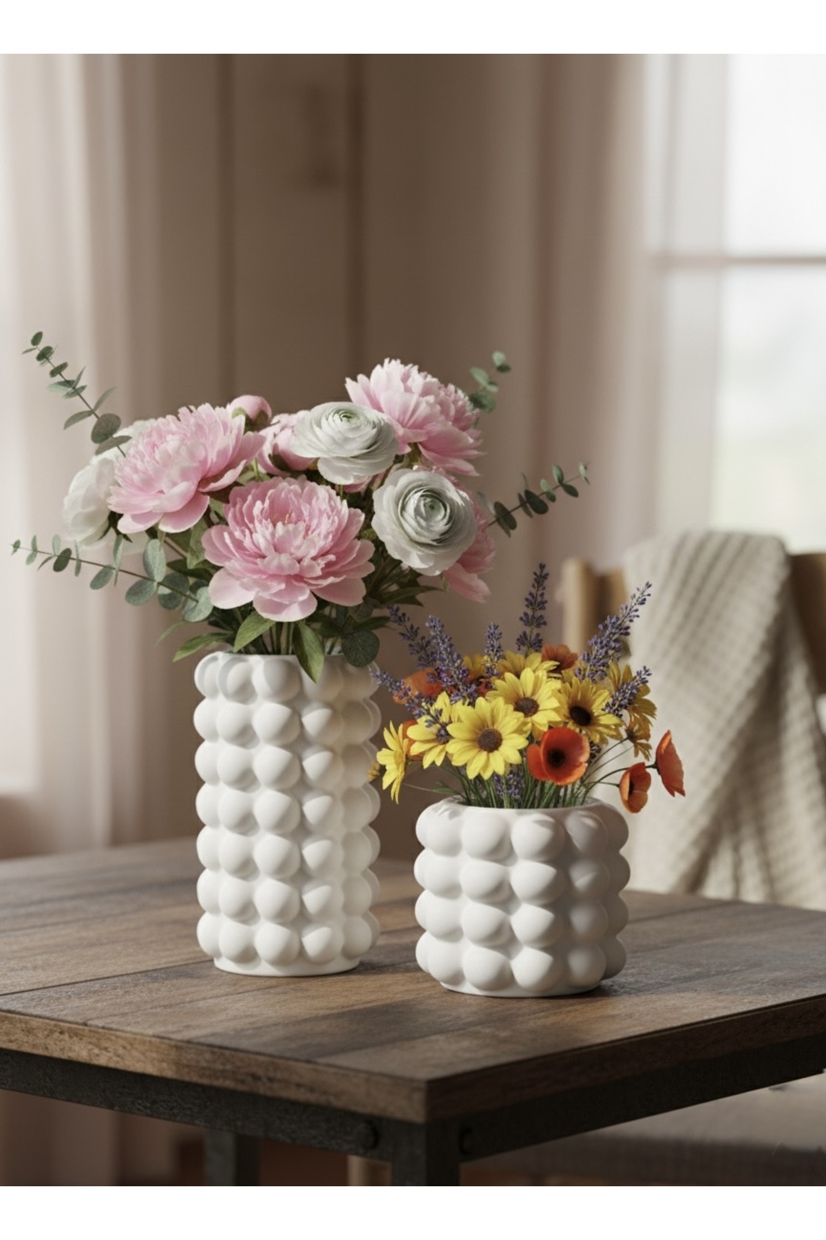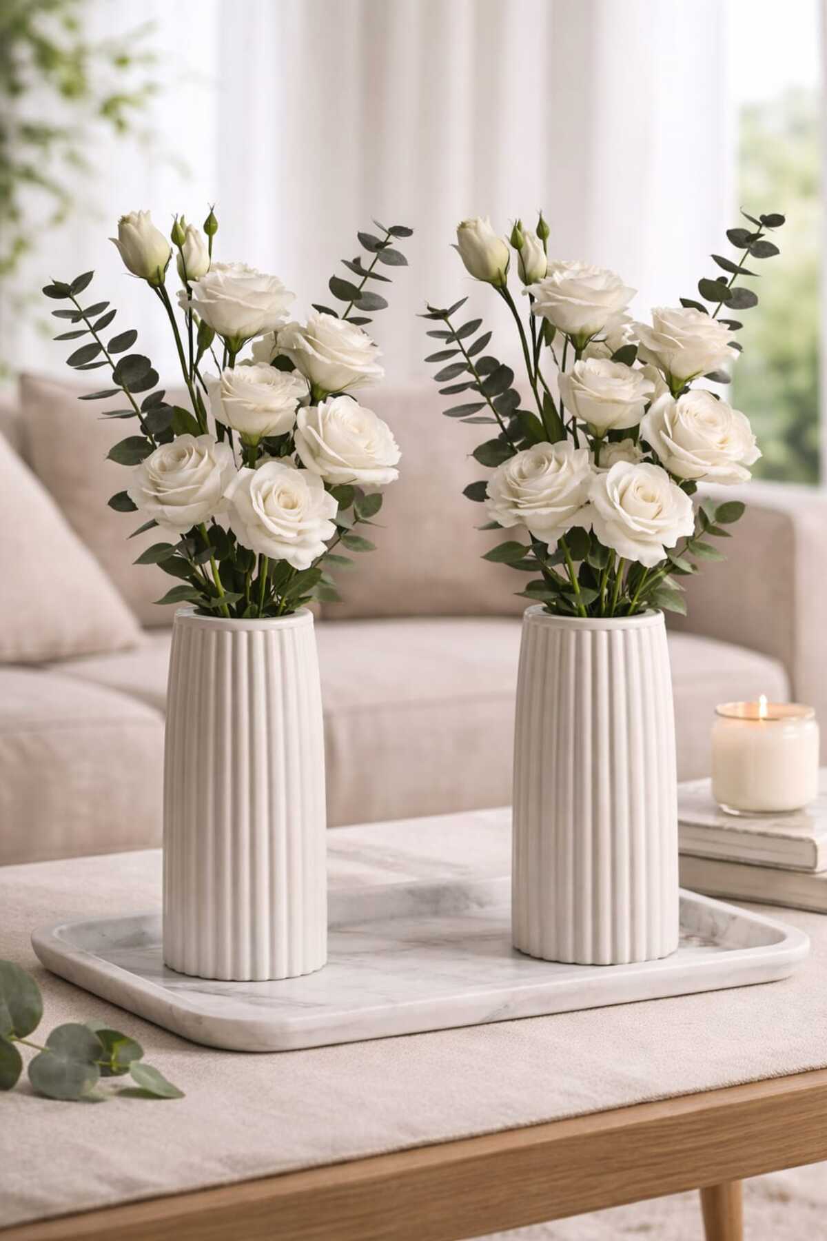 Modern Kıvrımlı 2'li Dekoratif Vazo Seti – Seramik Görünümlü Mat Doku, Ev Dekorasyon