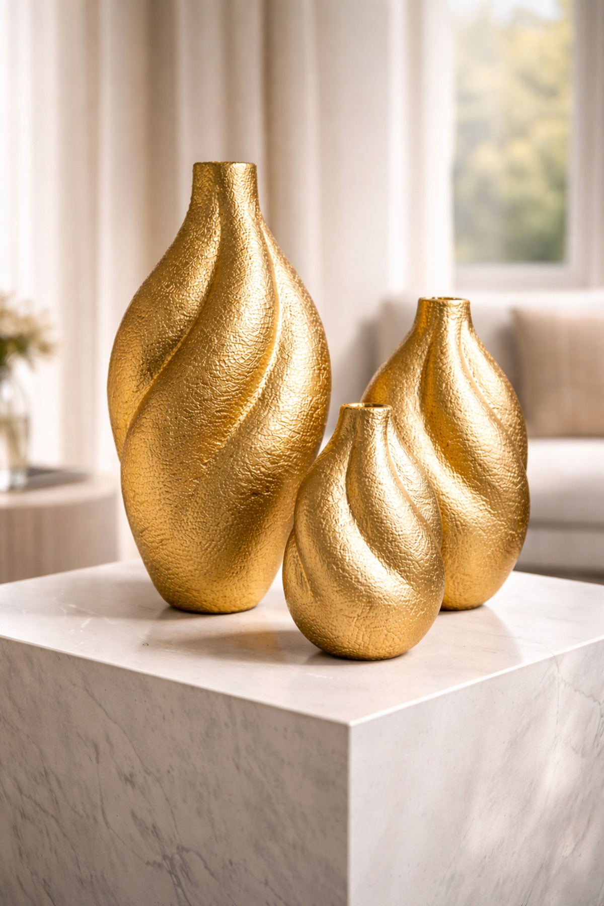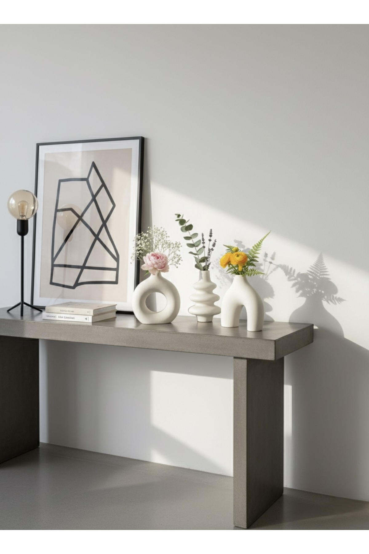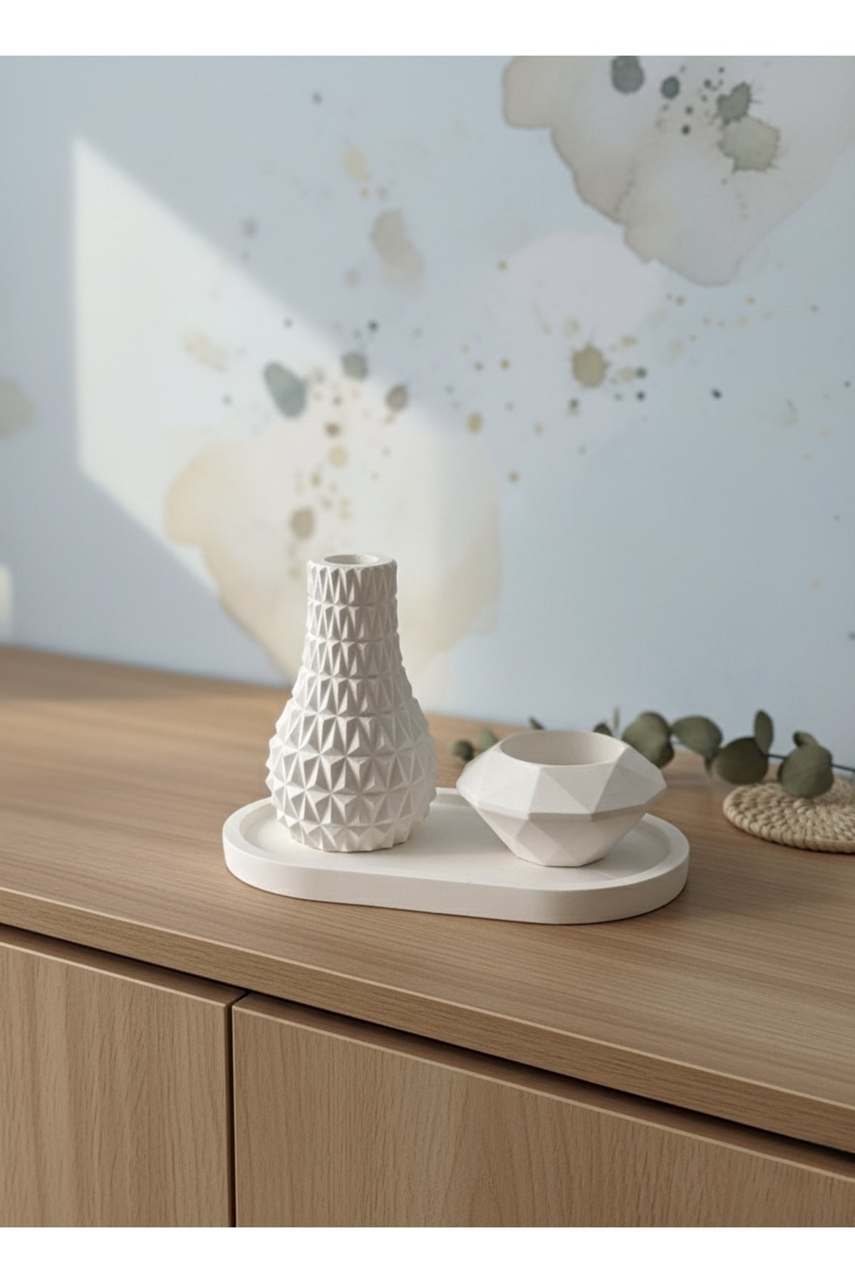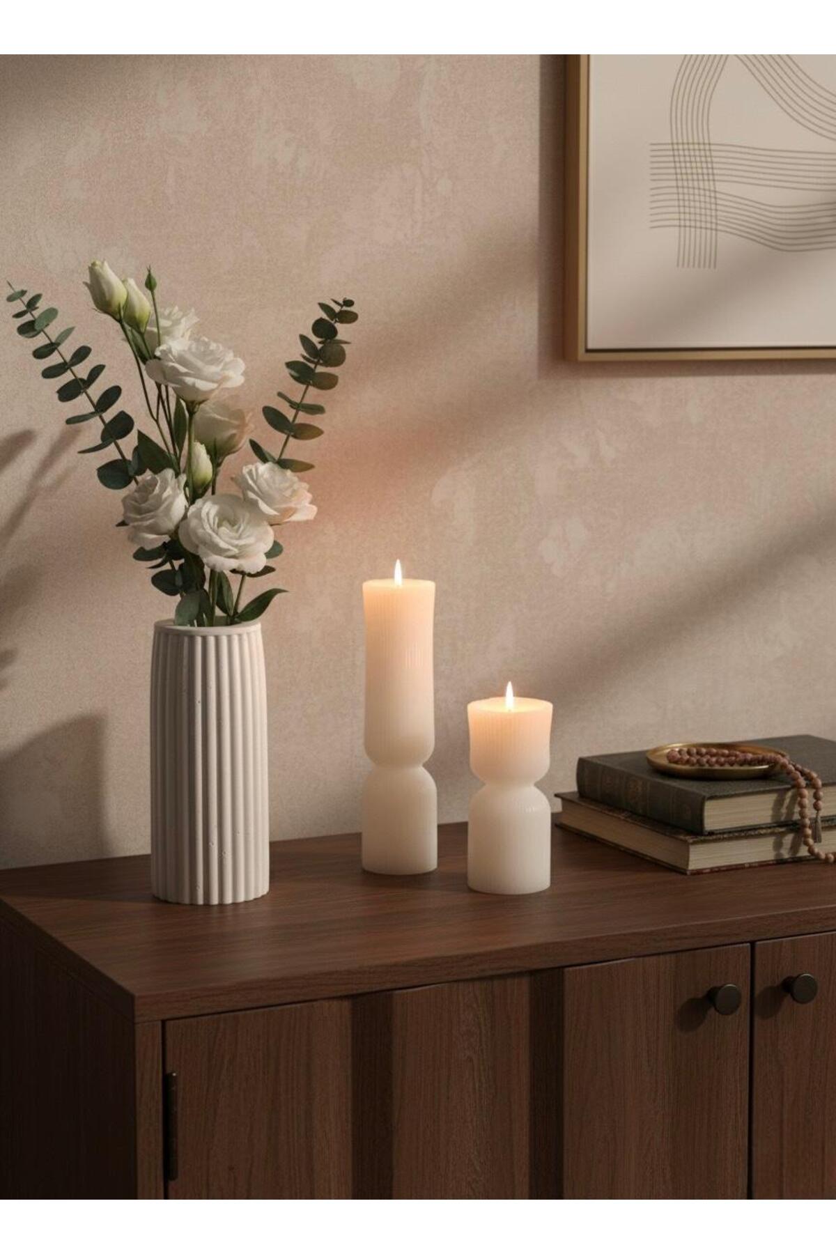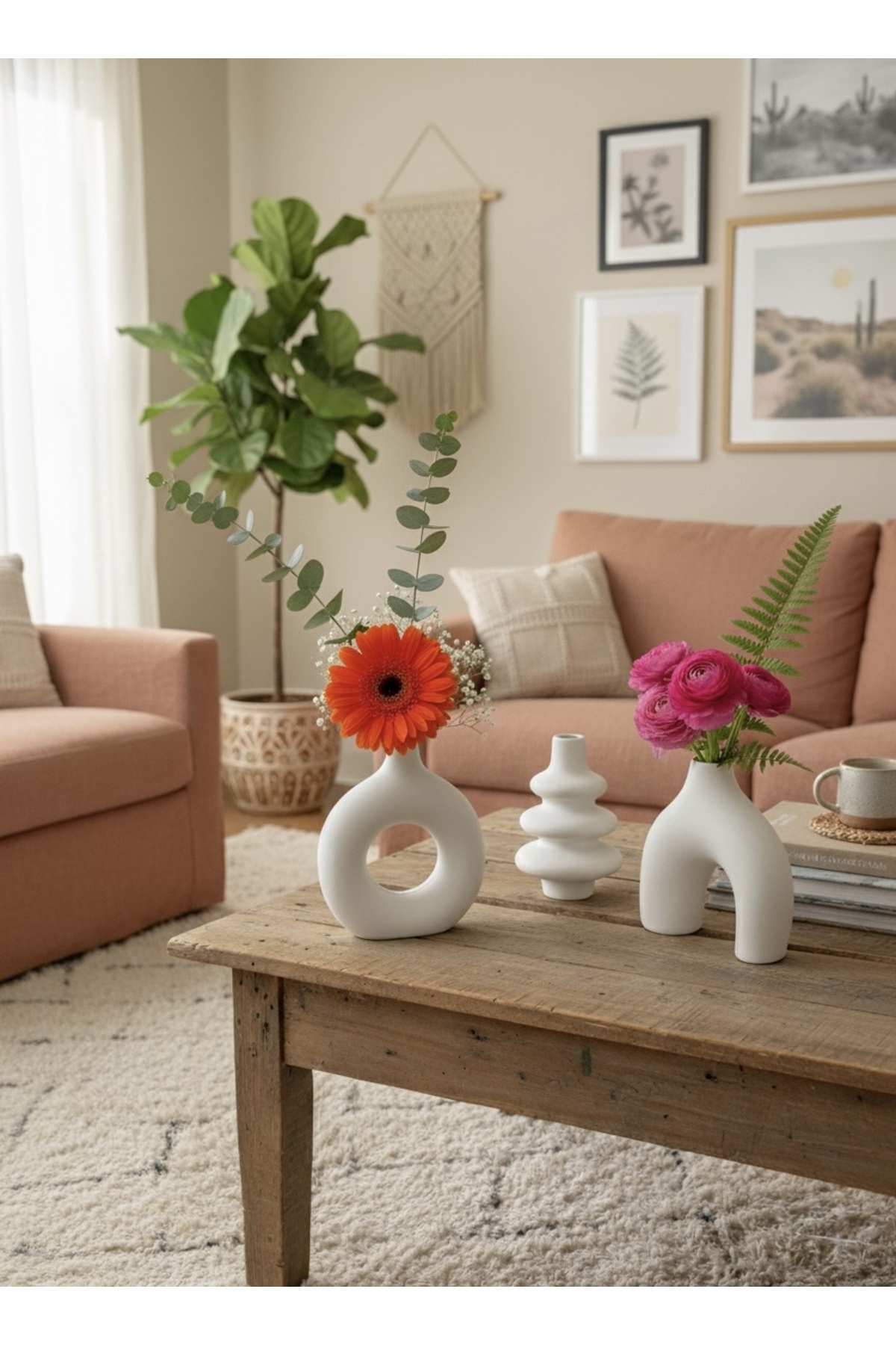 Modern Kıvrımlı 2'li Dekoratif Vazo Seti – Seramik Görünümlü Mat Doku, Ev Dekorasyon
