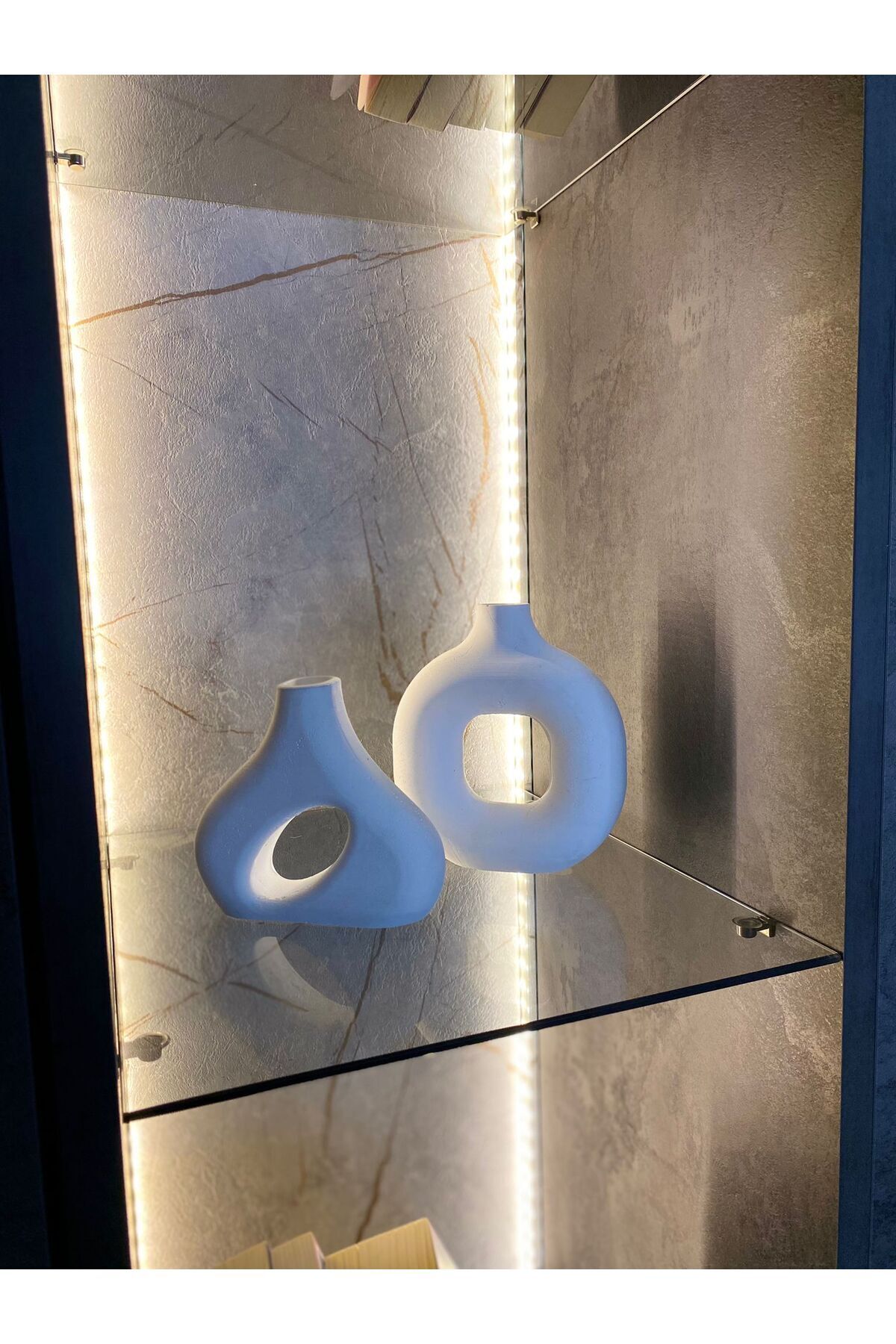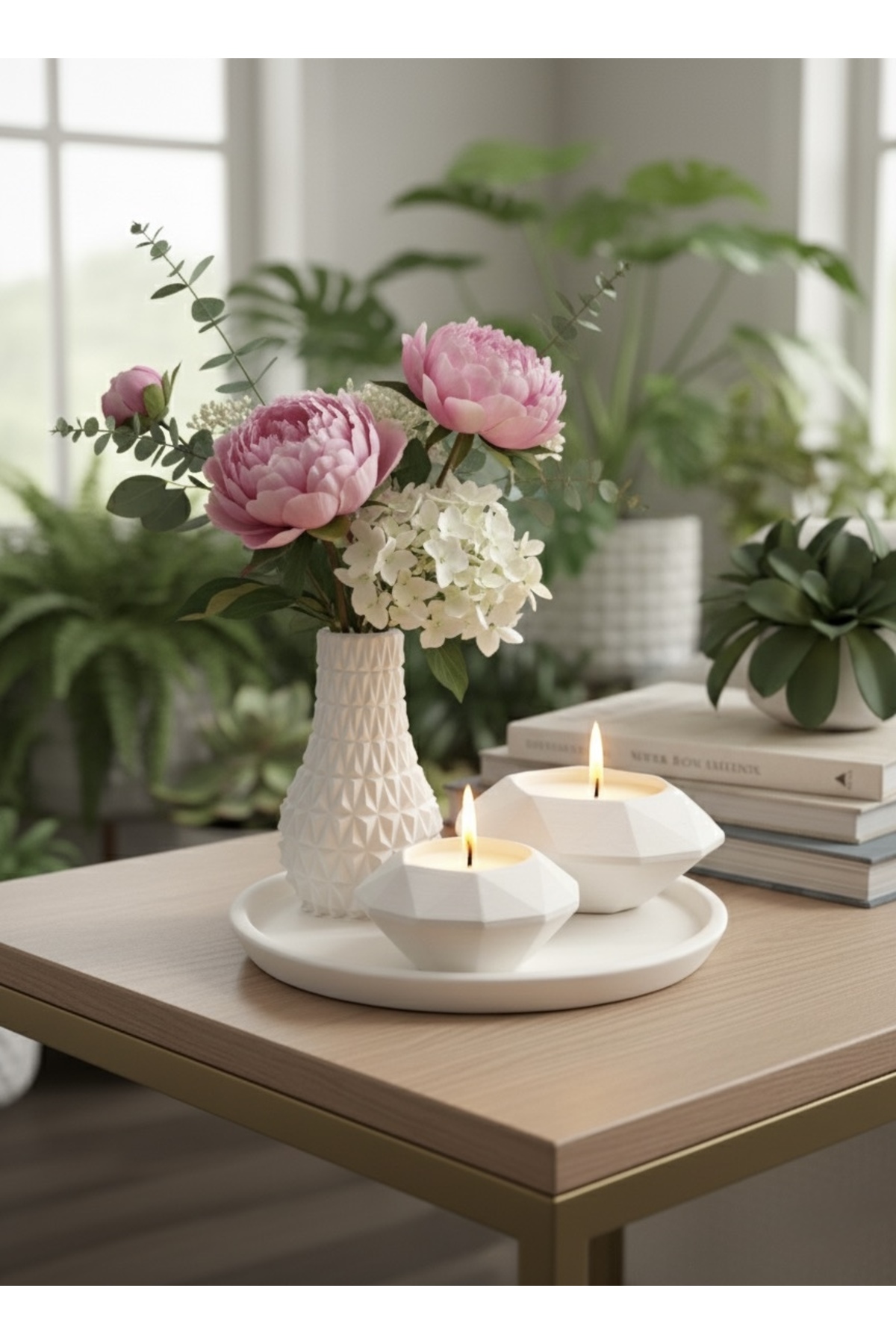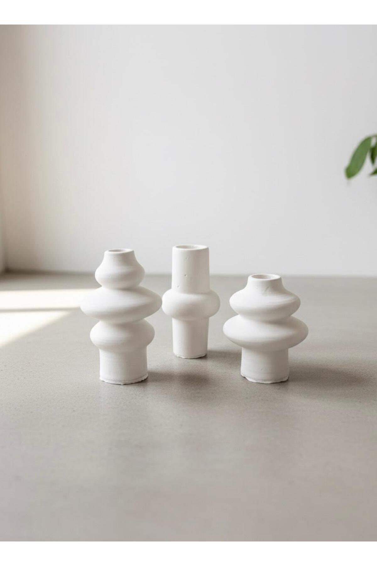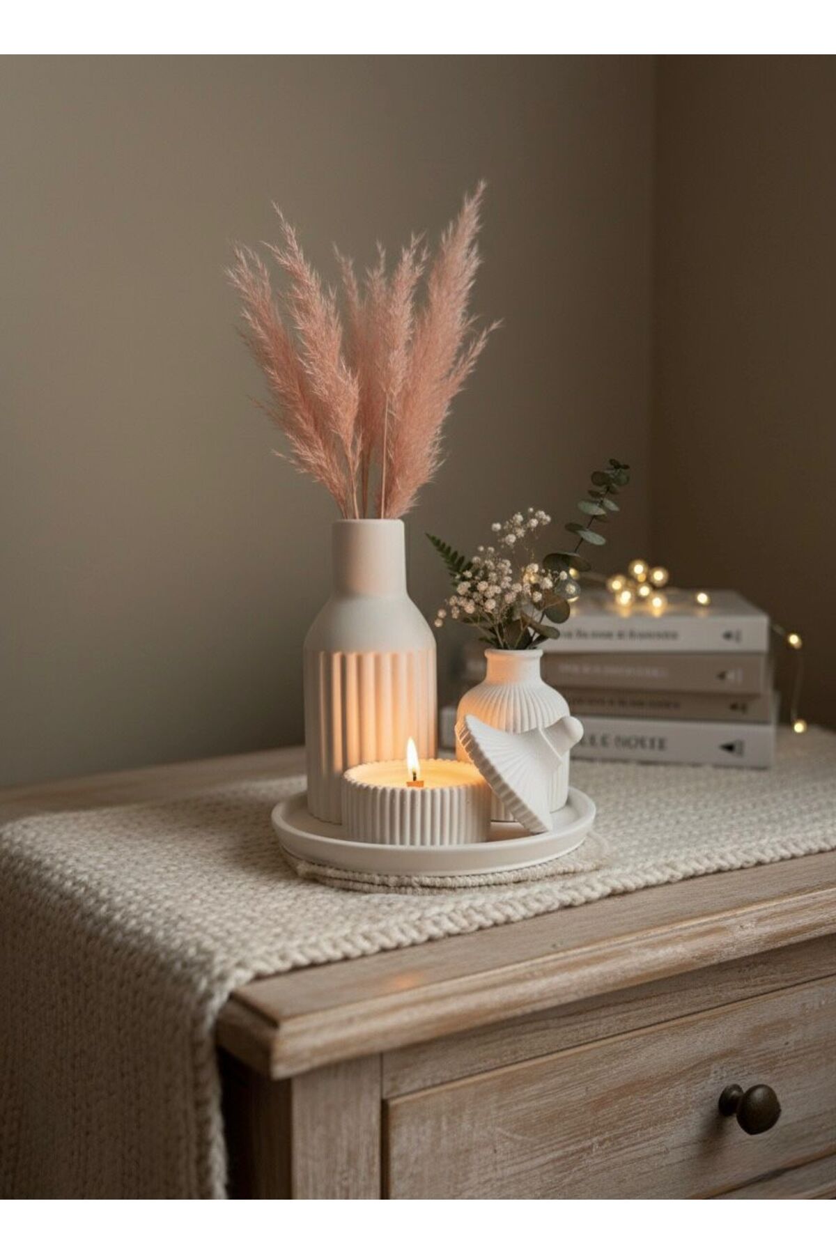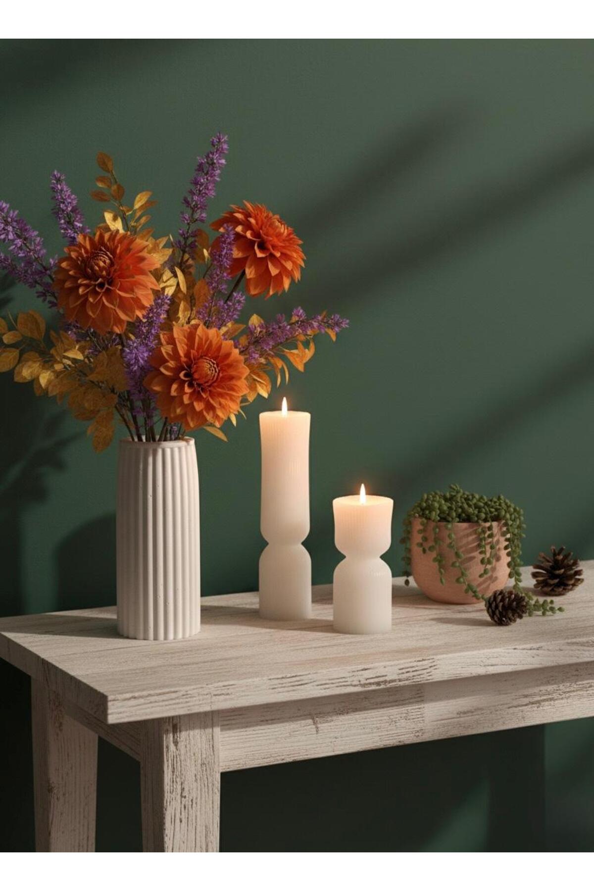 Modern Kıvrımlı 2'li Dekoratif Vazo Seti – Seramik Görünümlü Mat Doku, Ev Dekorasyon