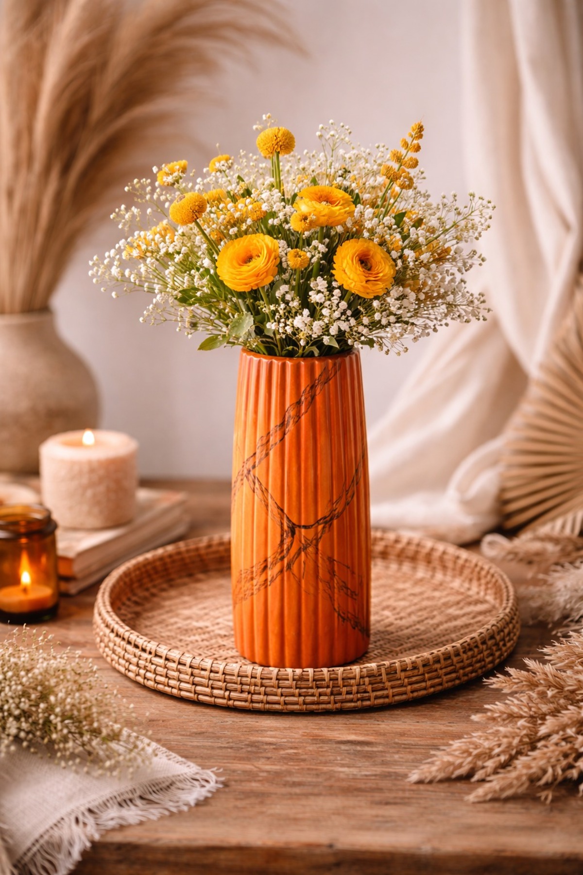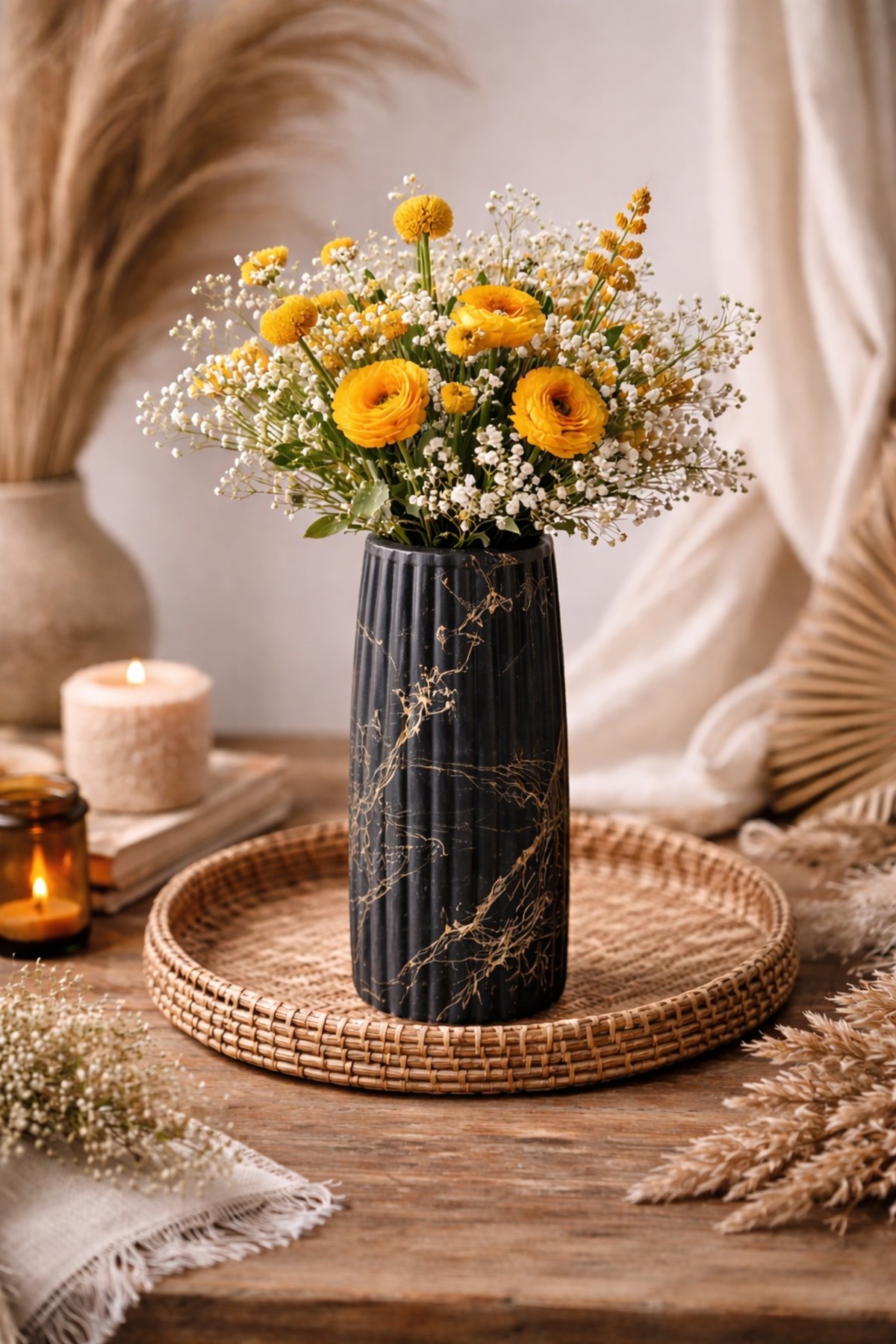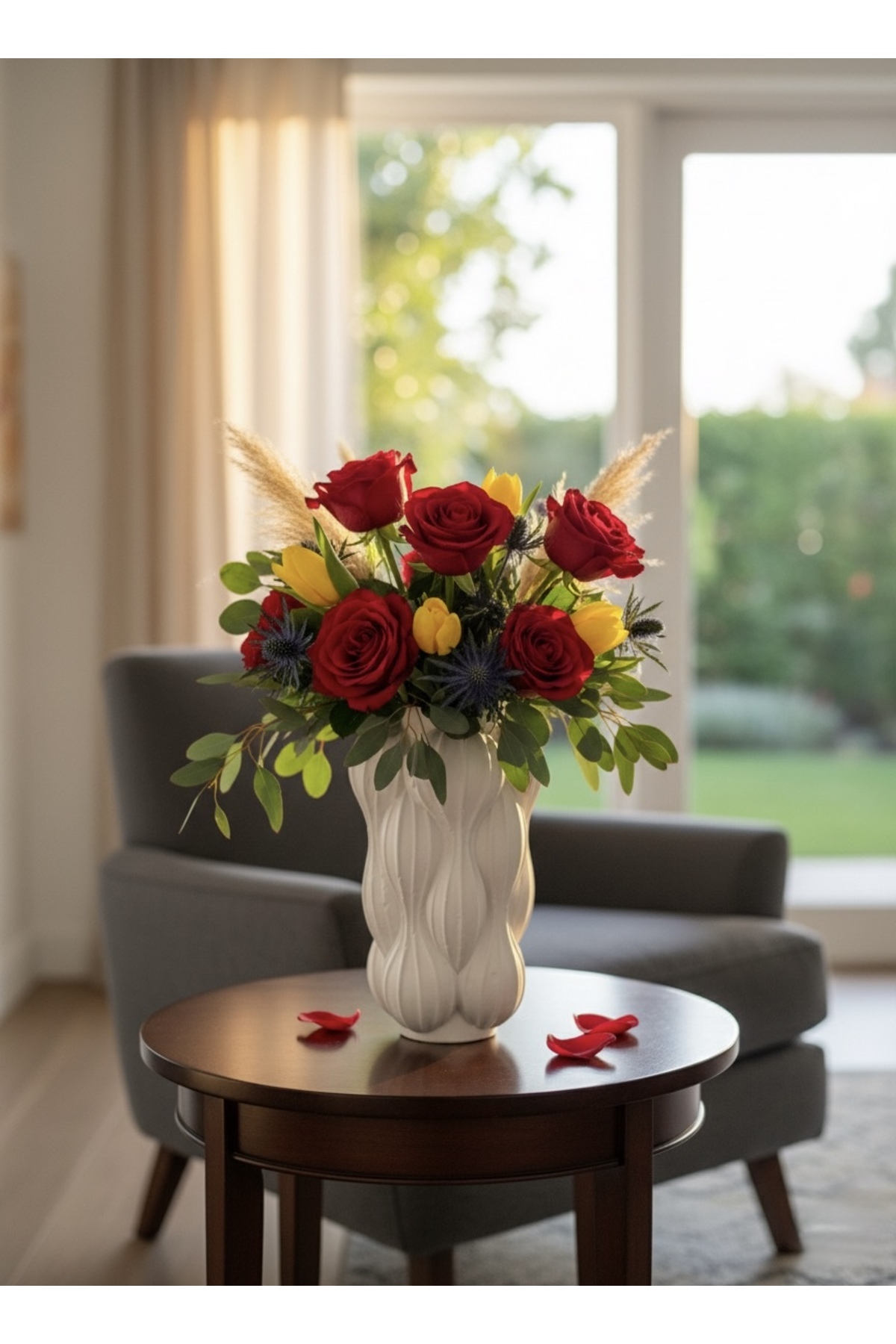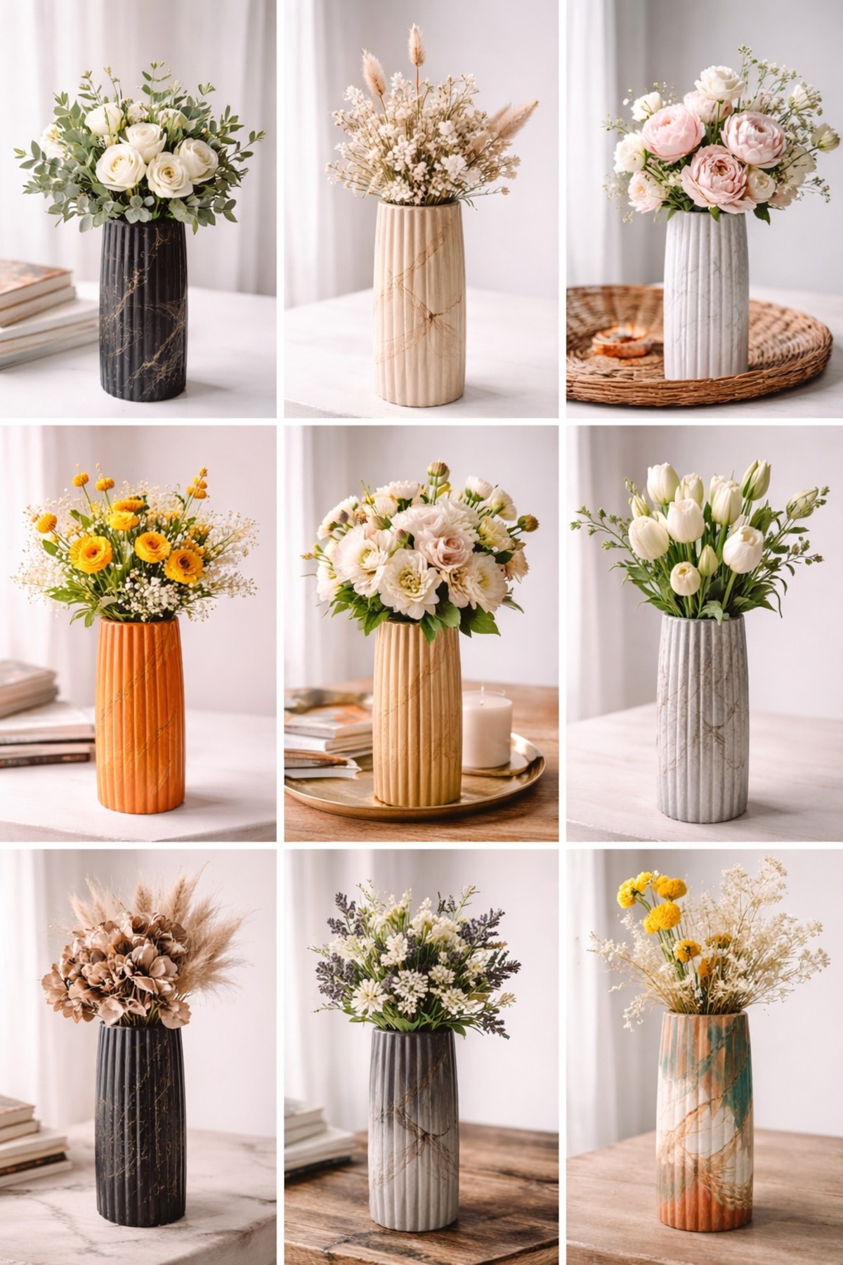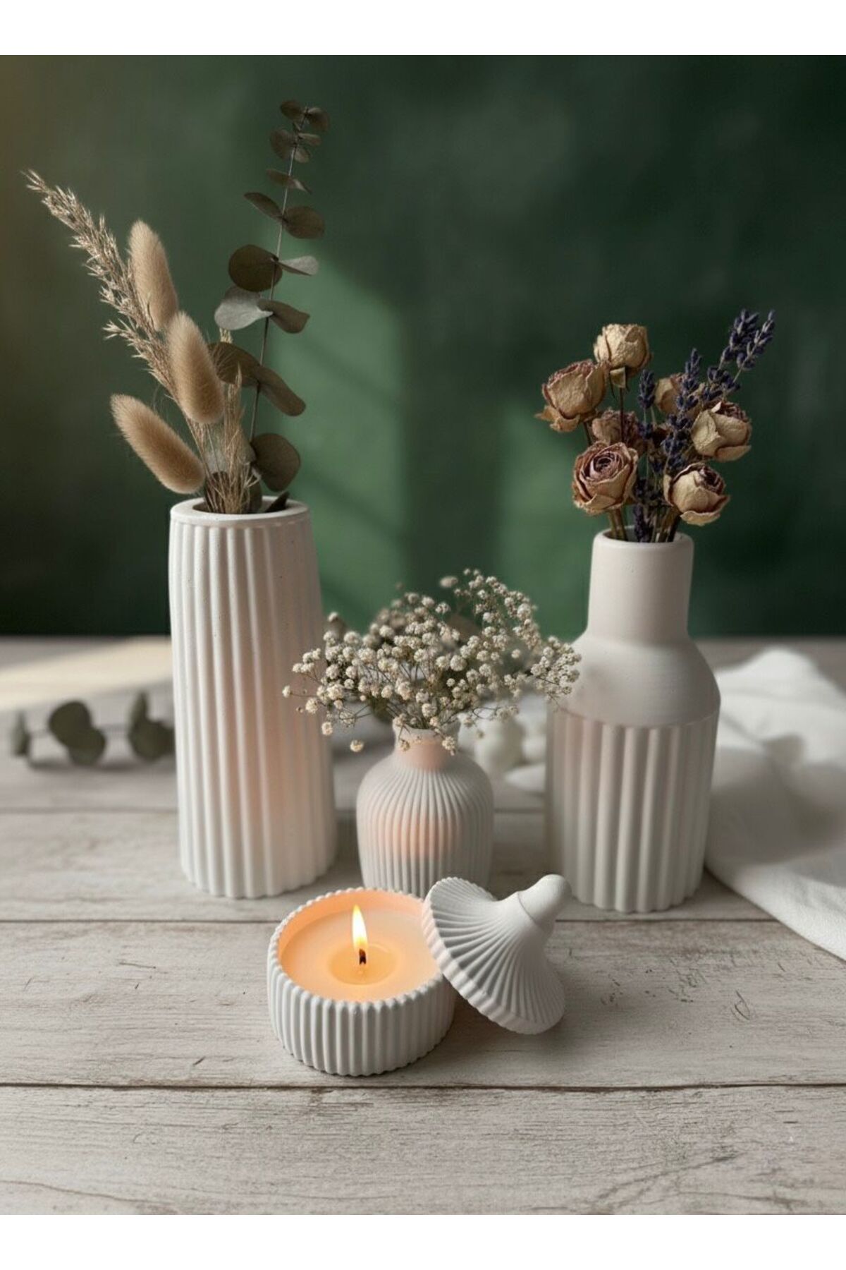Modern Kıvrımlı 2'li Dekoratif Vazo Seti – Seramik Görünümlü Mat Doku, Ev Dekorasyon