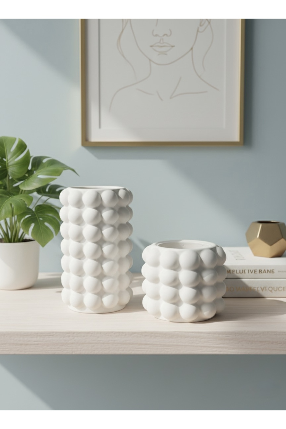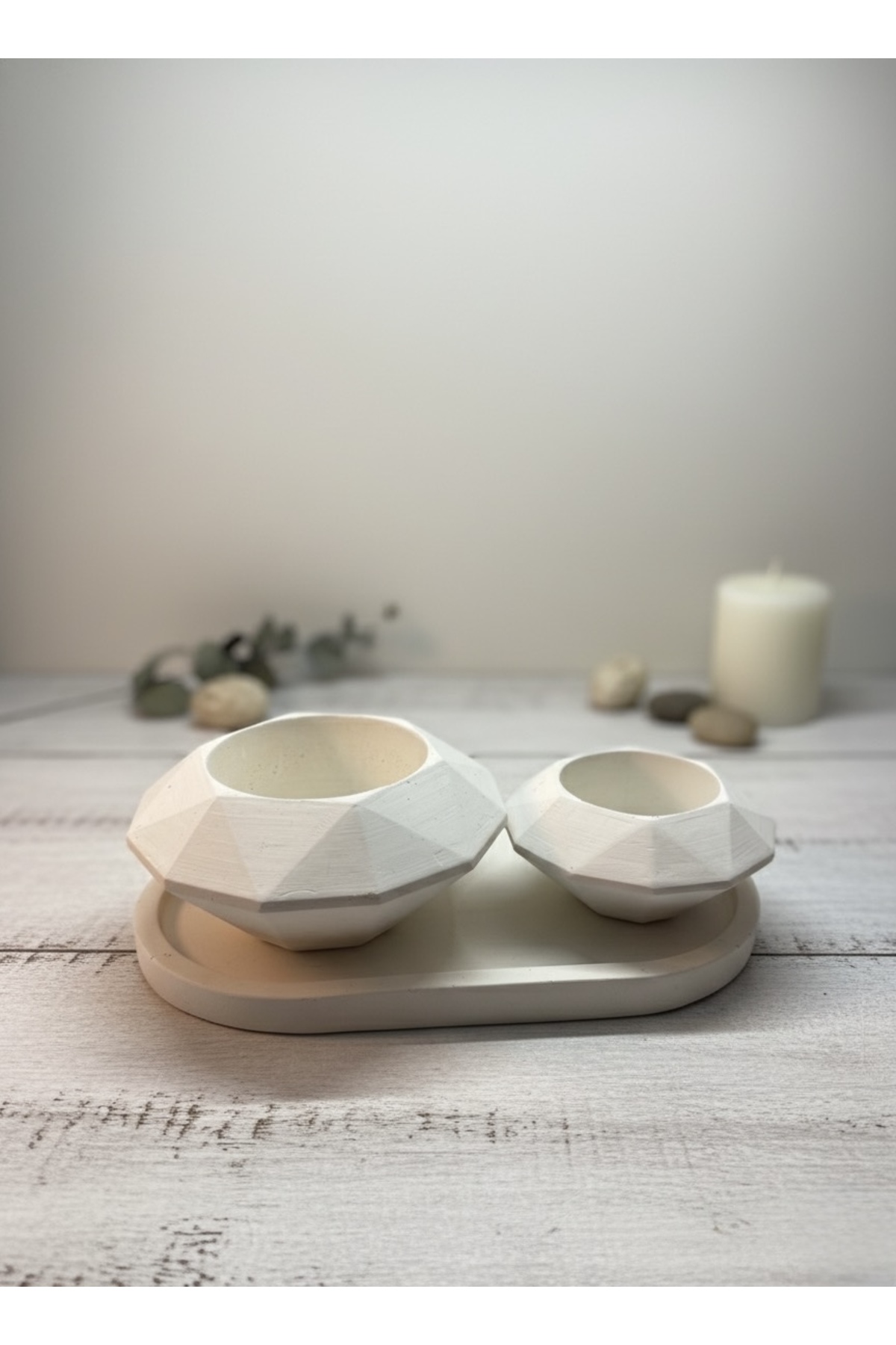 - Modern ve şık tasarımıyla evinizin dekorasyonuna zarif bir dokunuş katar.; - Seramik görünümü ve mat dokusu ile estetik bir görünüm sunar.; - 2'li set halinde sunulması, farklı alanlarda veya kombinasyonlarda kullanma imkanı sağlar.; - Evinizin her köşesine uyum sağlayacak, çok yönlü bir dekoratif obje.; 1. Ürün 10 cm x 10 cm 2. Ürün 14 cm x 14 cm