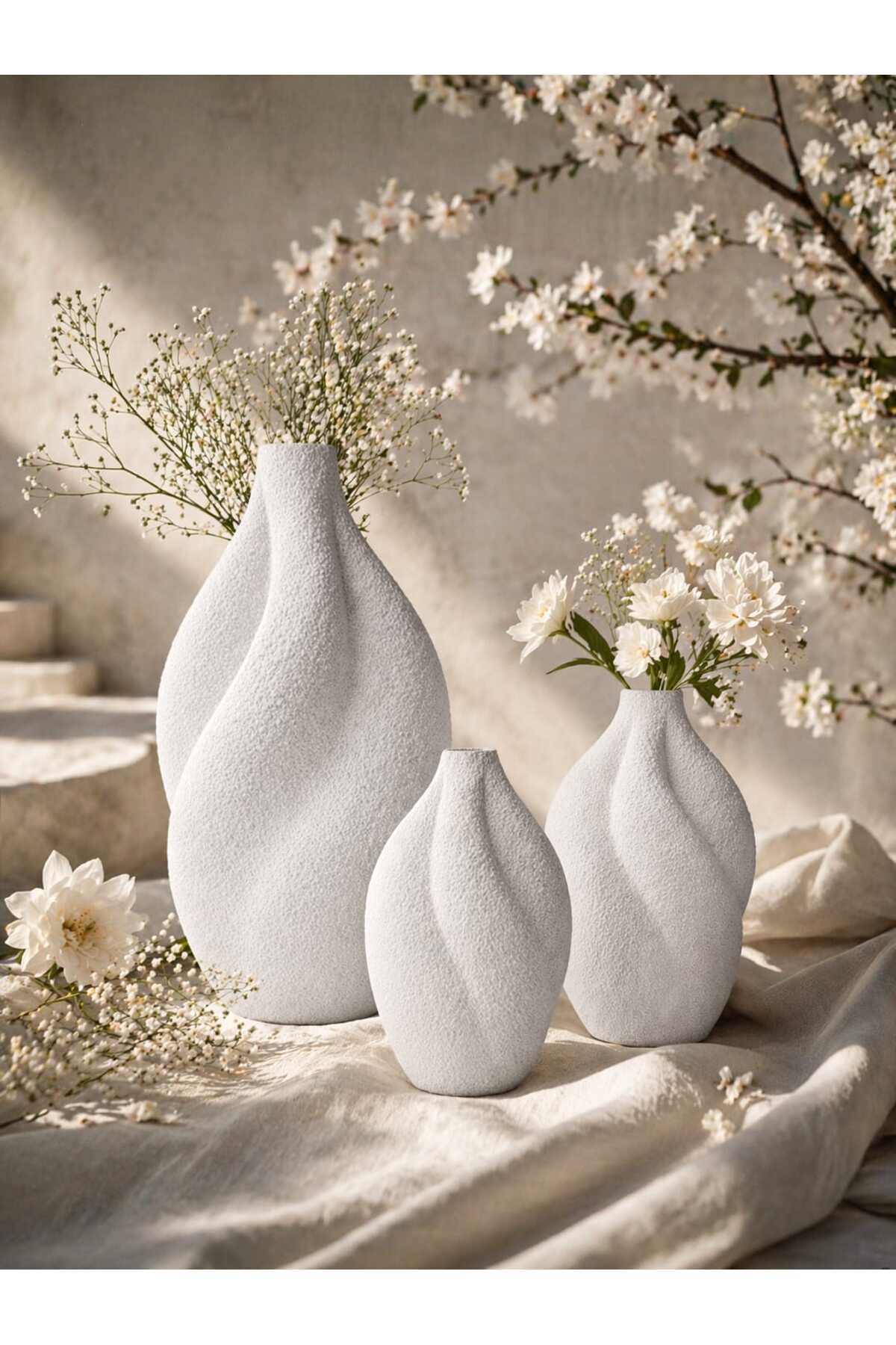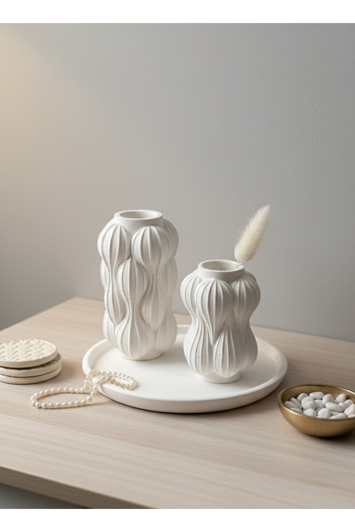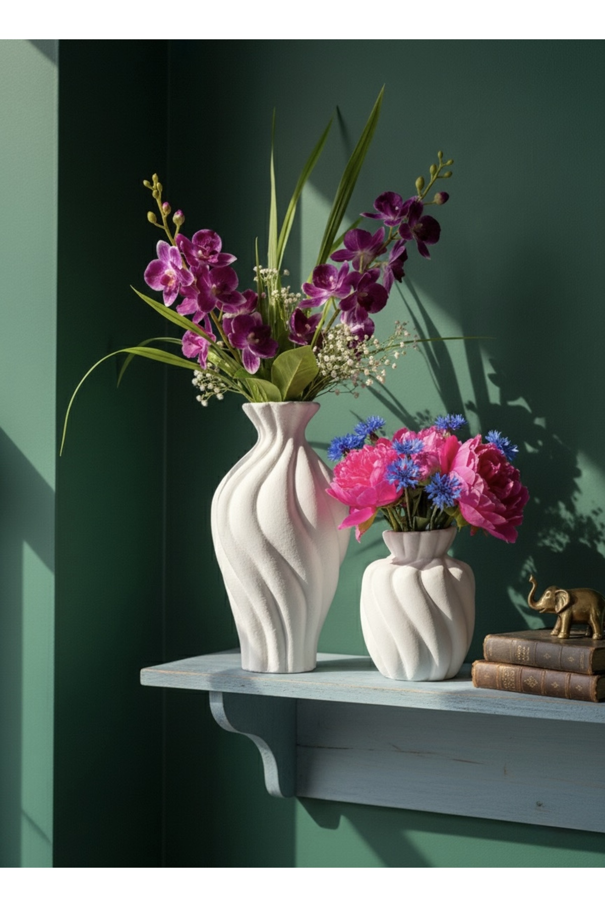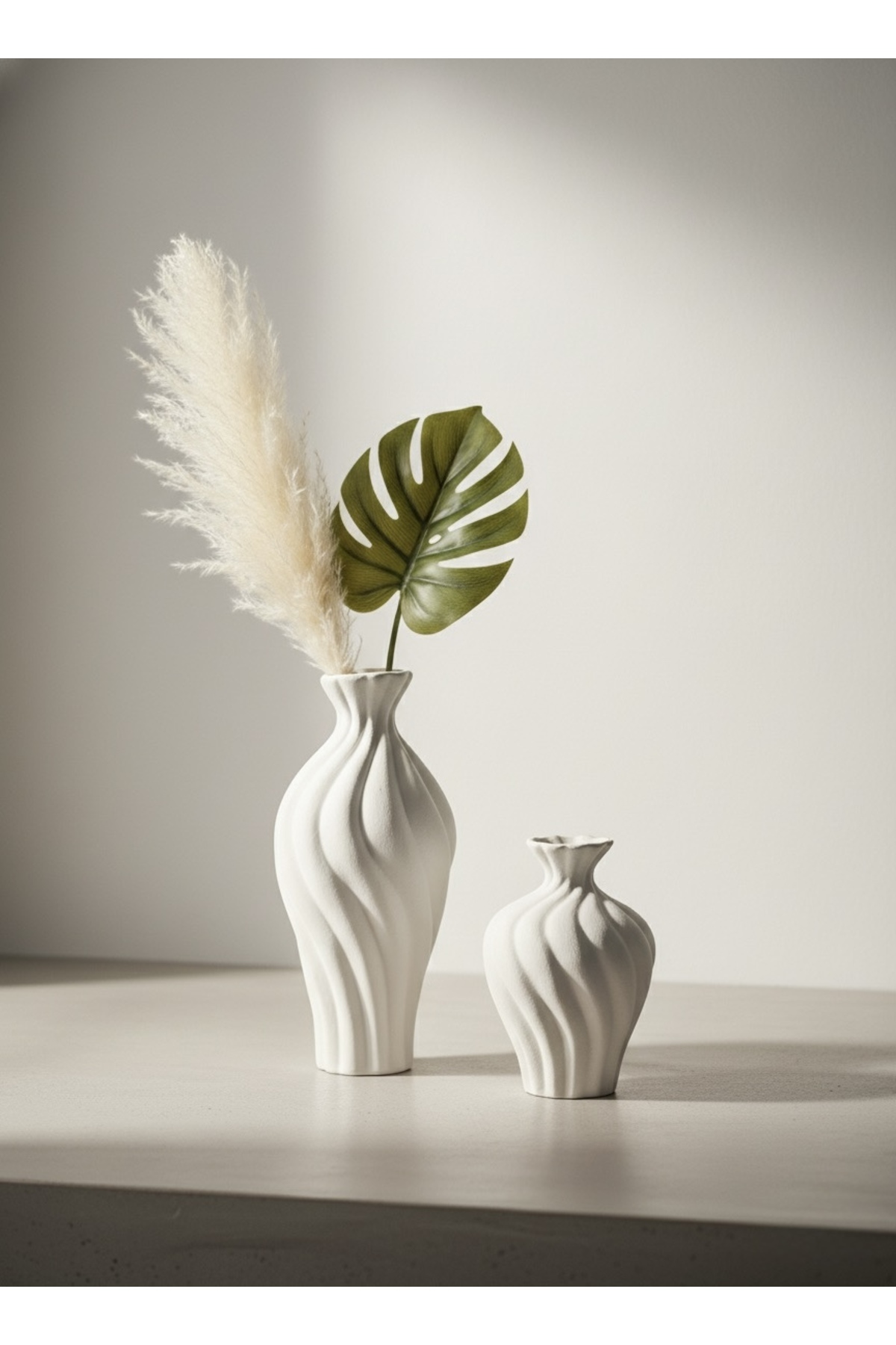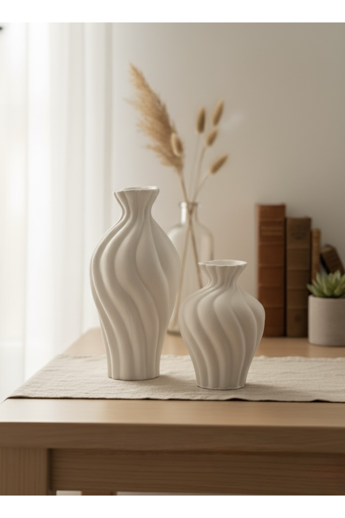 Modern Kıvrımlı 2'li Dekoratif Vazo Seti – Seramik Görünümlü Mat Doku, Ev Dekorasyon