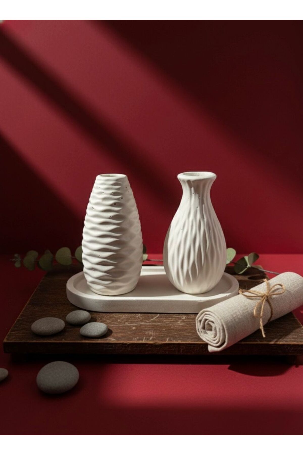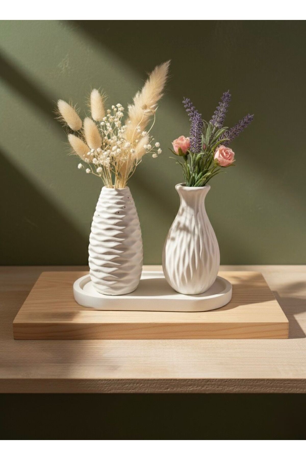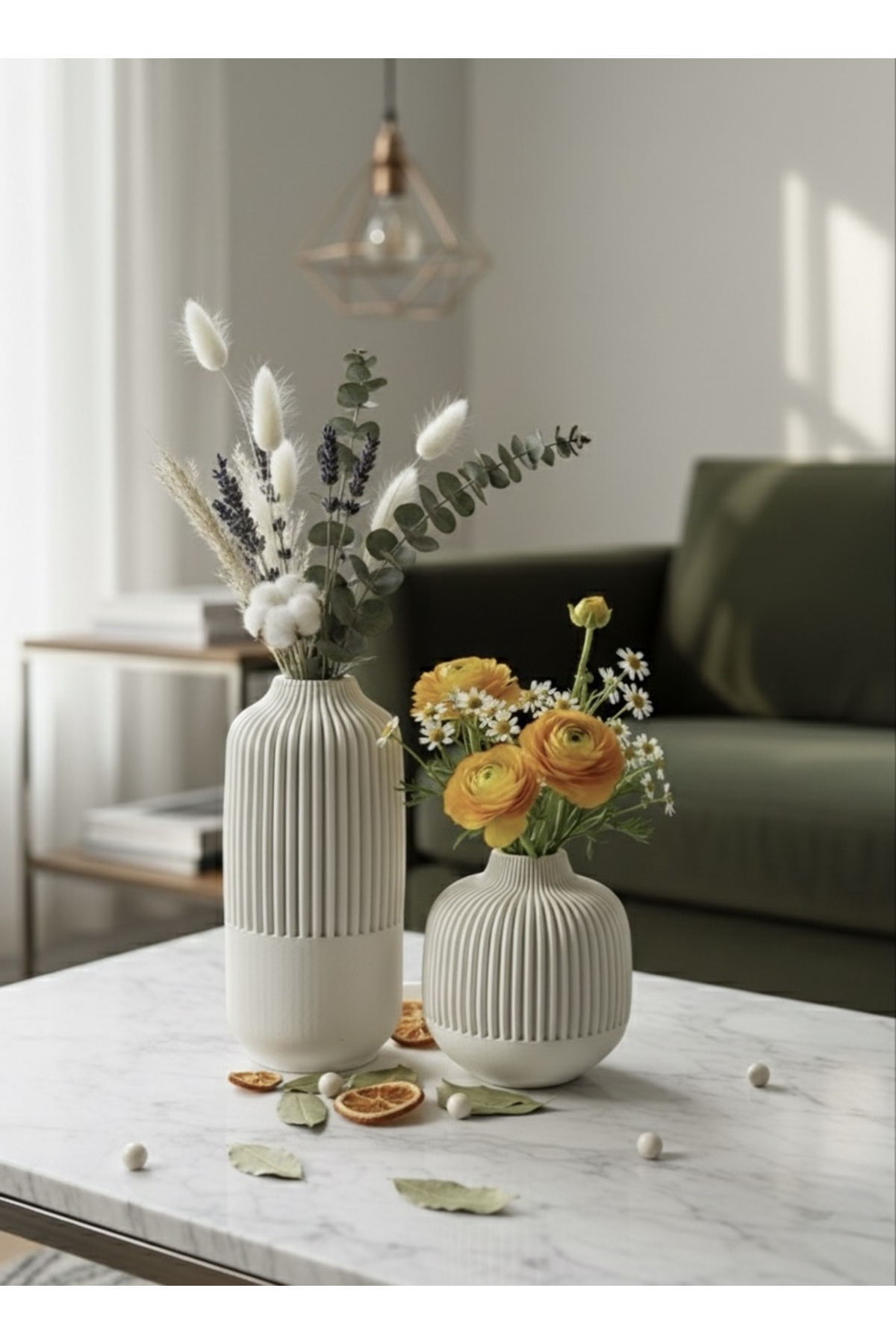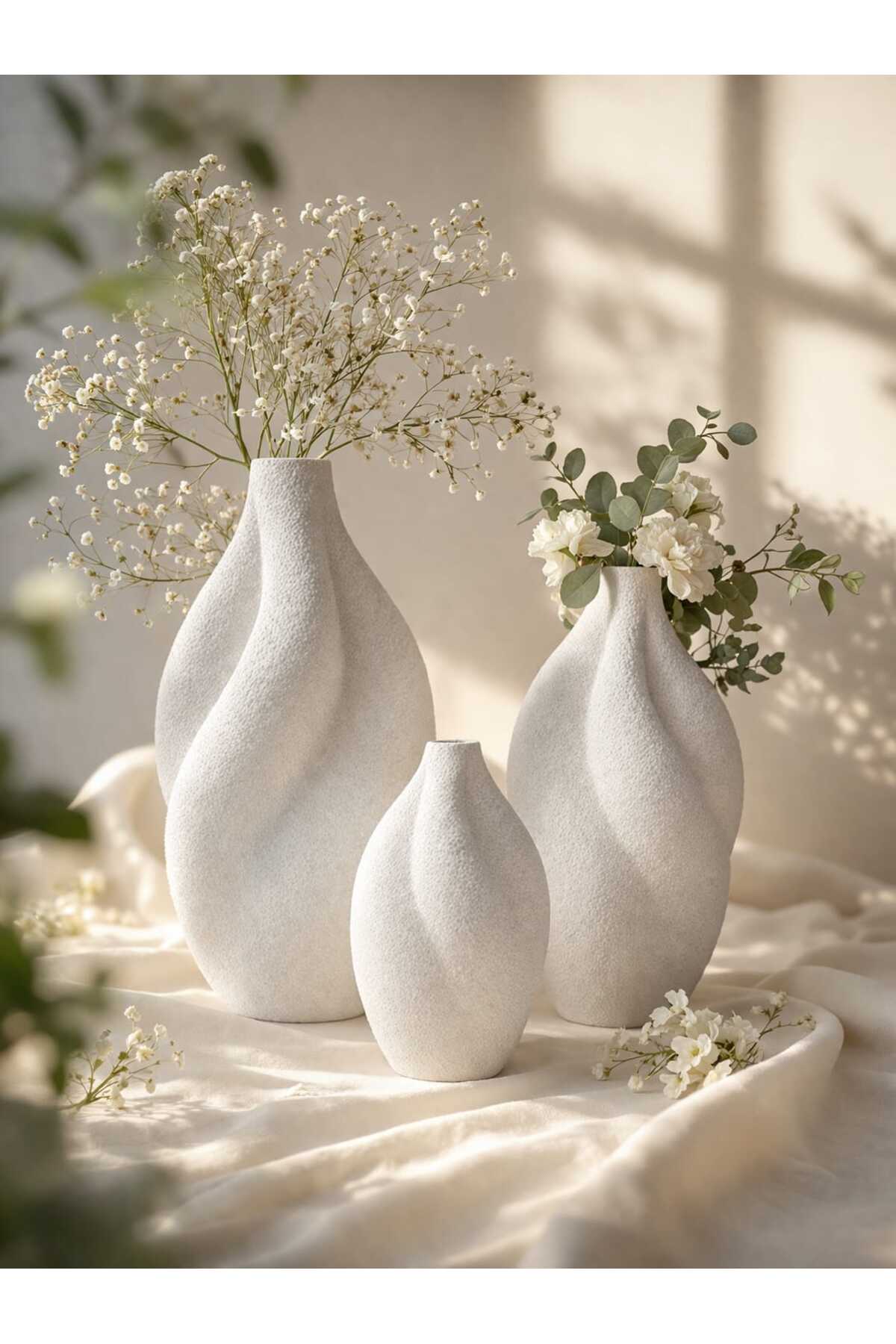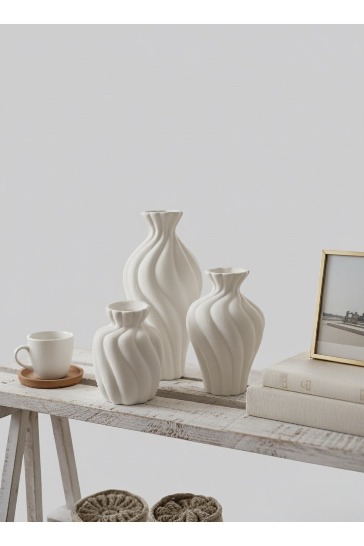 Modern Kıvrımlı 2'li Dekoratif Vazo Seti – Seramik Görünümlü Mat Doku, Ev Dekorasyon