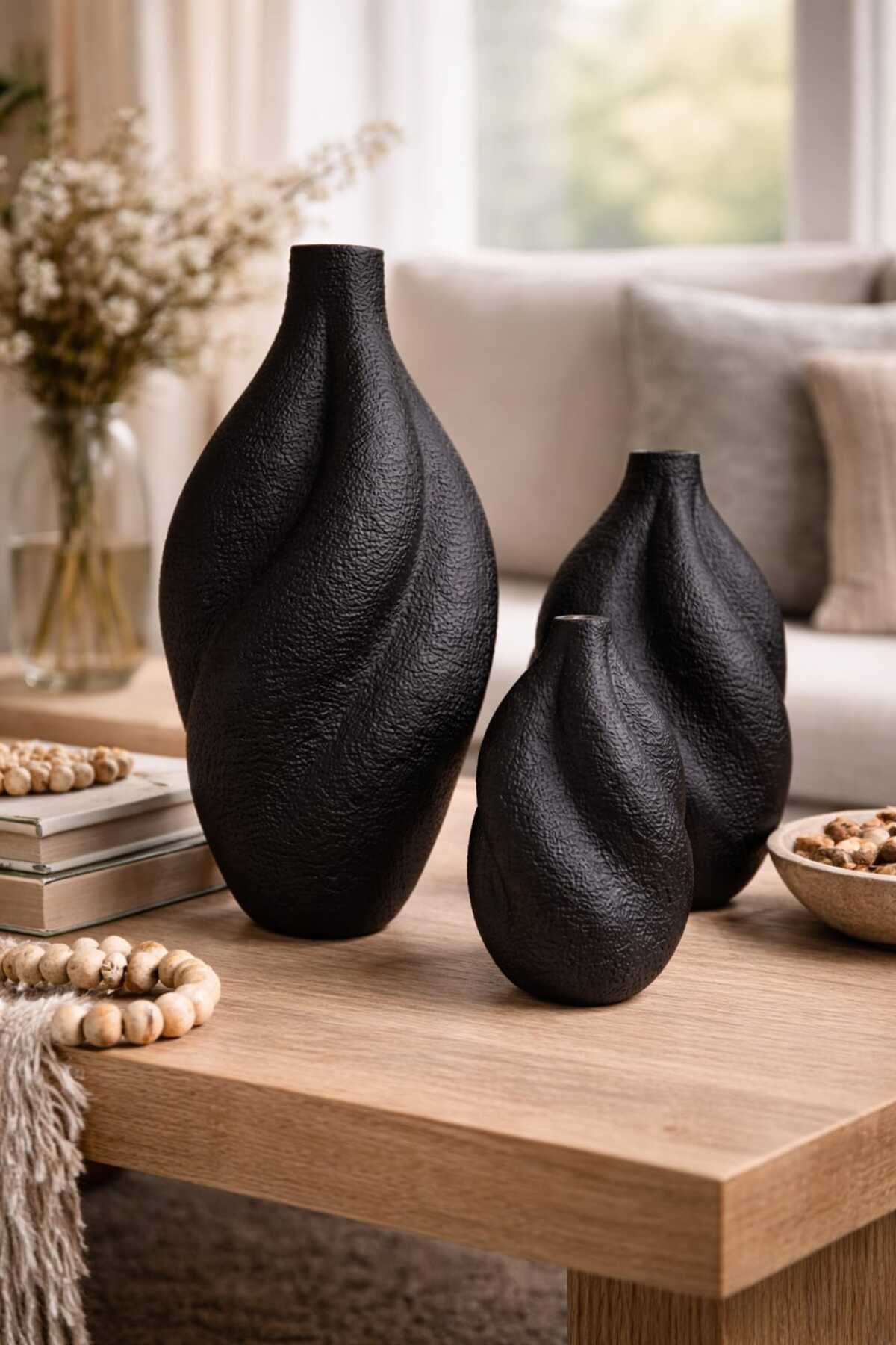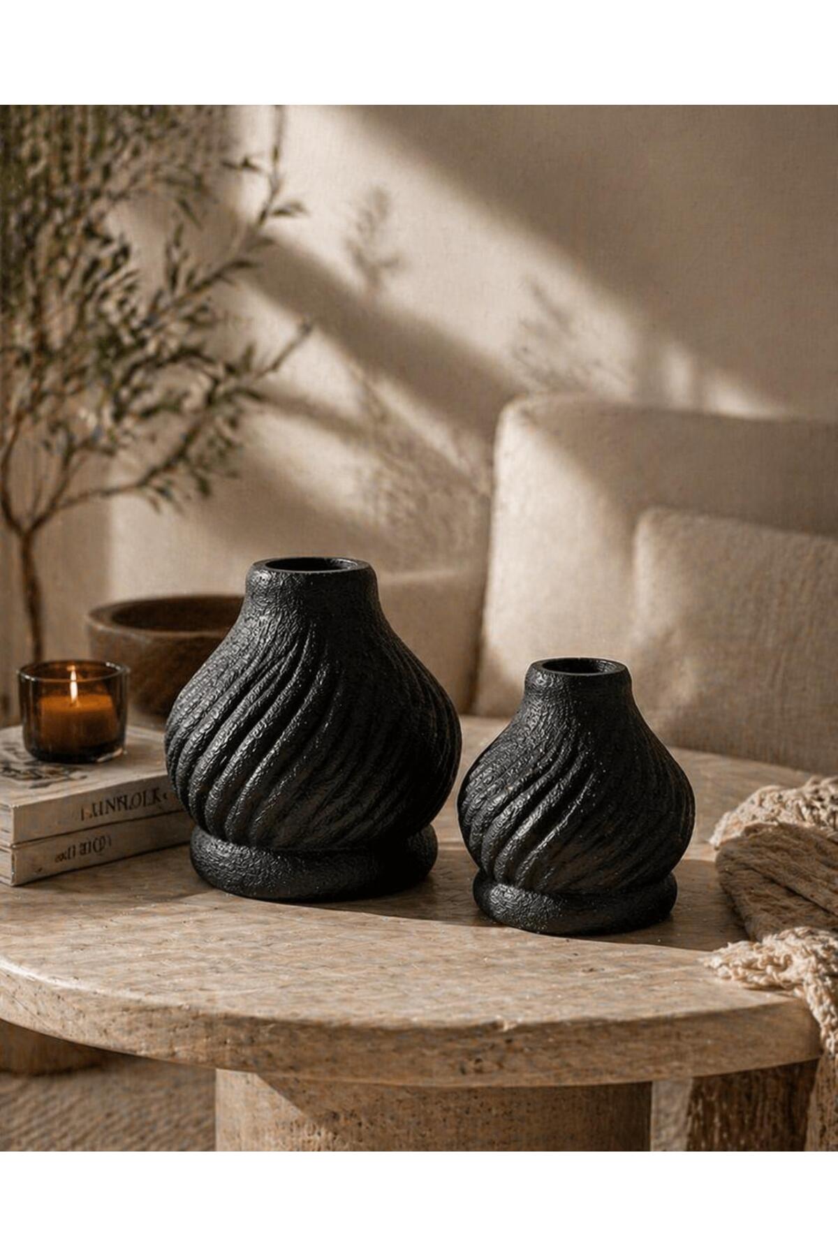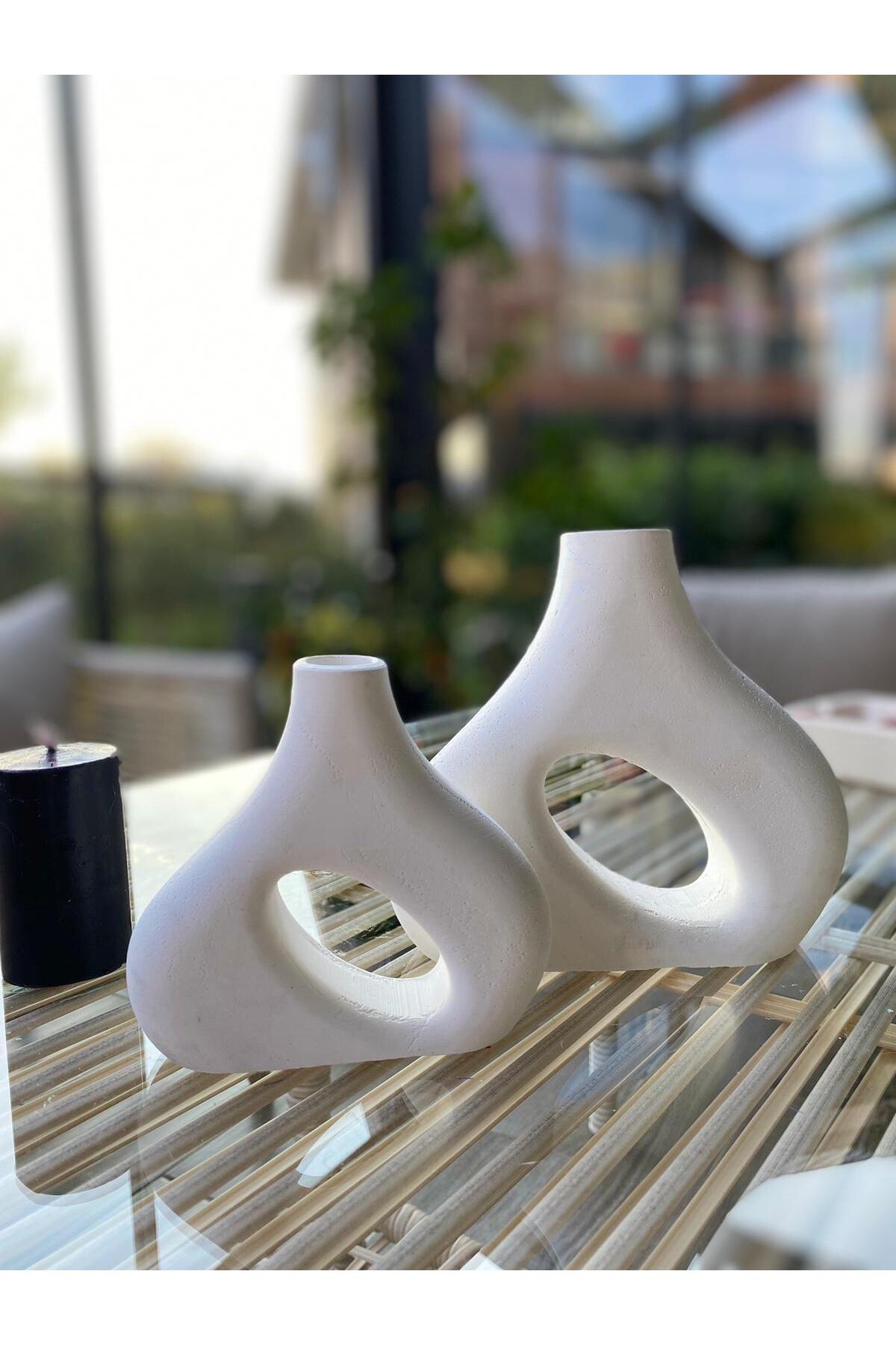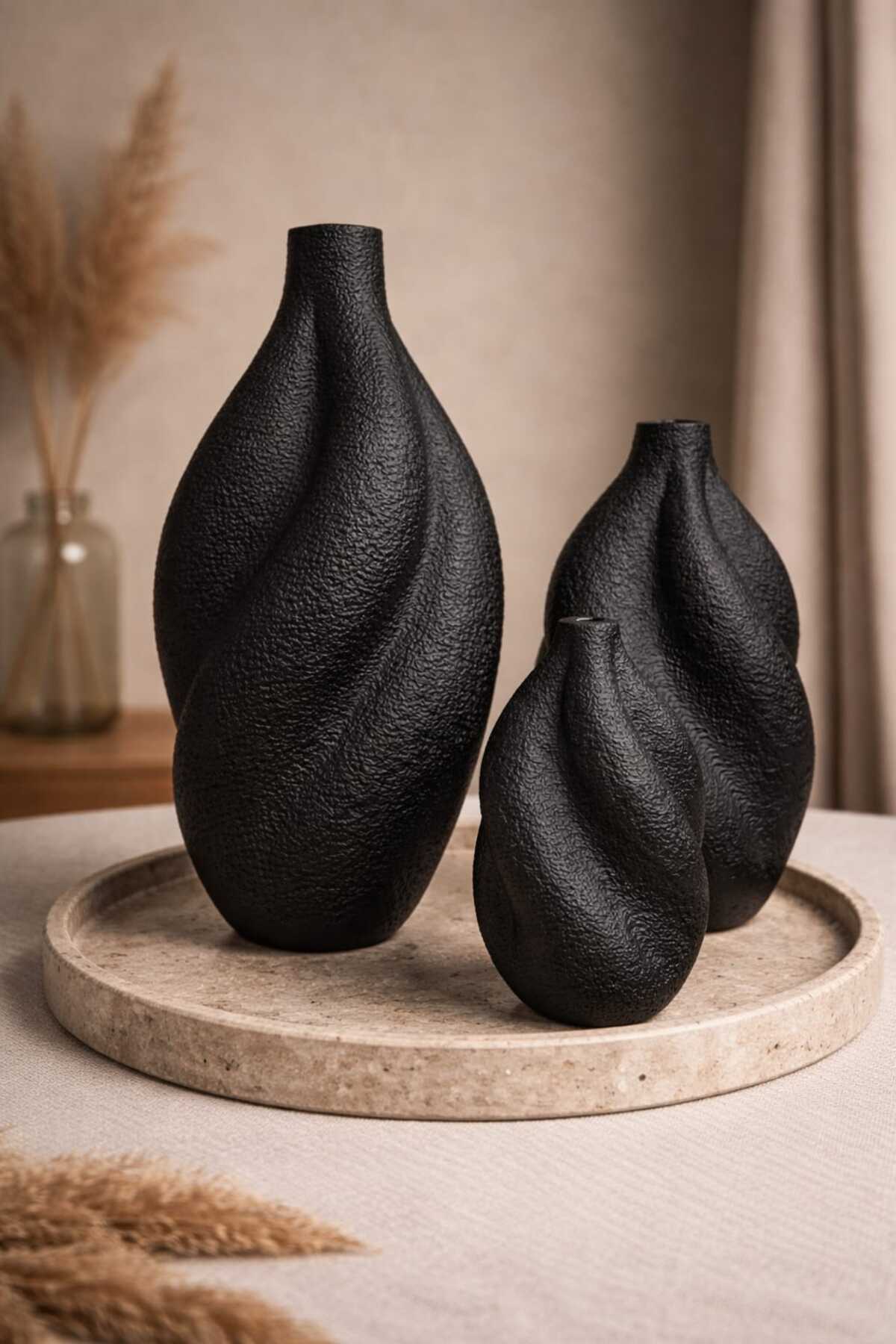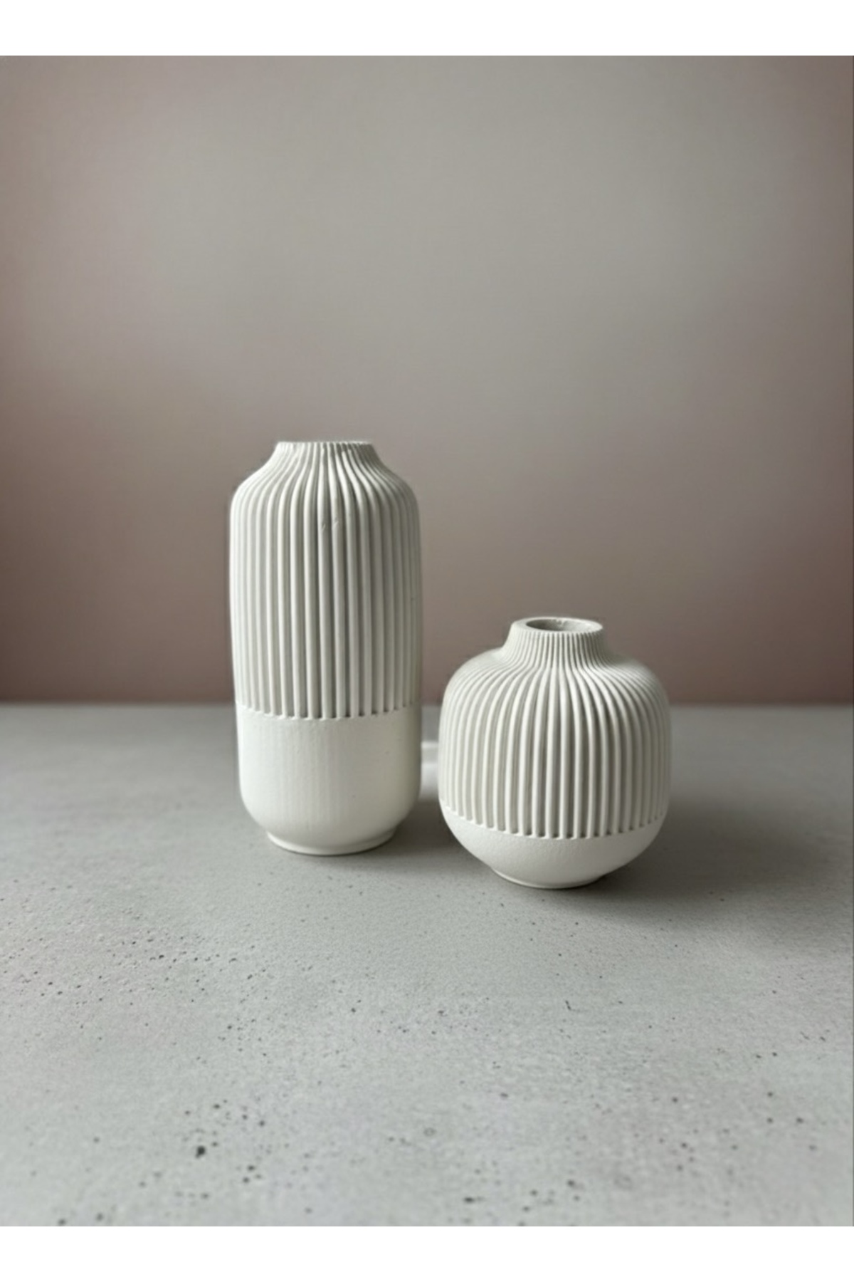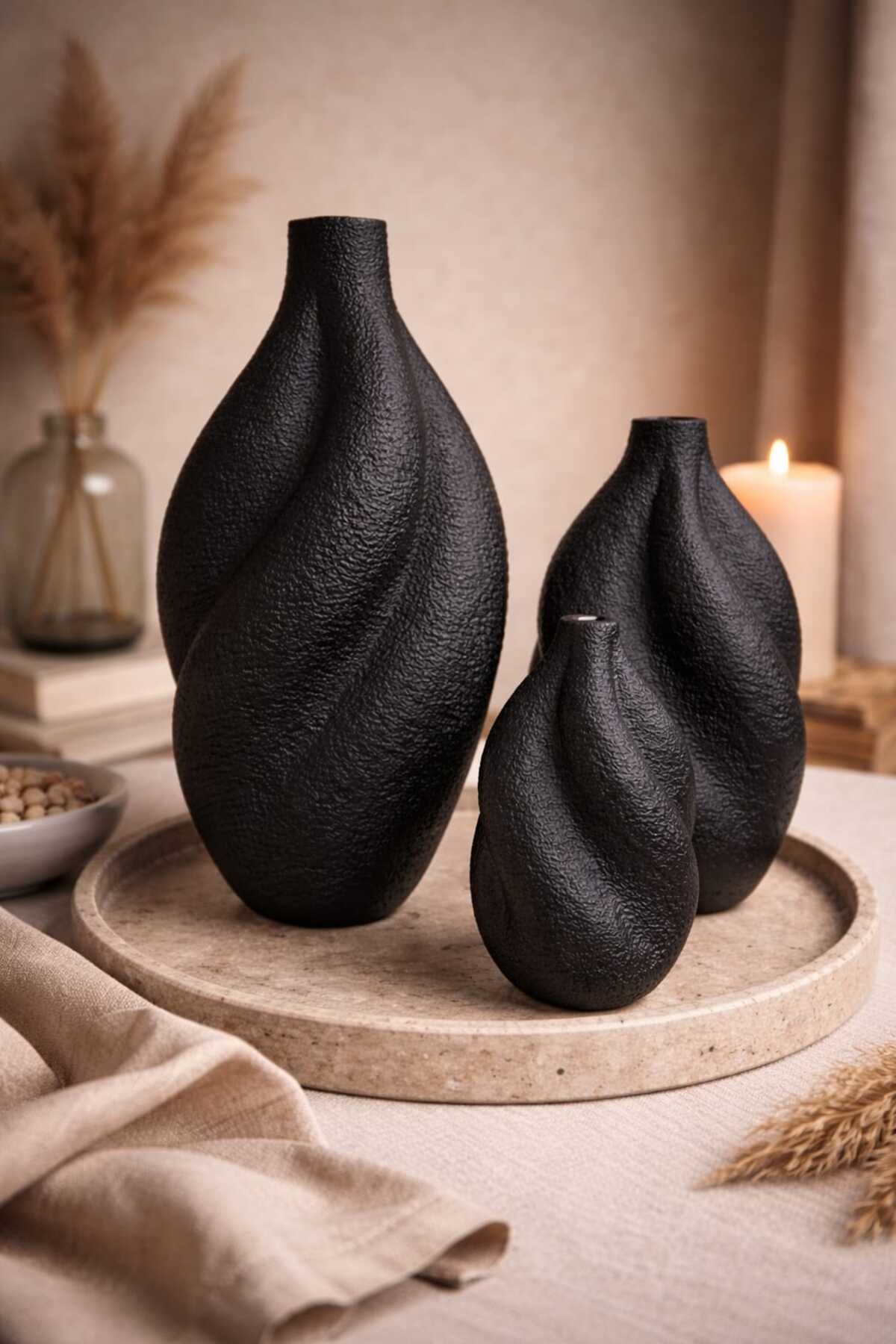 Modern Kıvrımlı 2'li Dekoratif Vazo Seti – Seramik Görünümlü Mat Doku, Ev Dekorasyon
