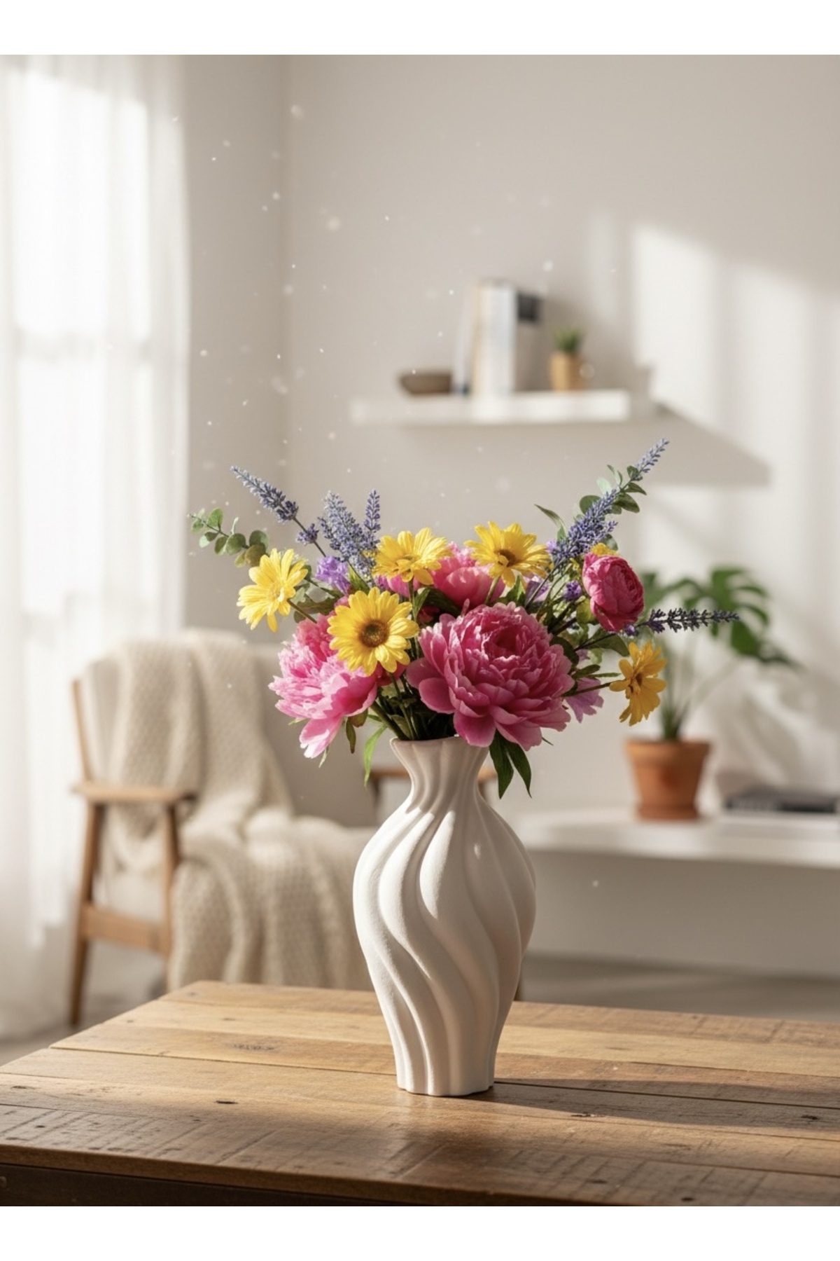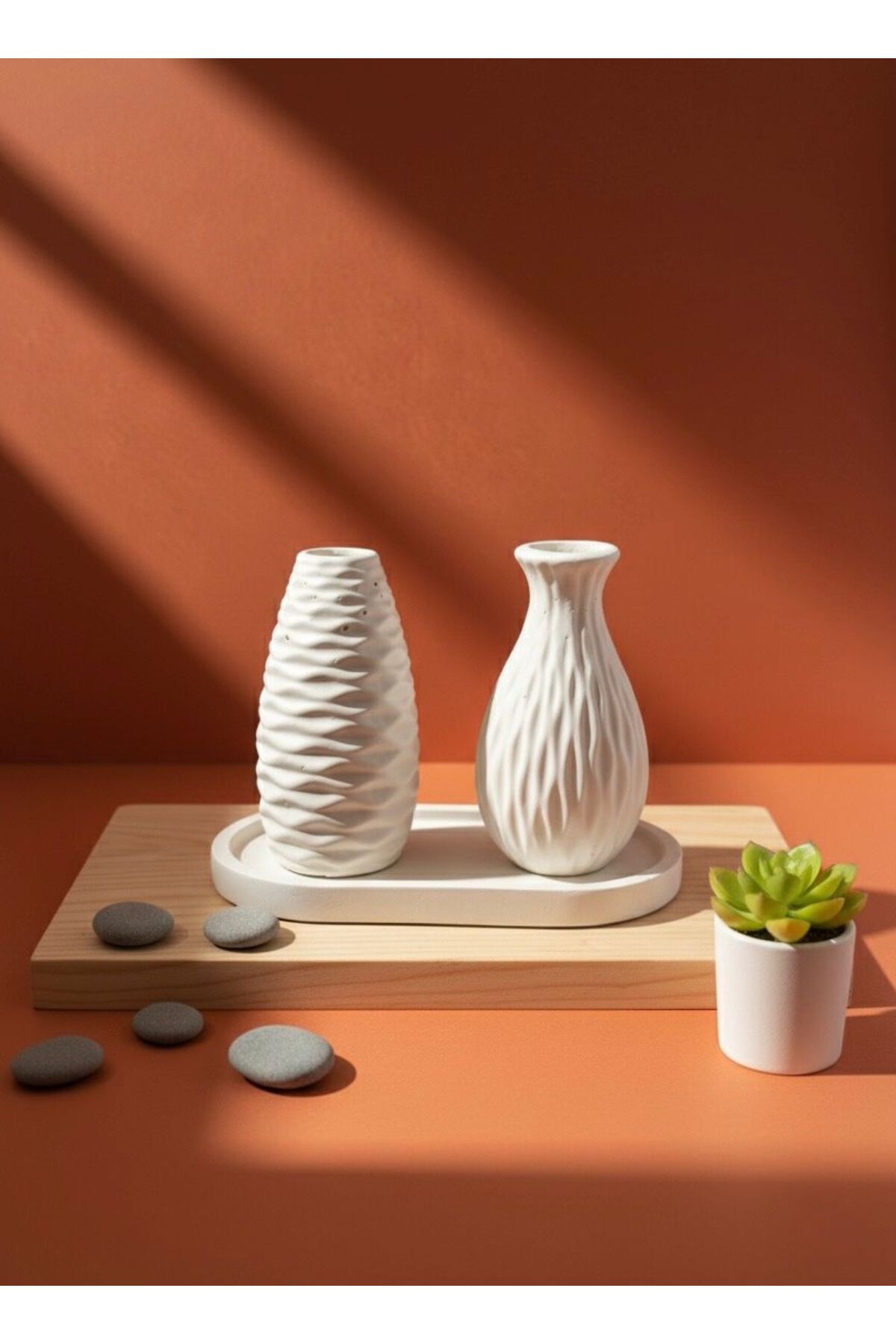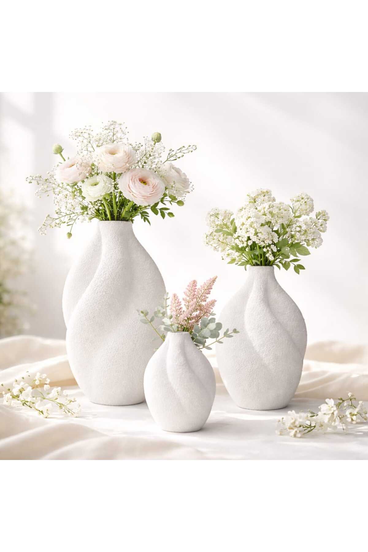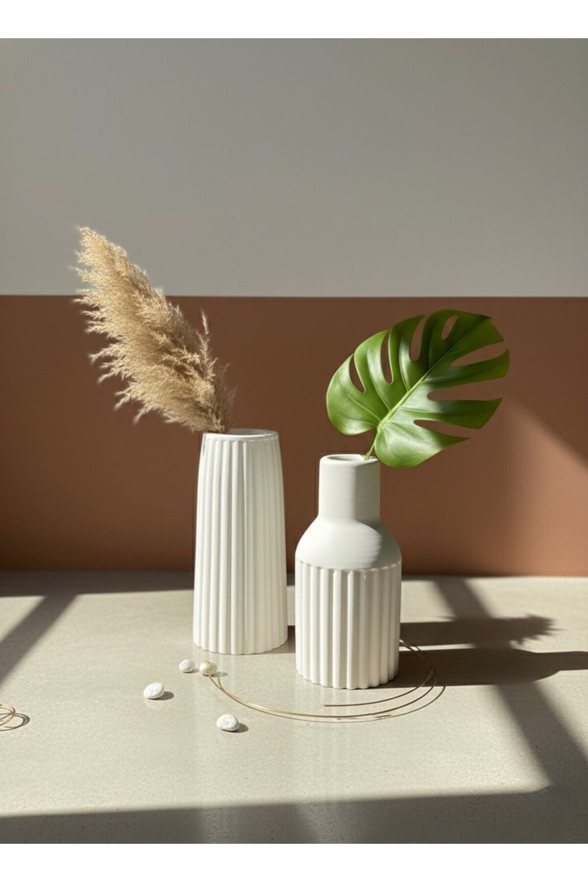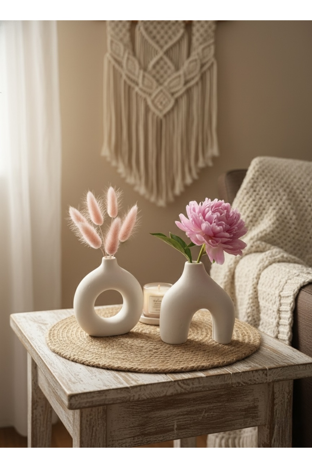 Modern Kıvrımlı 2'li Dekoratif Vazo Seti – Seramik Görünümlü Mat Doku, Ev Dekorasyon