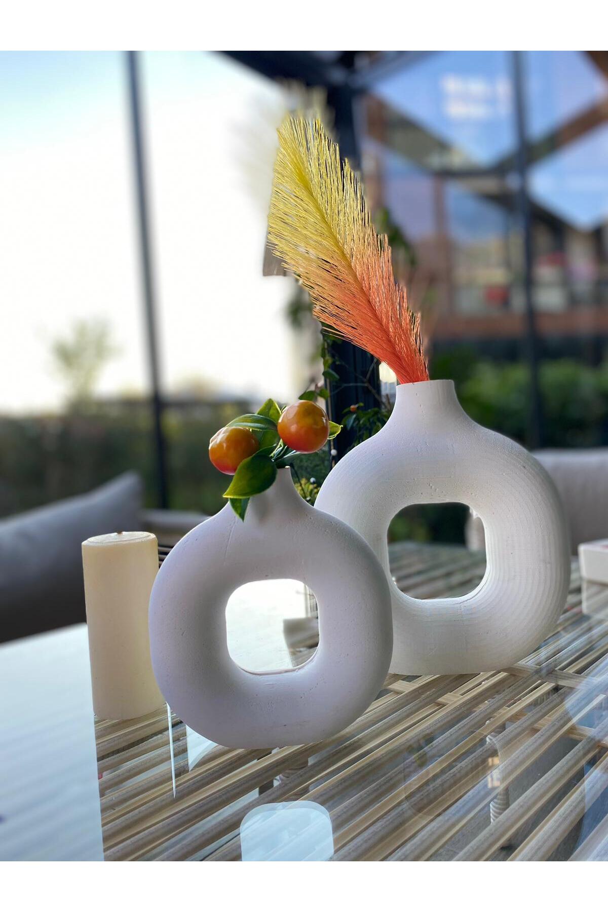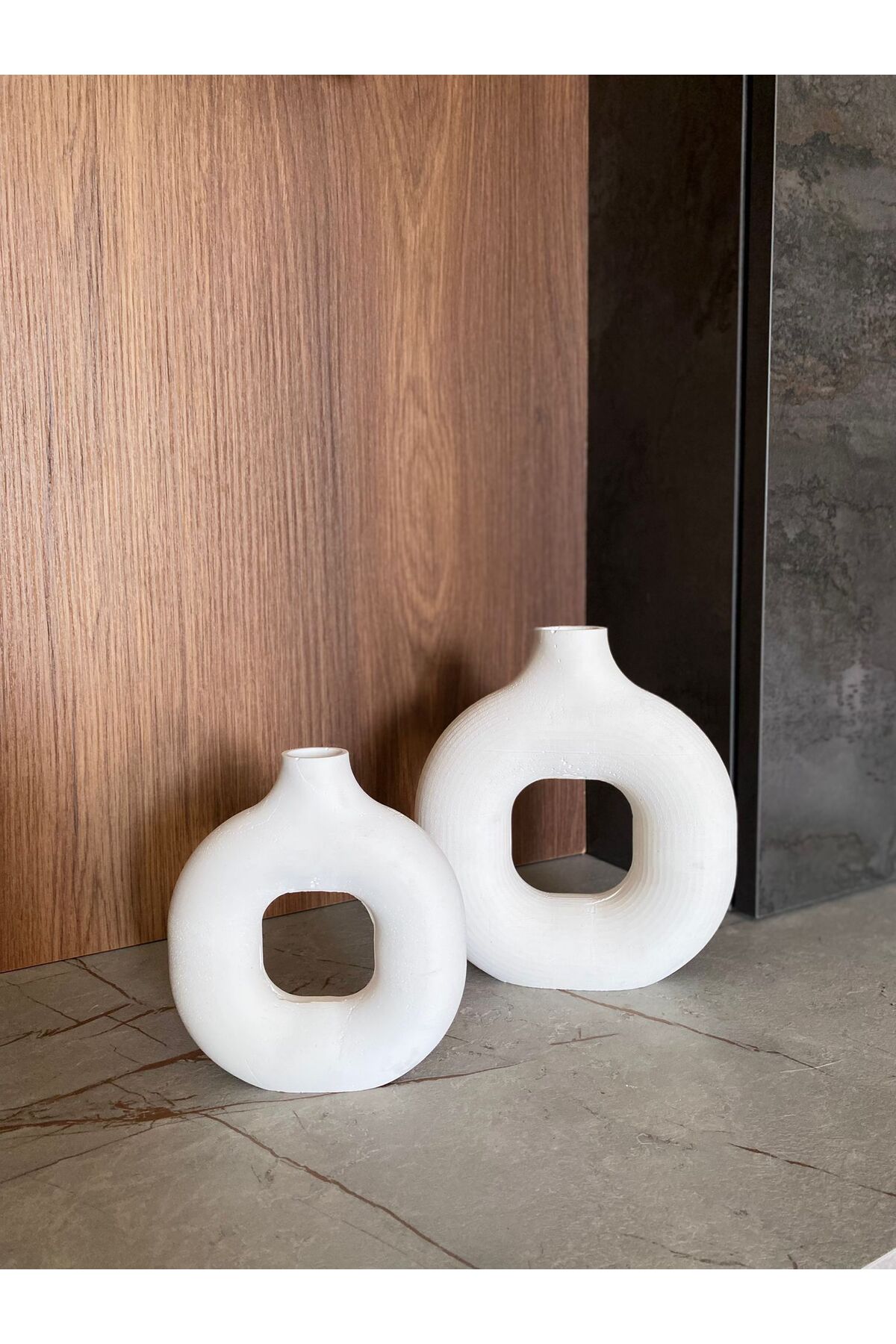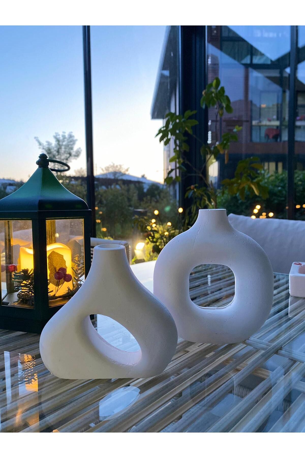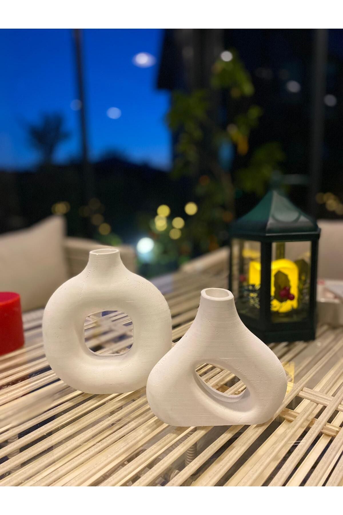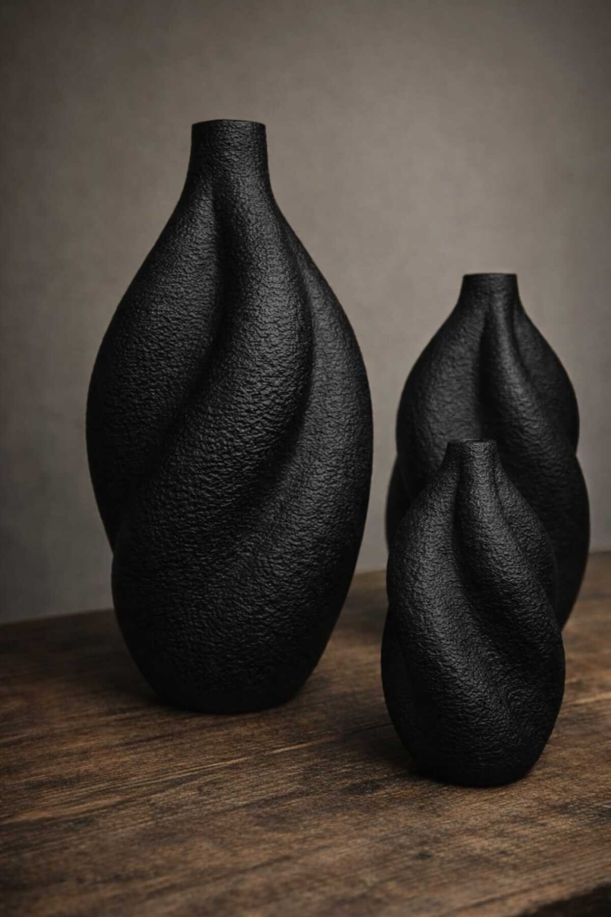 Modern Kıvrımlı 2'li Dekoratif Vazo Seti – Seramik Görünümlü Mat Doku, Ev Dekorasyon