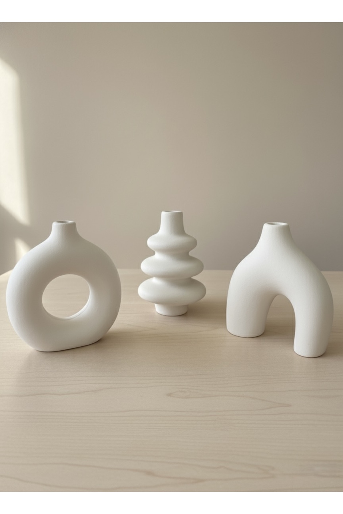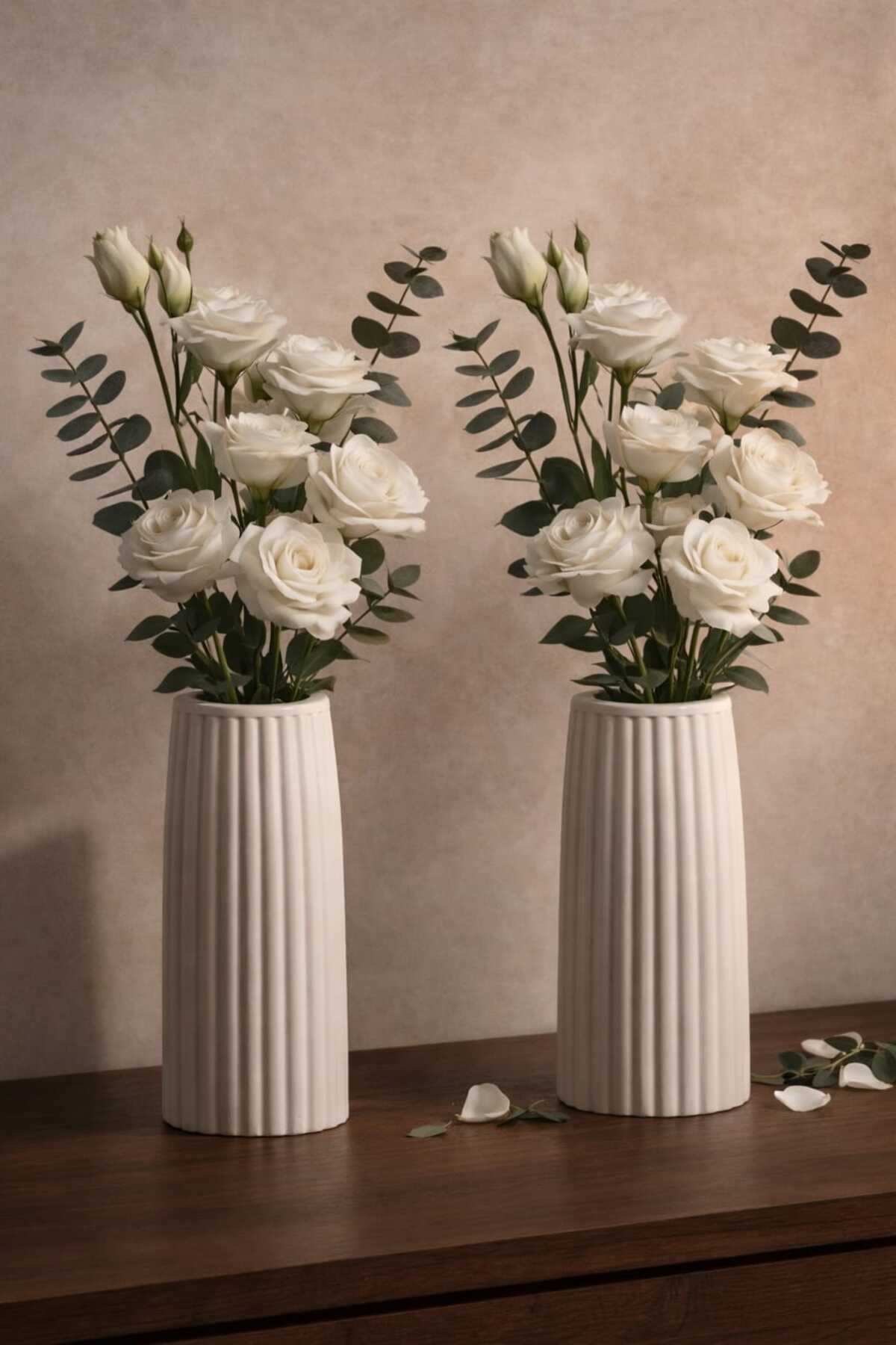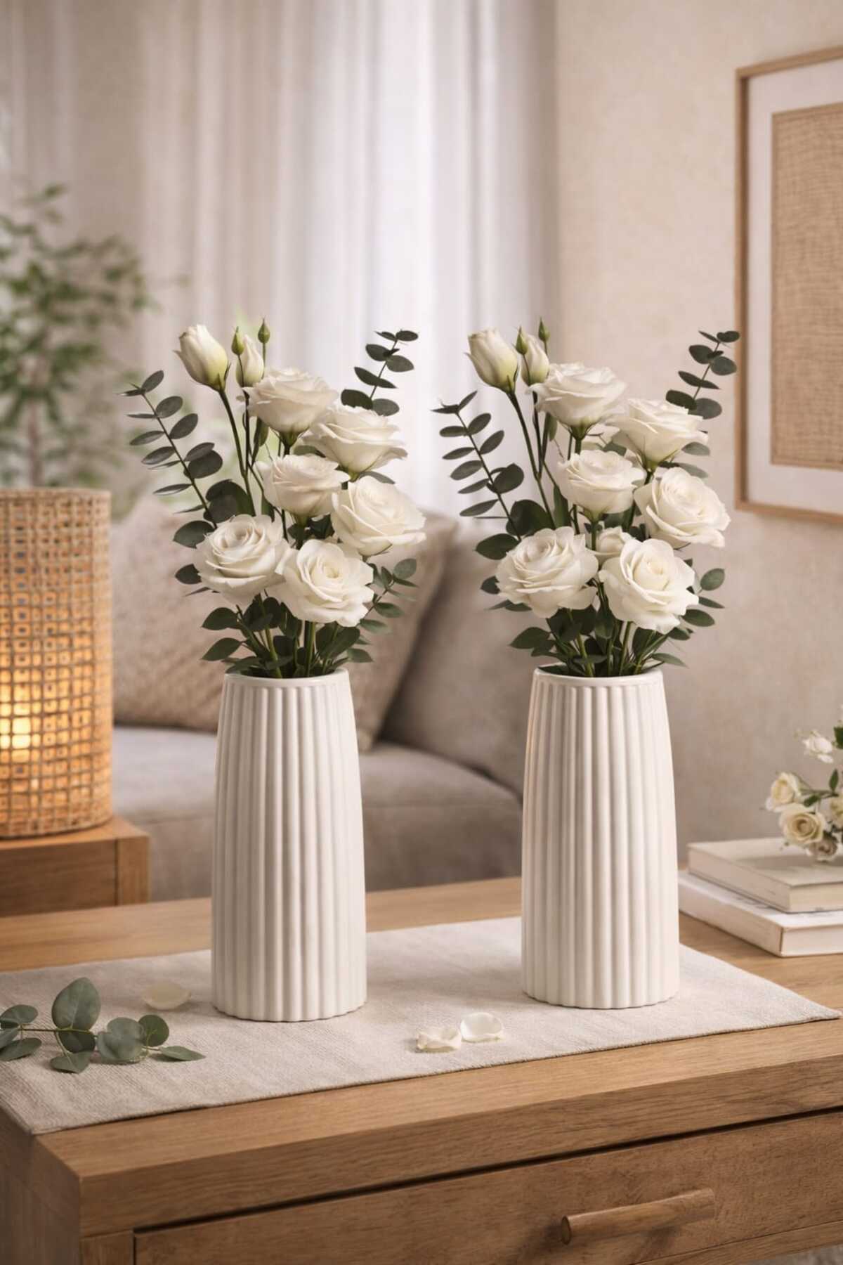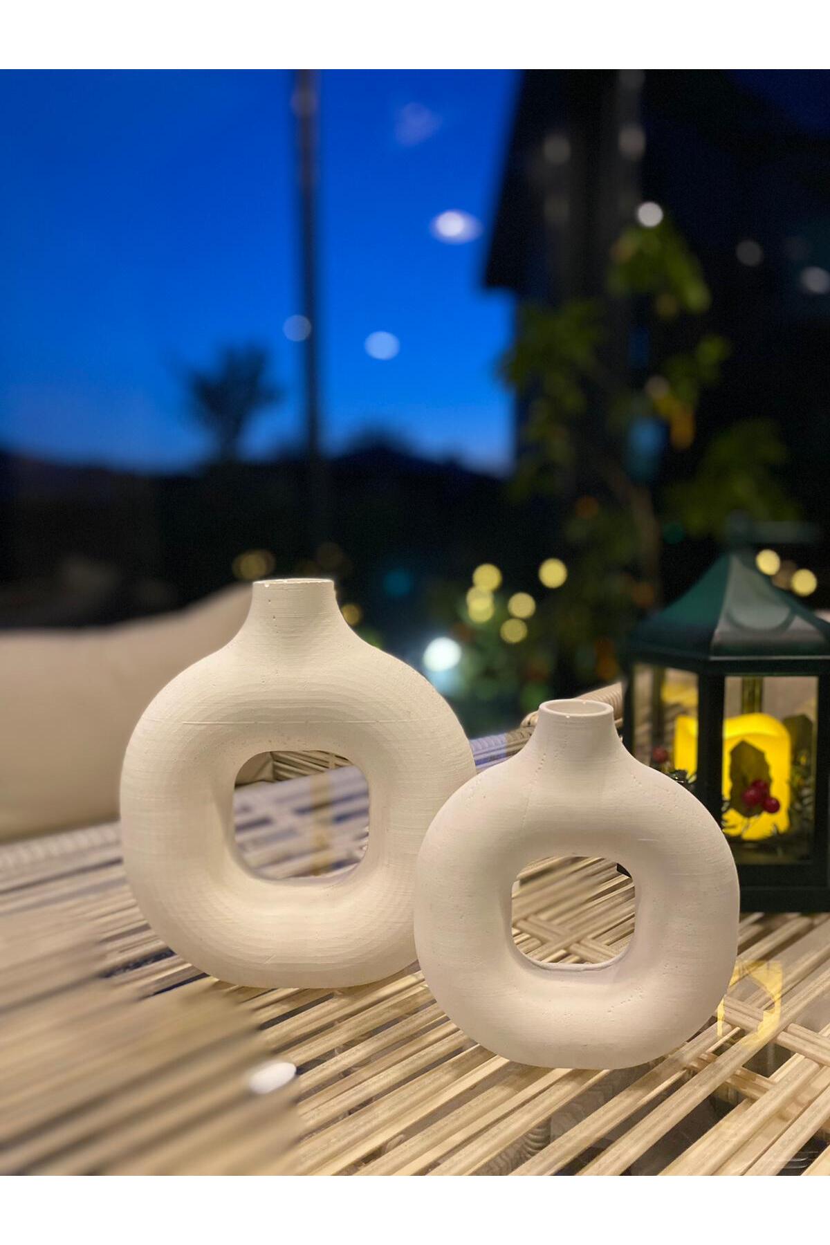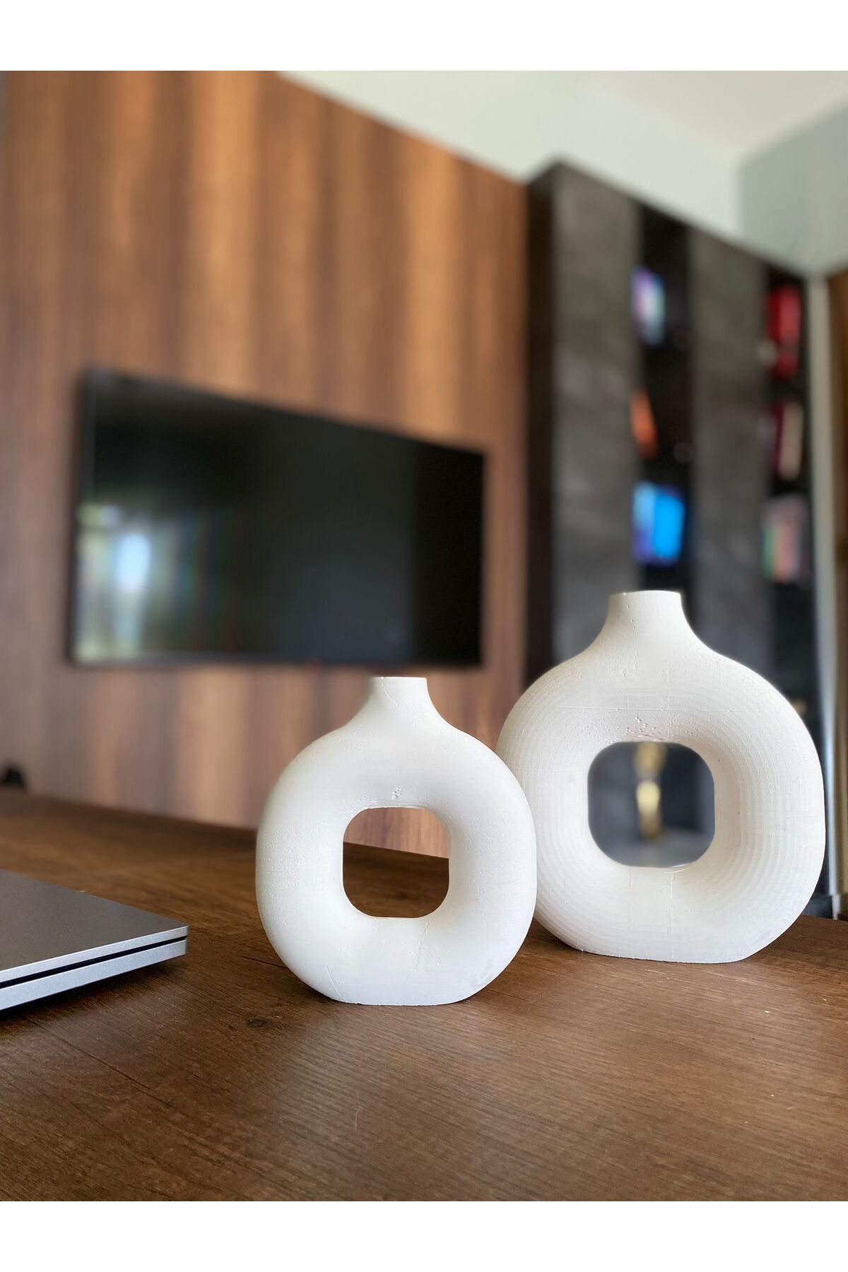 Modern Kıvrımlı 2'li Dekoratif Vazo Seti – Seramik Görünümlü Mat Doku, Ev Dekorasyon