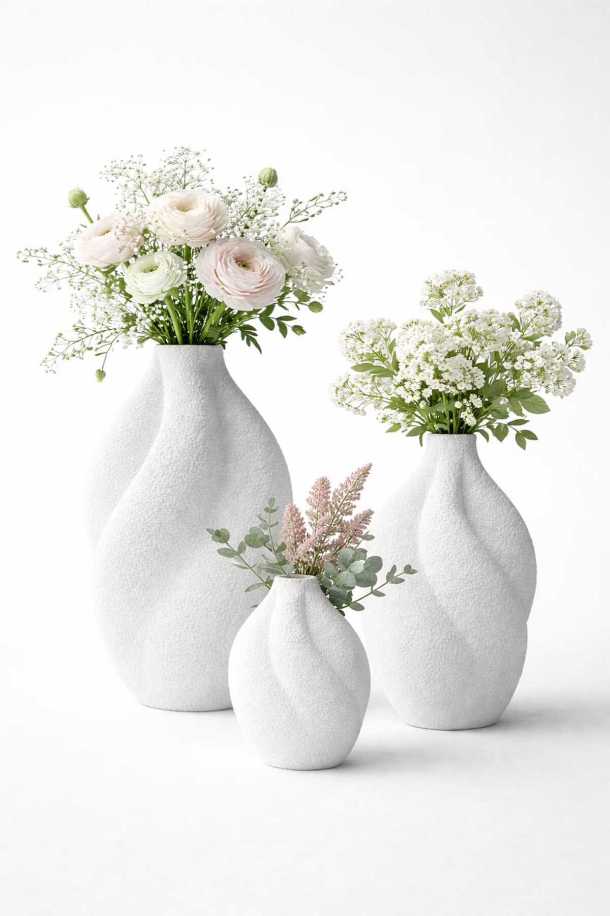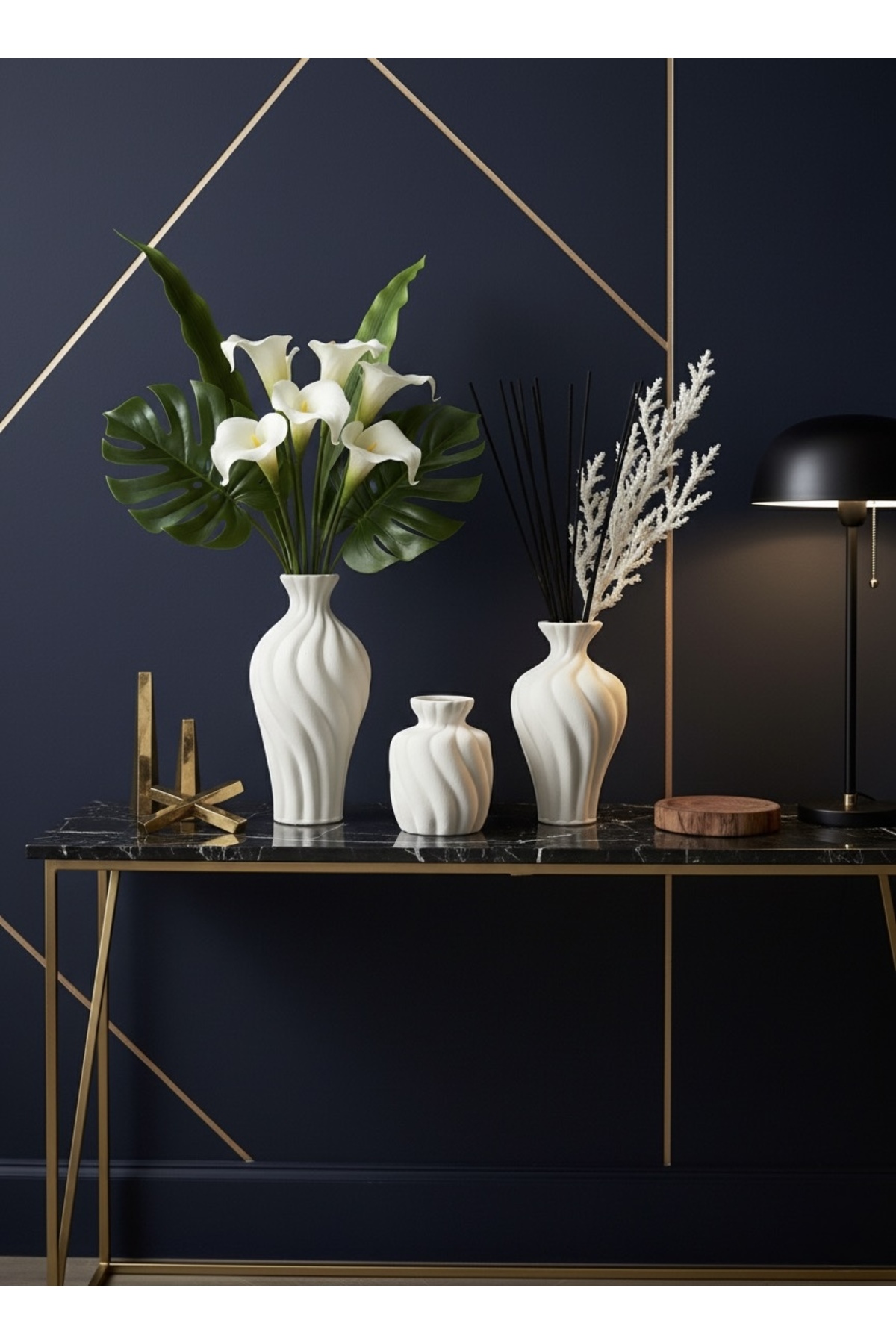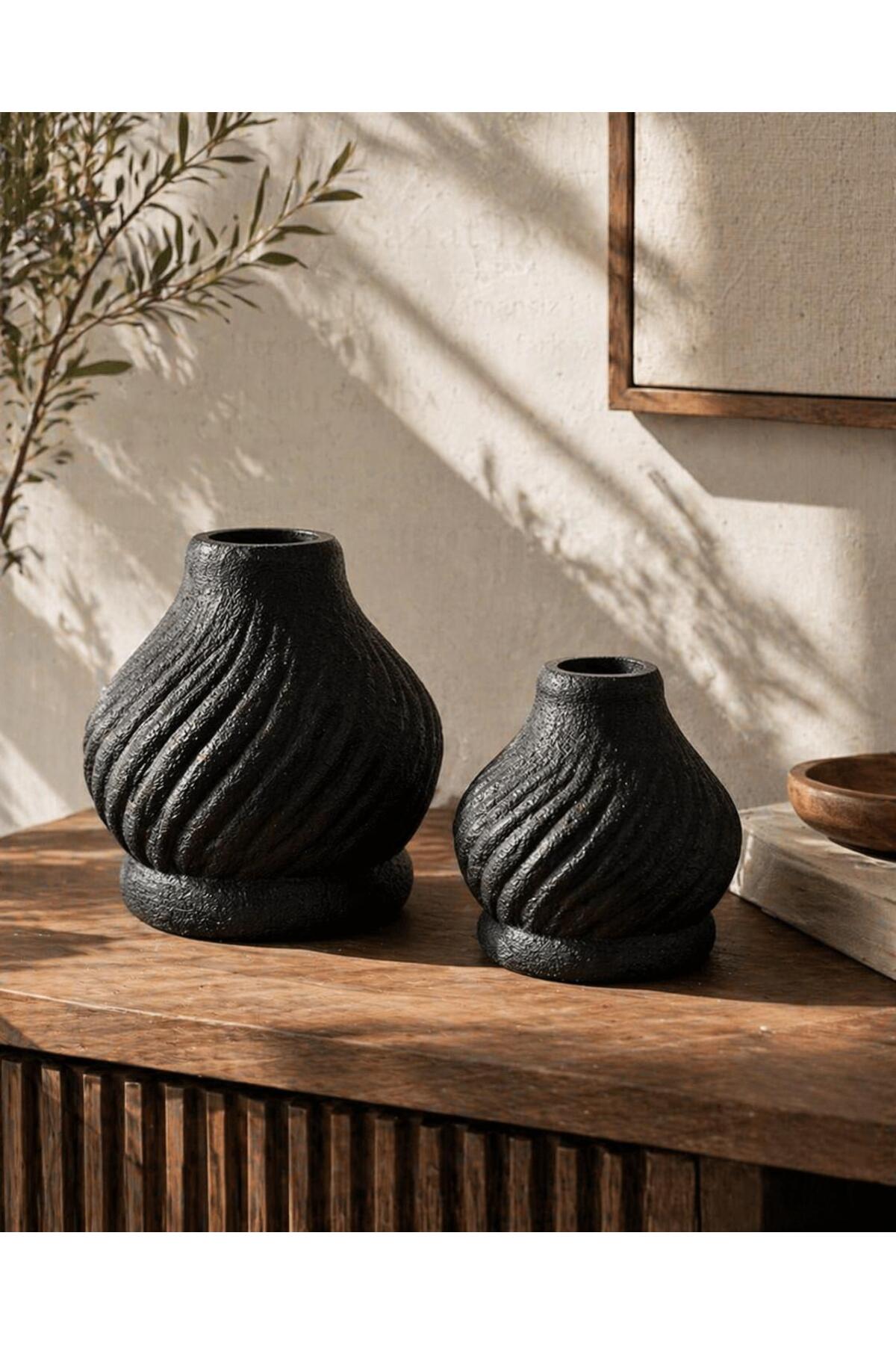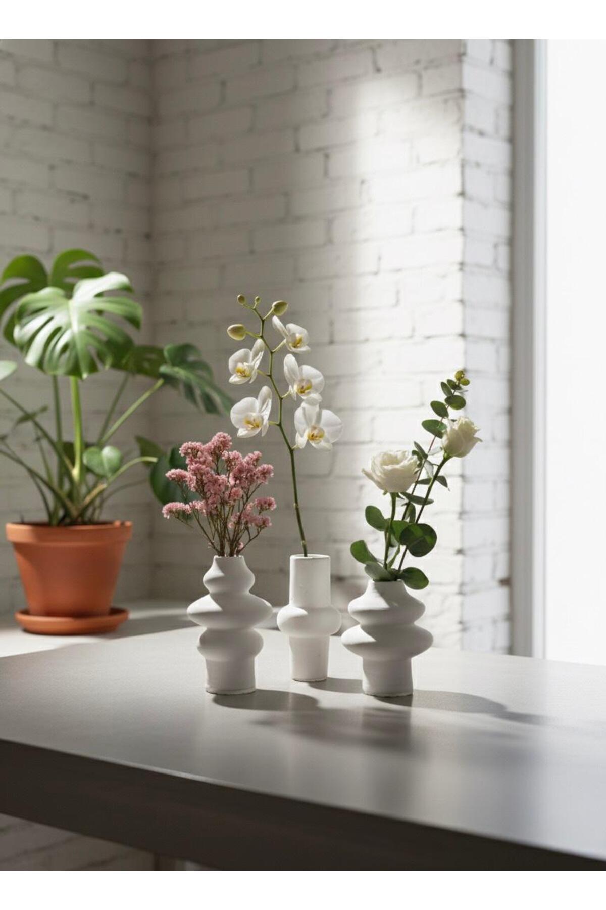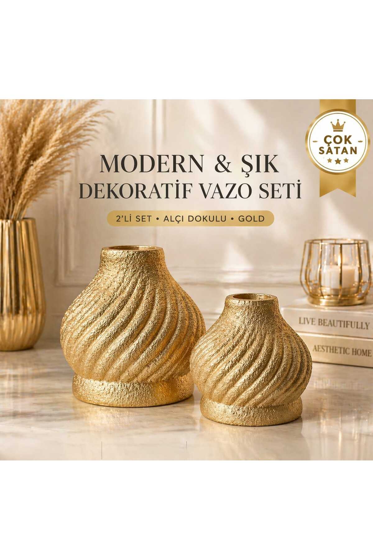 Modern Kıvrımlı 2'li Dekoratif Vazo Seti – Seramik Görünümlü Mat Doku, Ev Dekorasyon