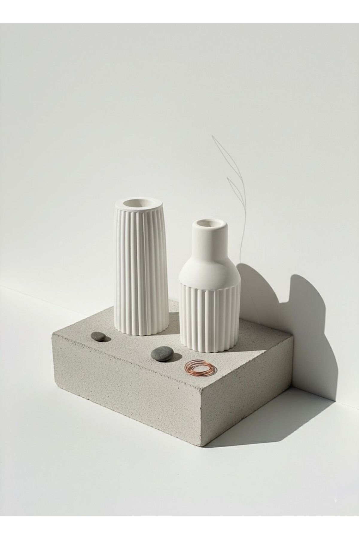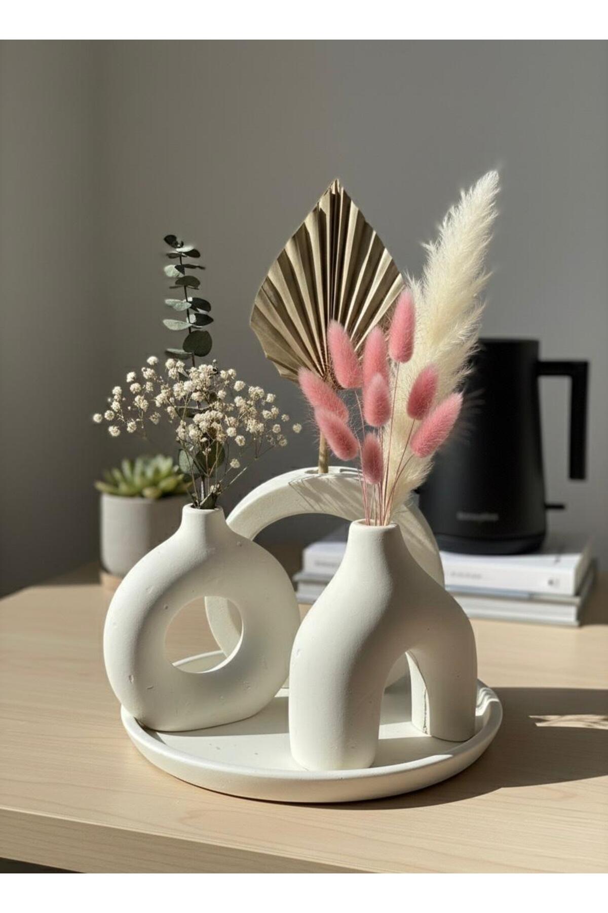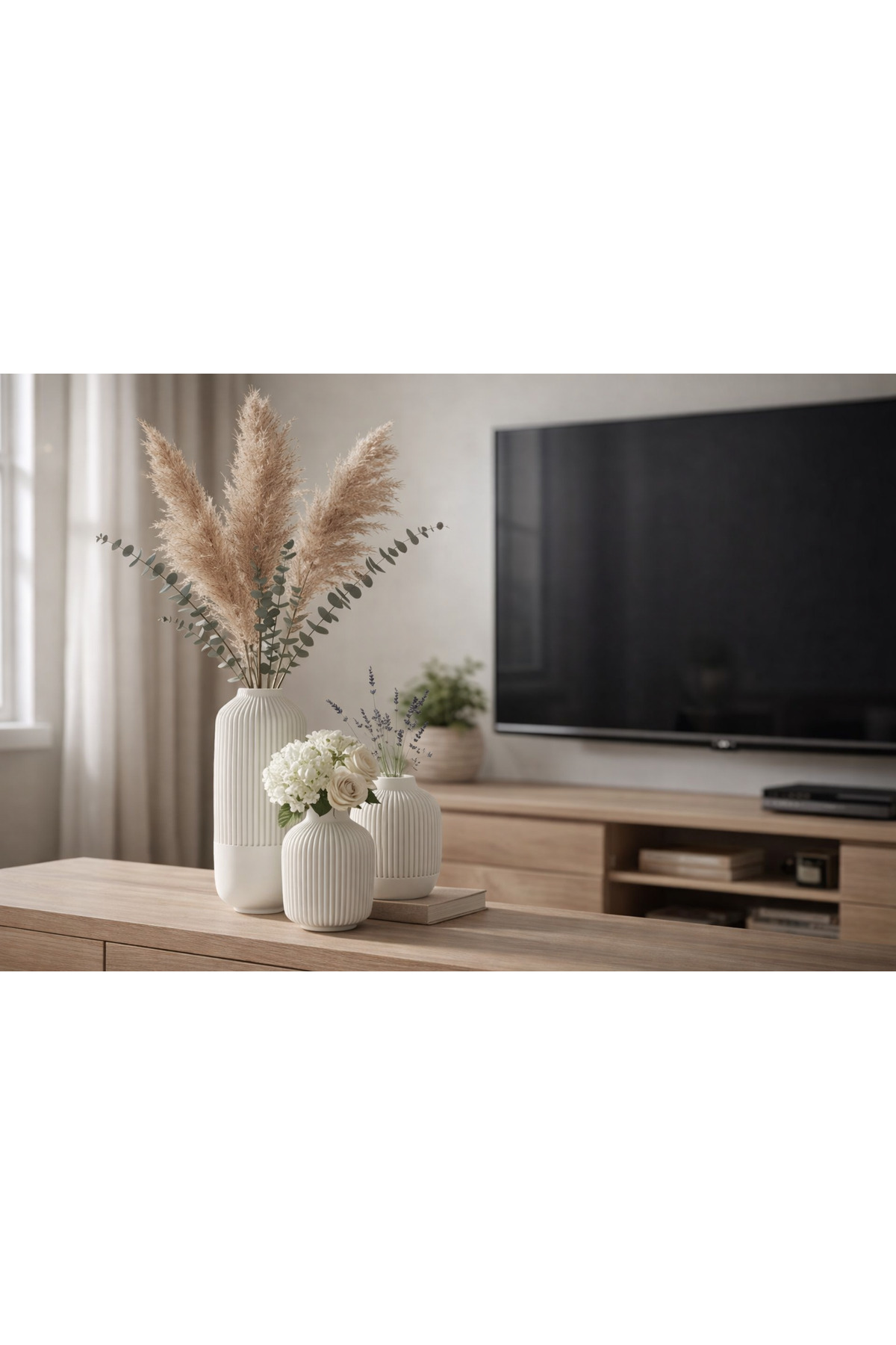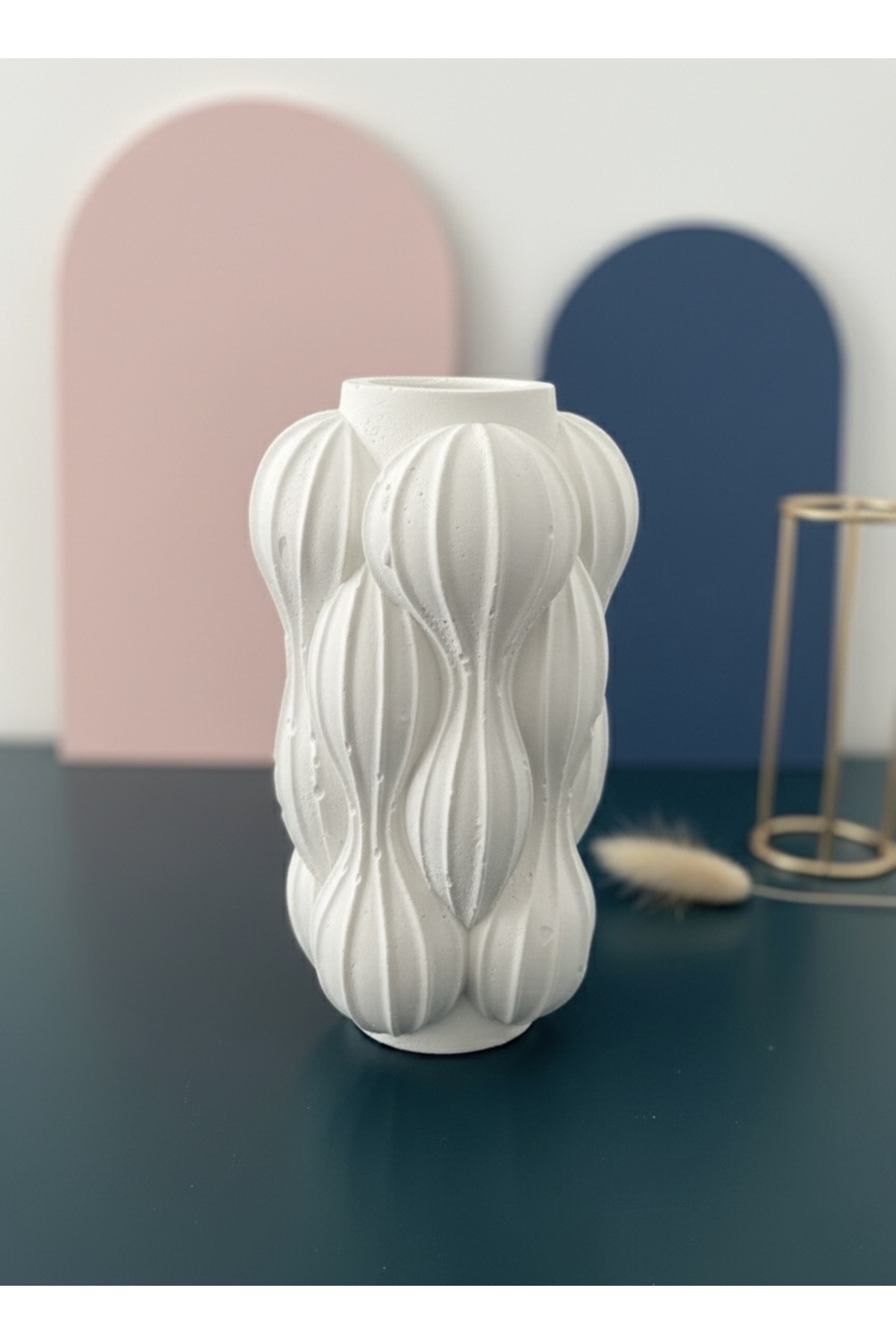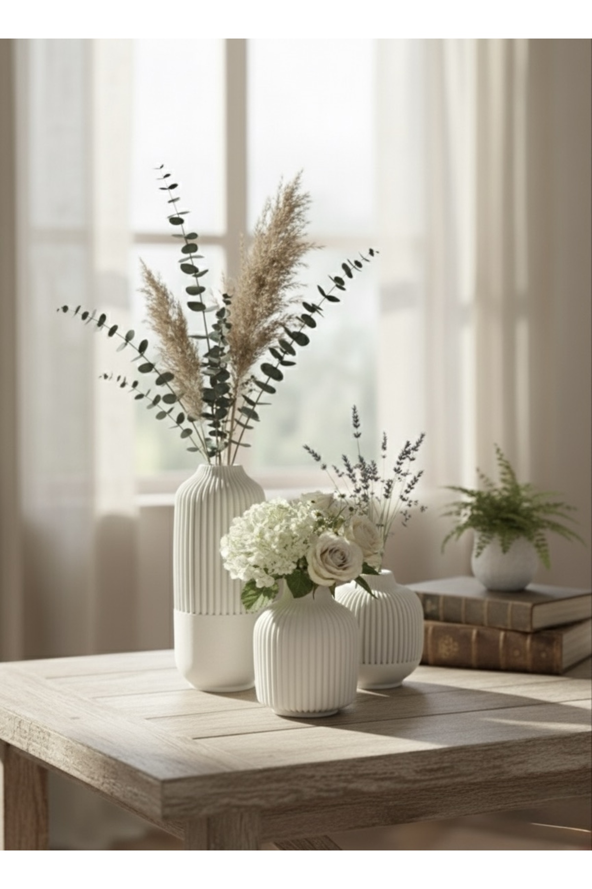 Modern Kıvrımlı 2'li Dekoratif Vazo Seti – Seramik Görünümlü Mat Doku, Ev Dekorasyon