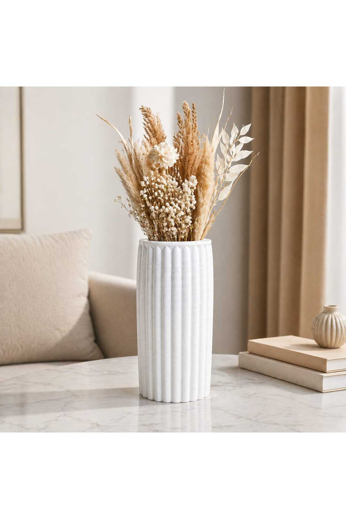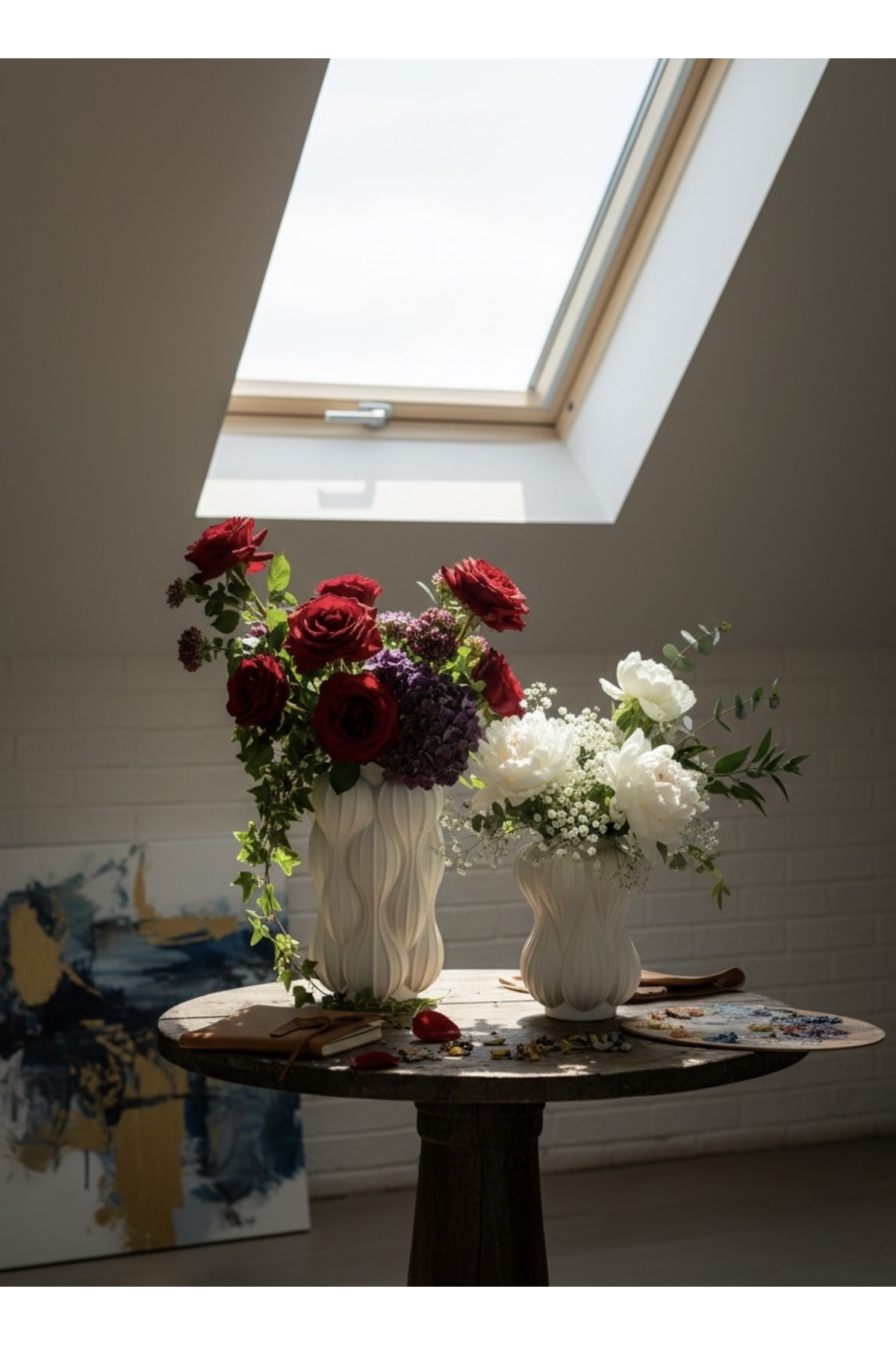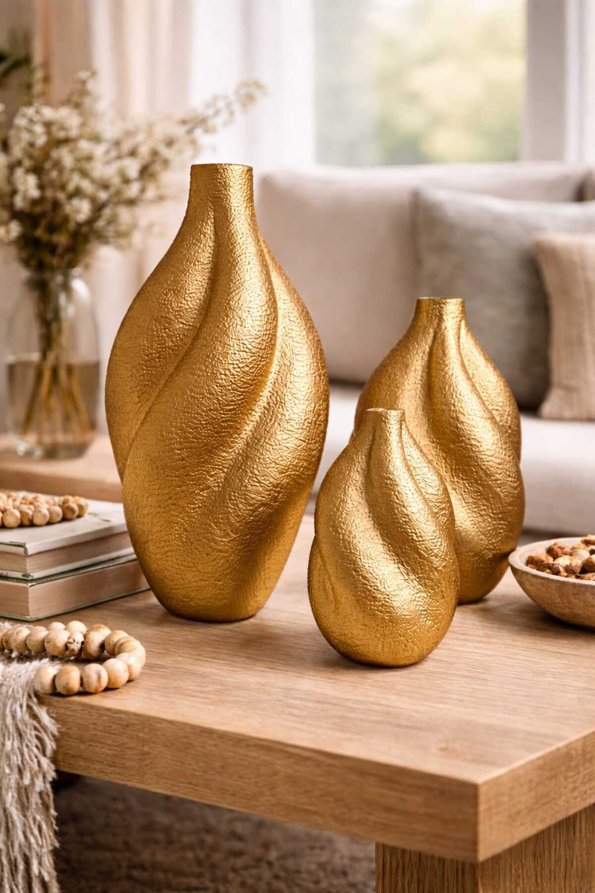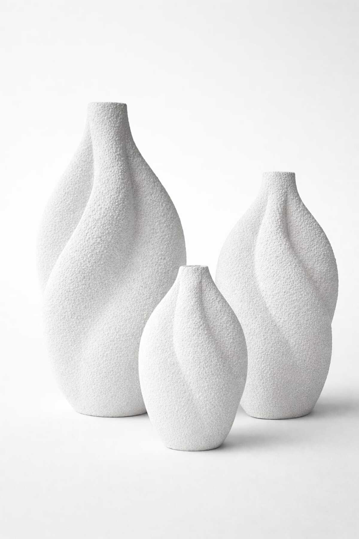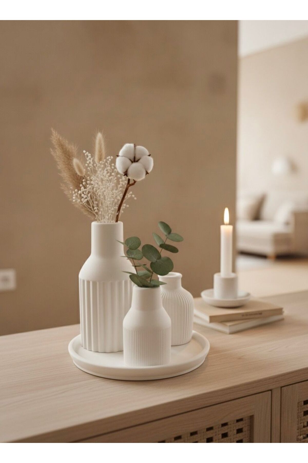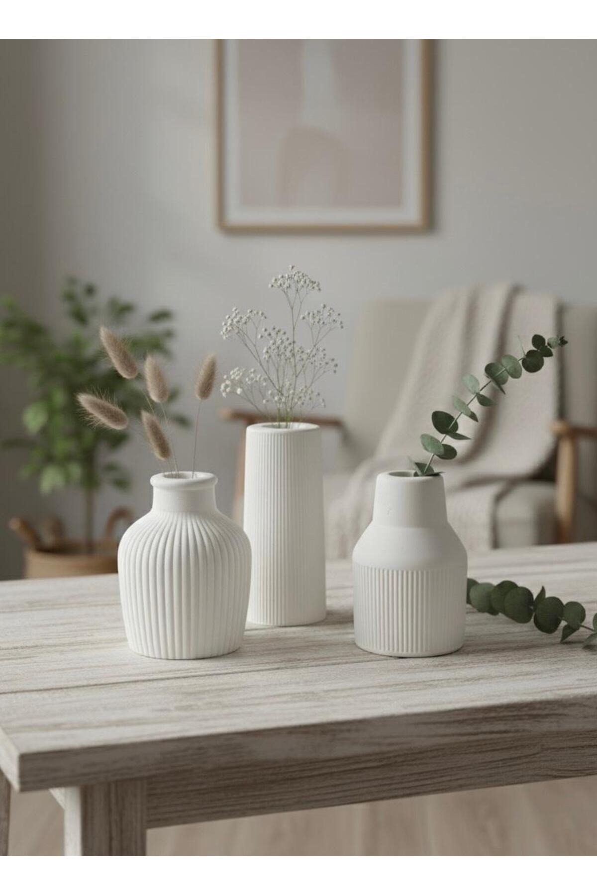 Modern Kıvrımlı 2'li Dekoratif Vazo Seti – Seramik Görünümlü Mat Doku, Ev Dekorasyon