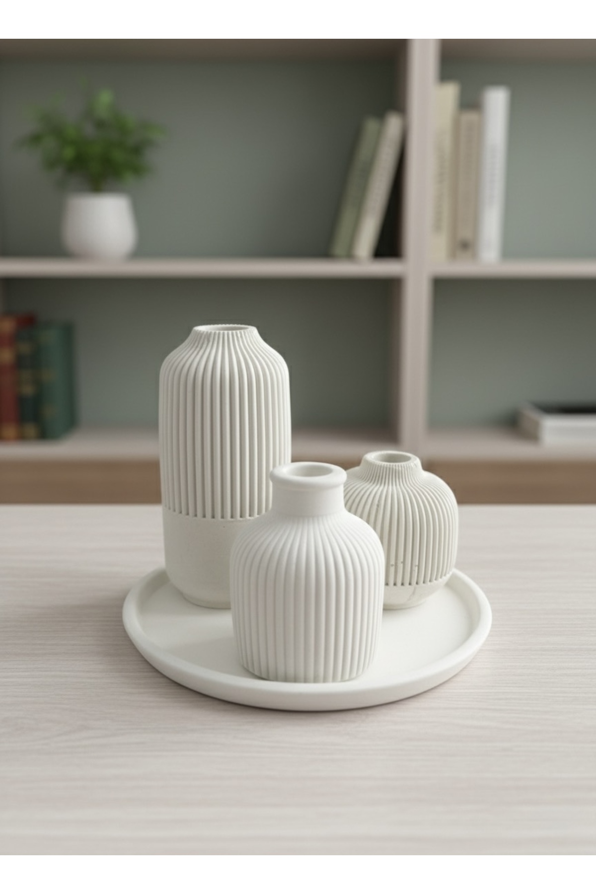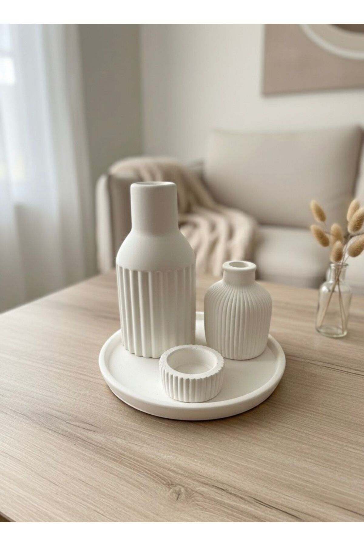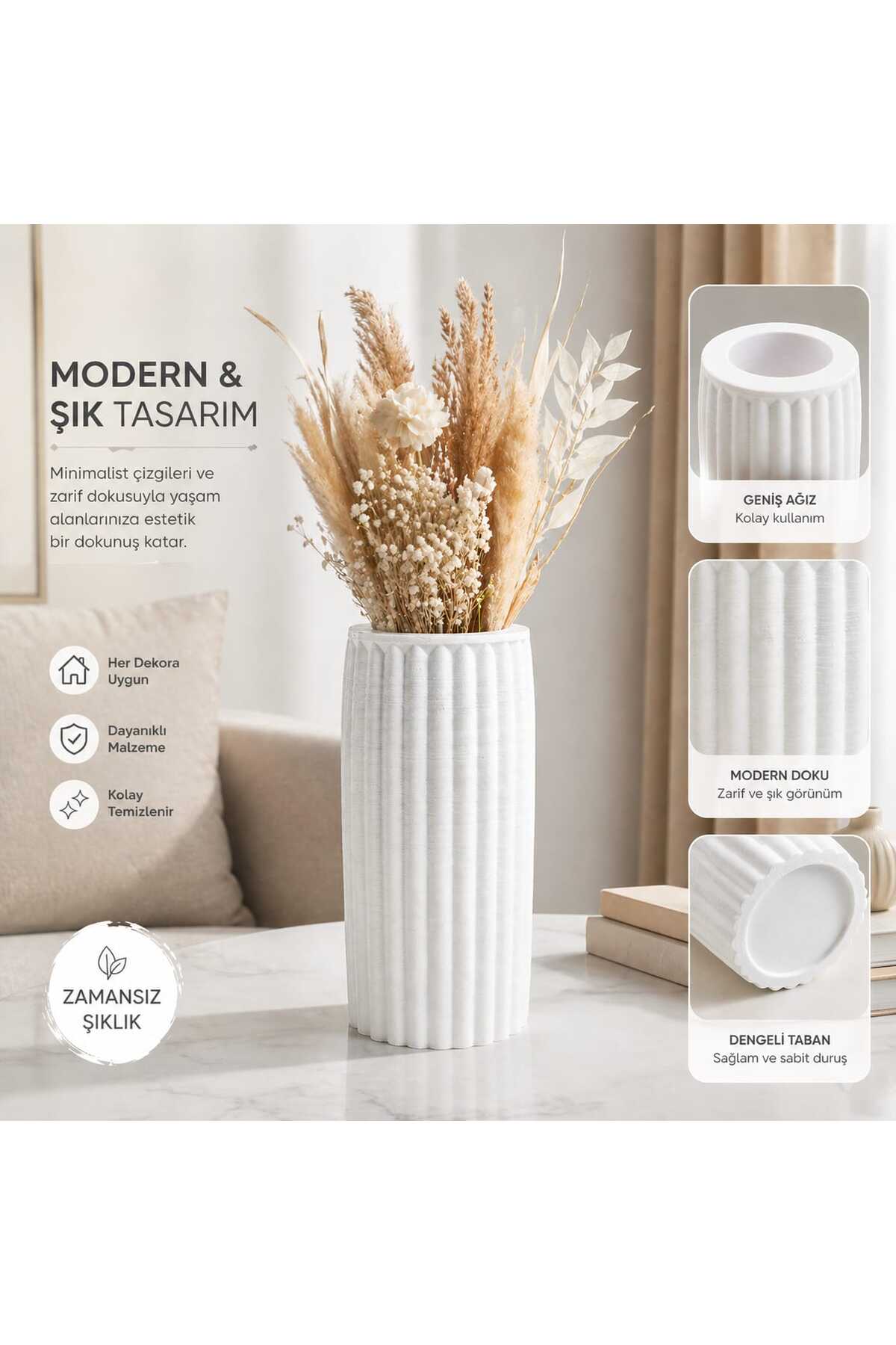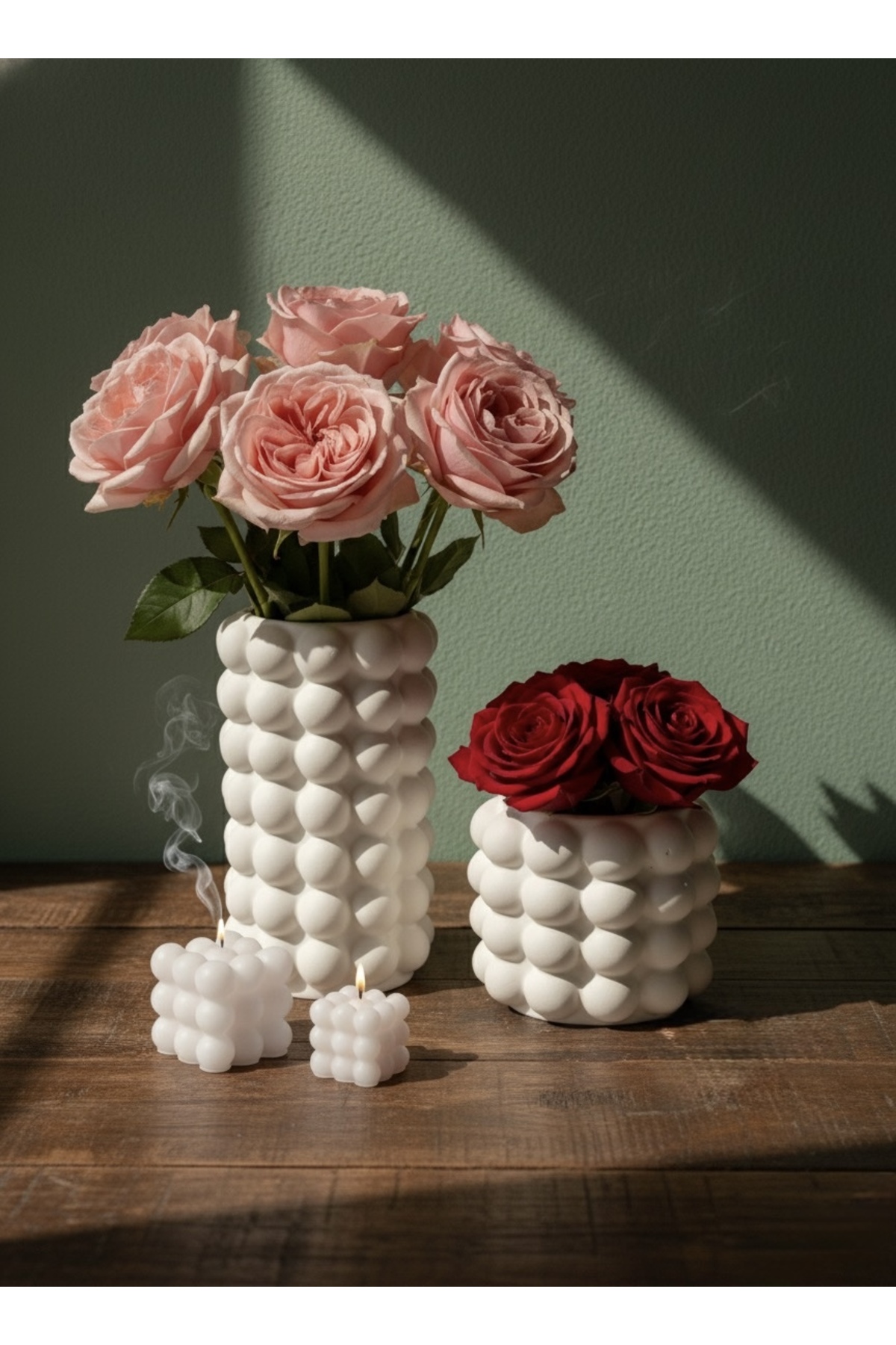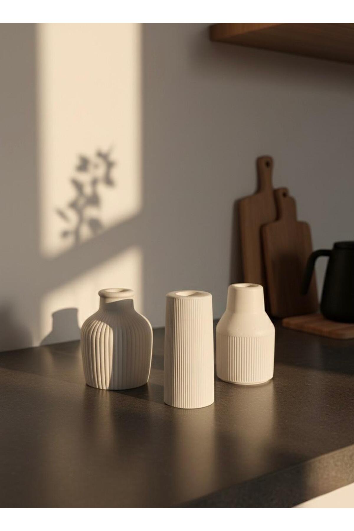 Modern Kıvrımlı 2'li Dekoratif Vazo Seti – Seramik Görünümlü Mat Doku, Ev Dekorasyon