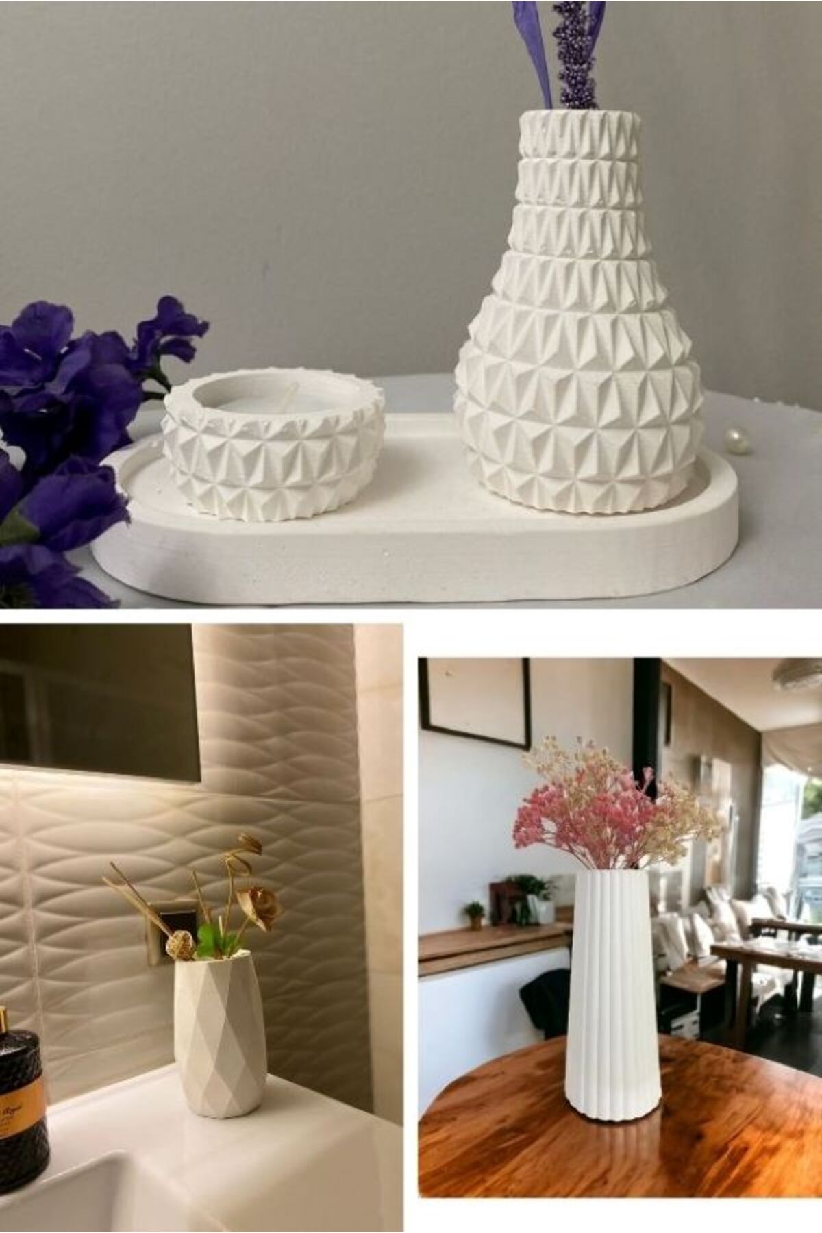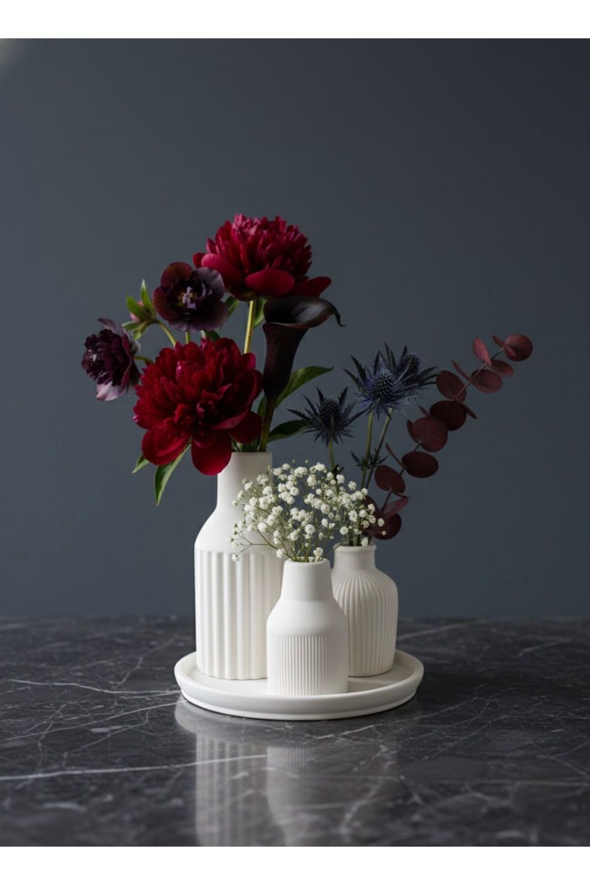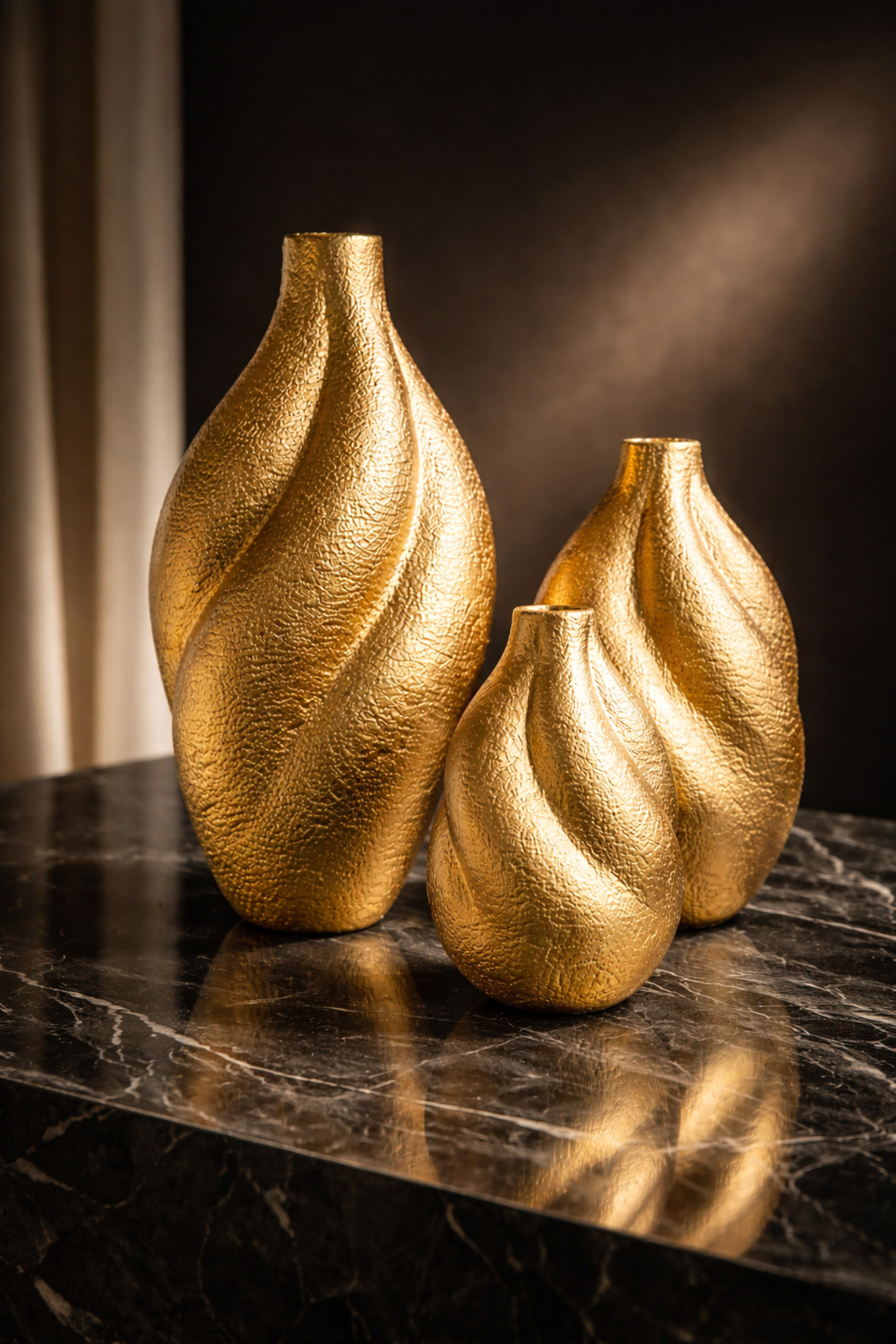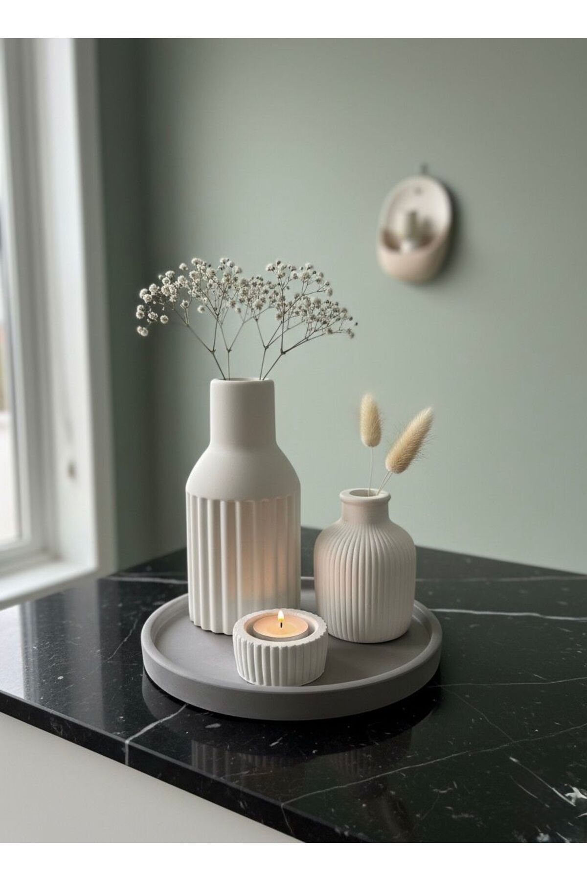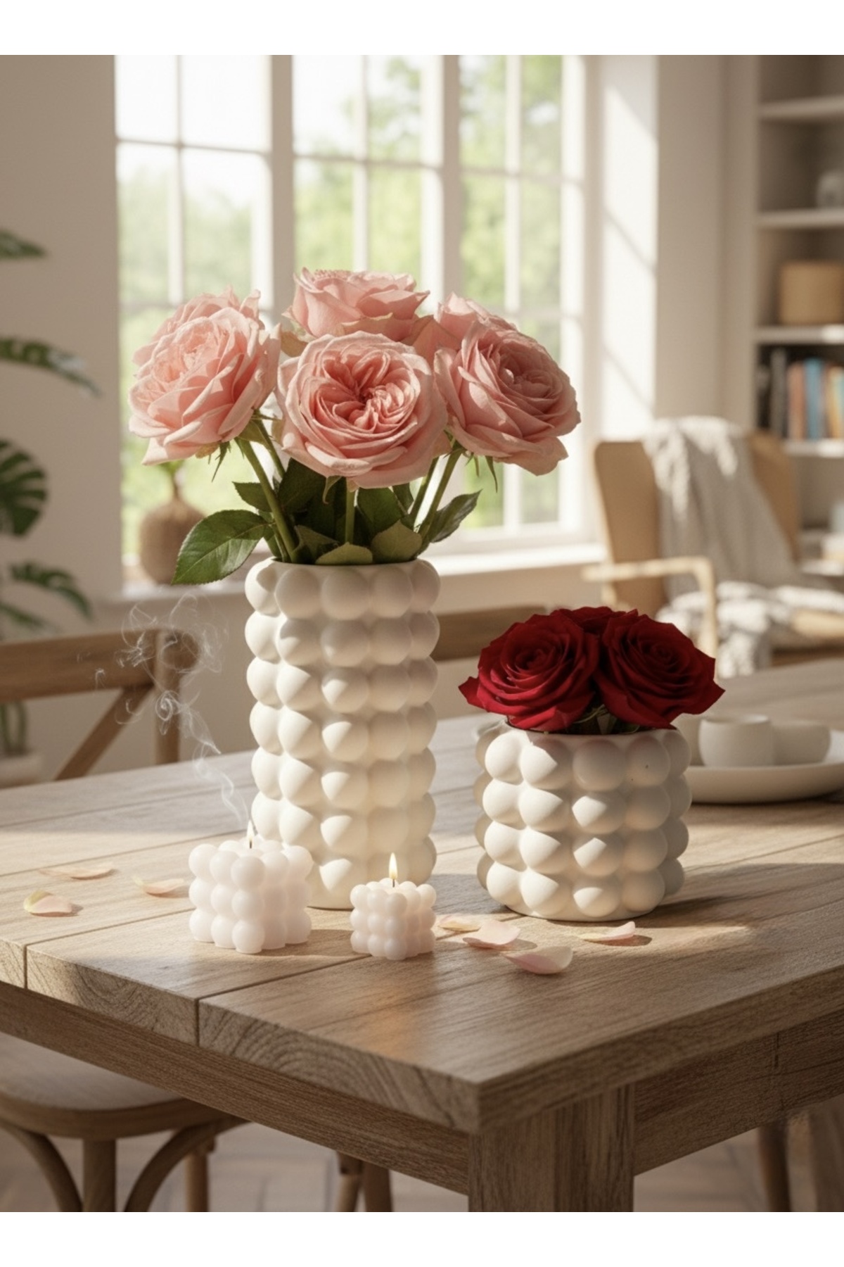 Modern Kıvrımlı 2'li Dekoratif Vazo Seti – Seramik Görünümlü Mat Doku, Ev Dekorasyon