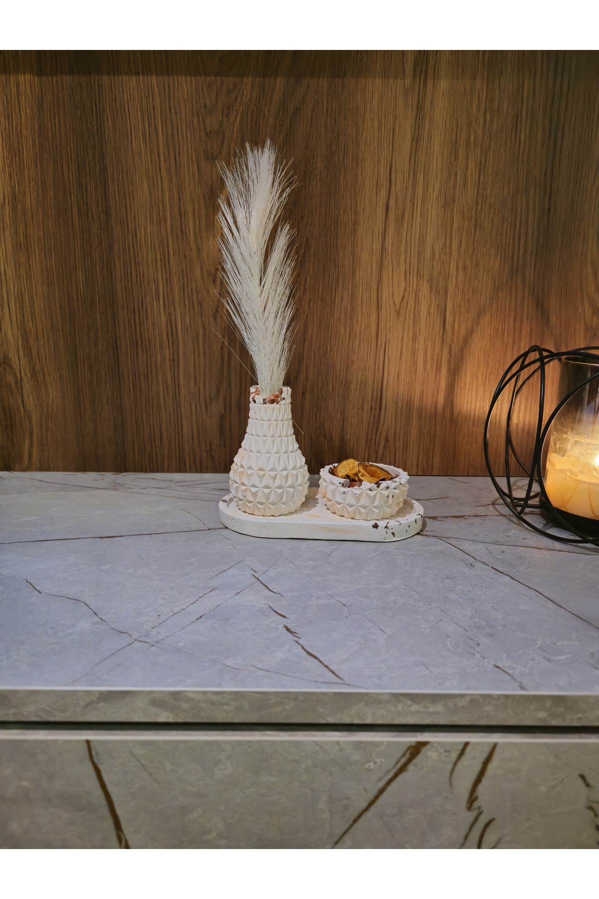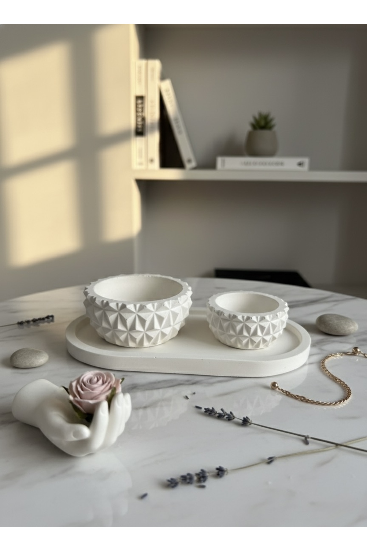 - Modern ve şık tasarımıyla evinizin dekorasyonuna zarif bir dokunuş katar.; - Seramik görünümü ve mat dokusu ile estetik bir görünüm sunar.; - 2'li set halinde sunulması, farklı alanlarda veya kombinasyonlarda kullanma imkanı sağlar.; - Evinizin her köşesine uyum sağlayacak, çok yönlü bir dekoratif obje.; 1. Ürün 10 cm x 10 cm 2. Ürün 14 cm x 14 cm
